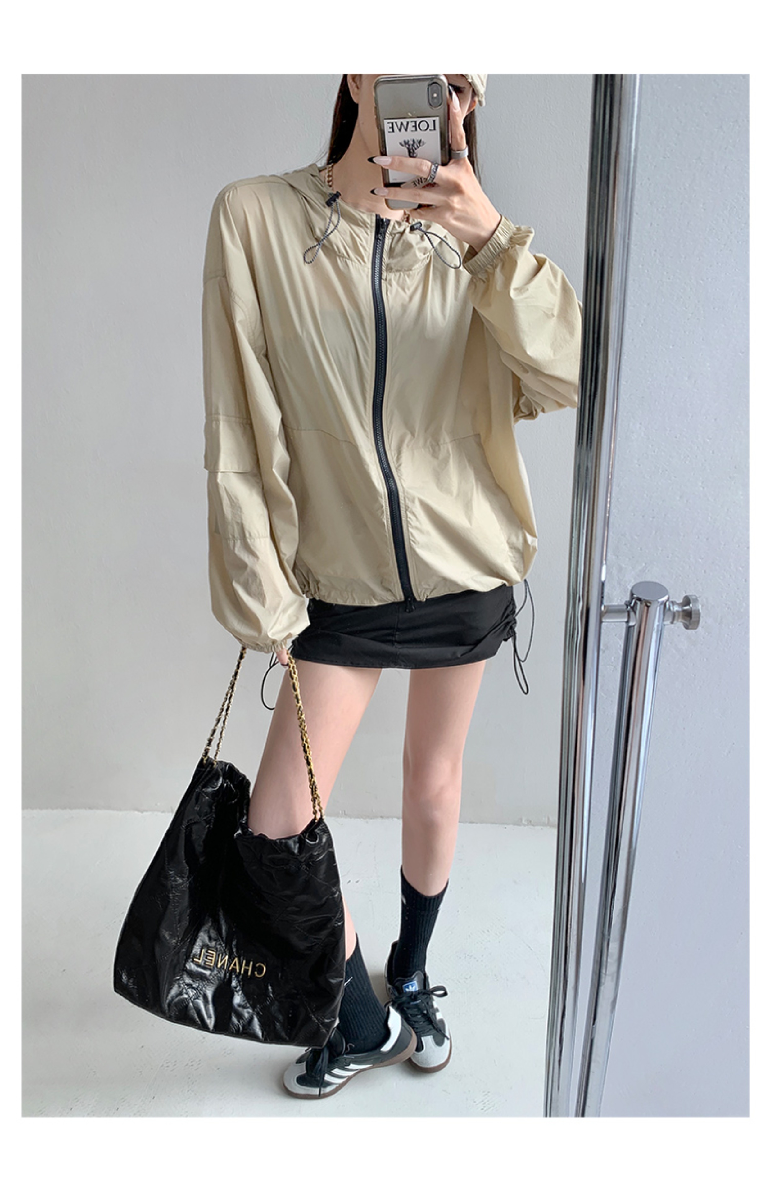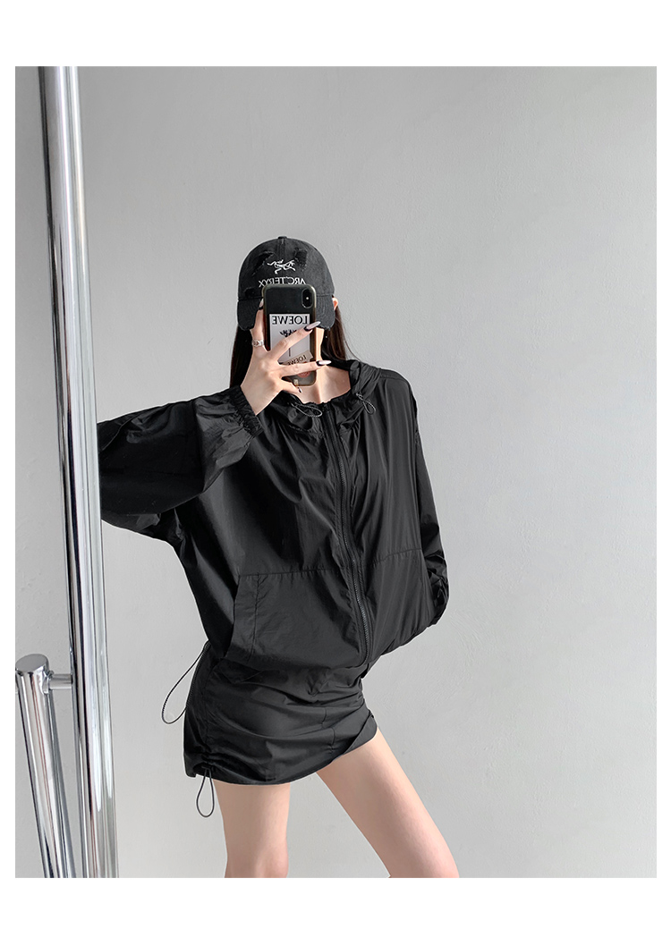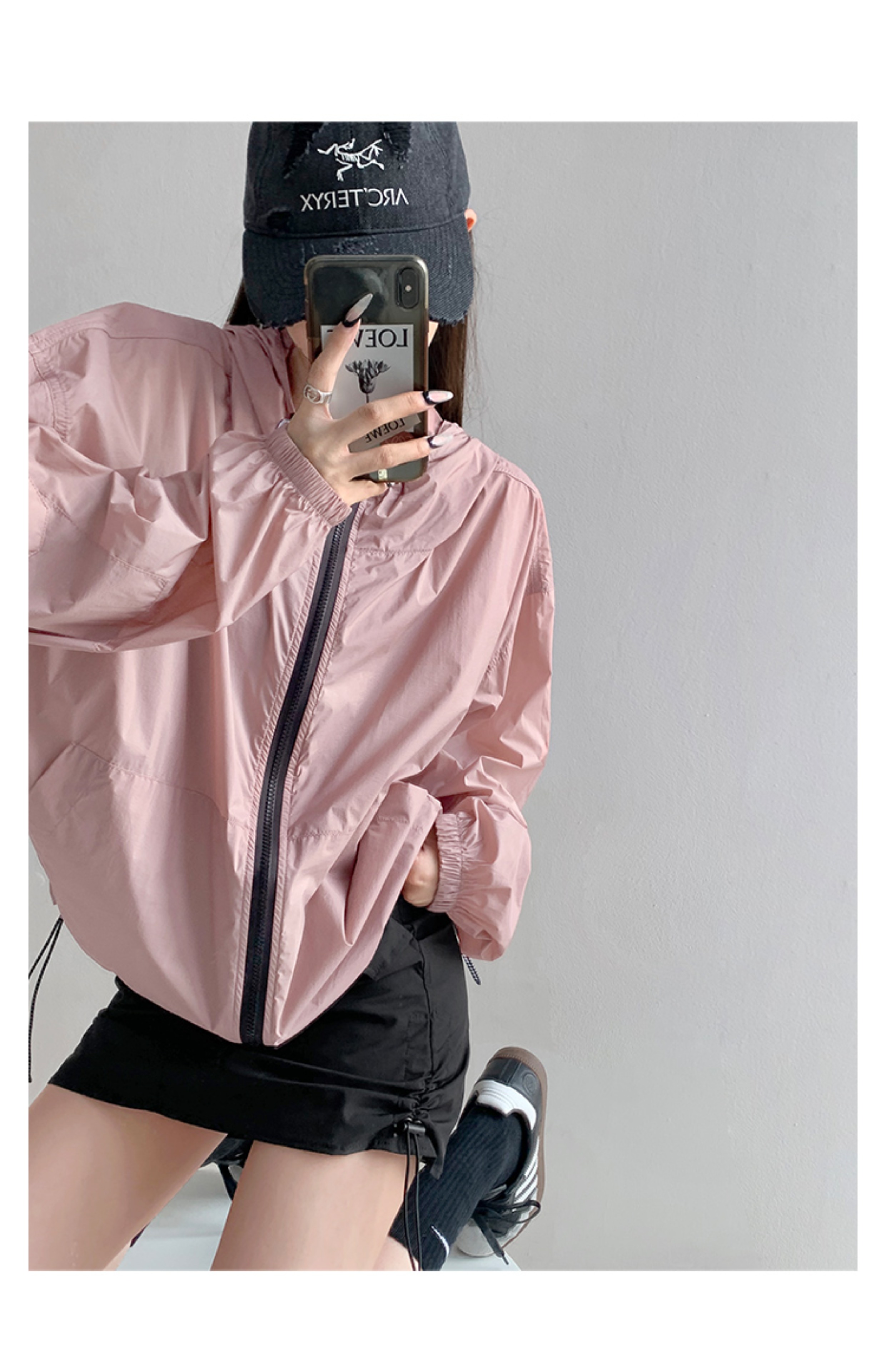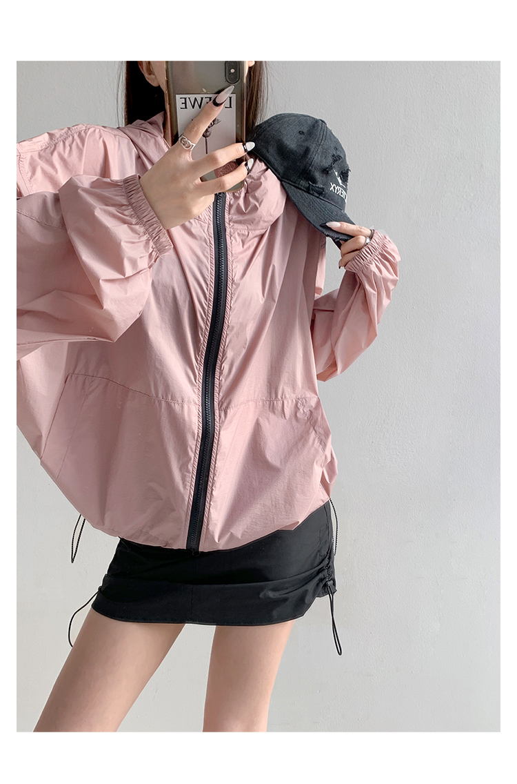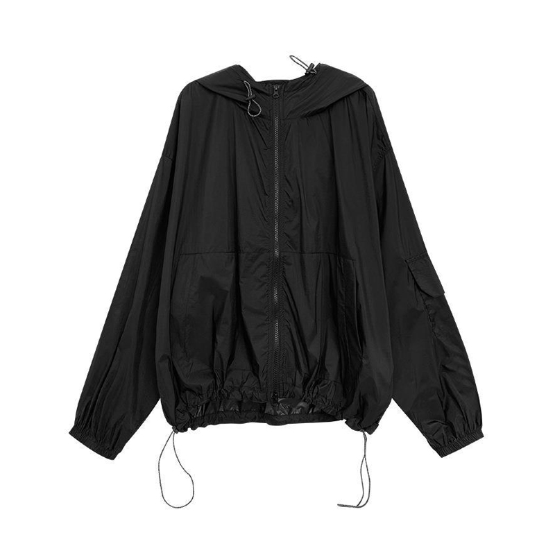 季節剛需寬鬆薄款夏季長袖連帽防曬衣女抽繩中長版戶外衝鋒外套潮