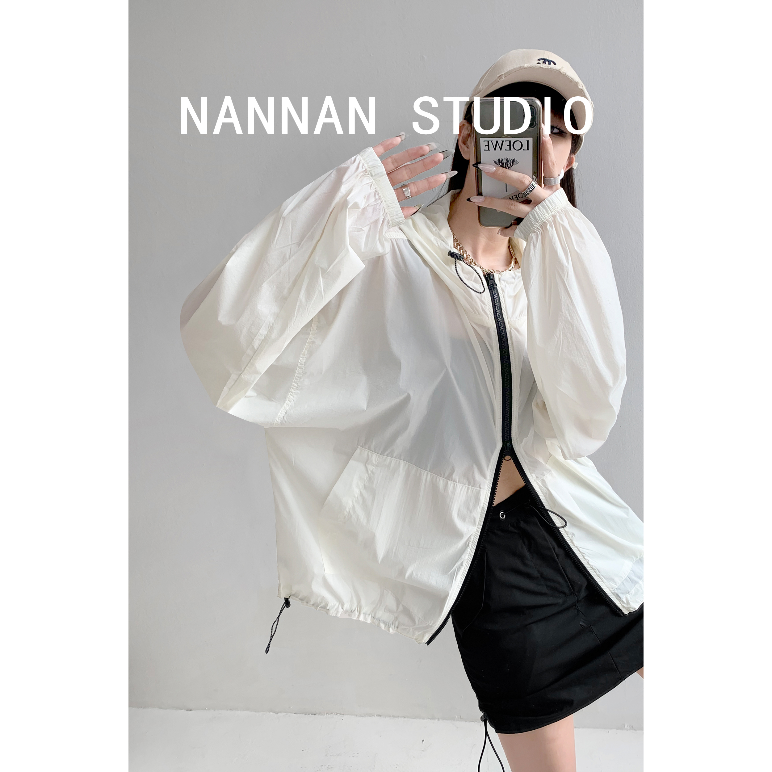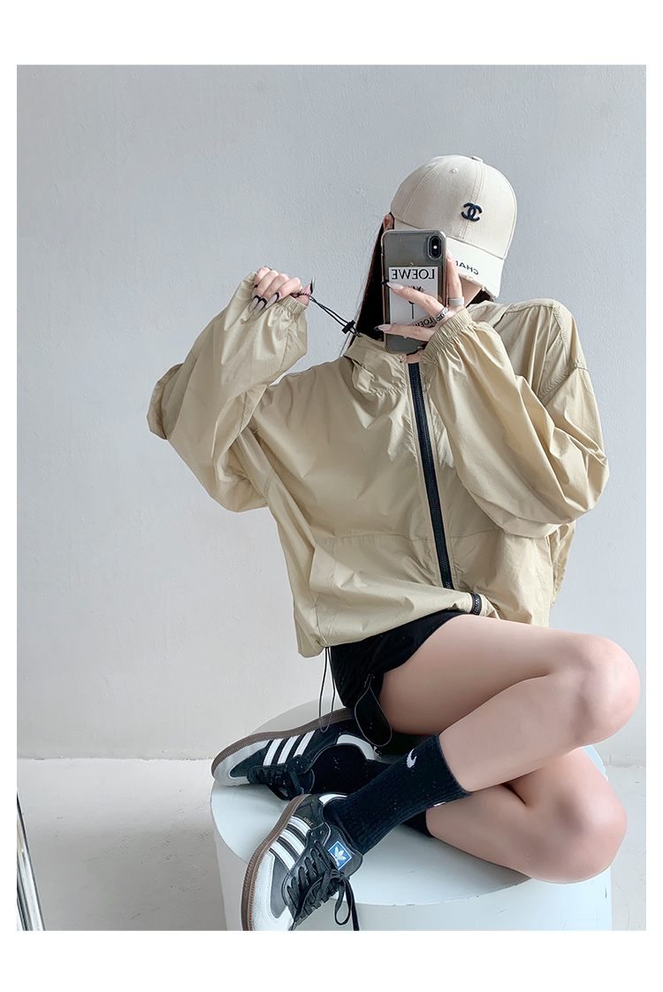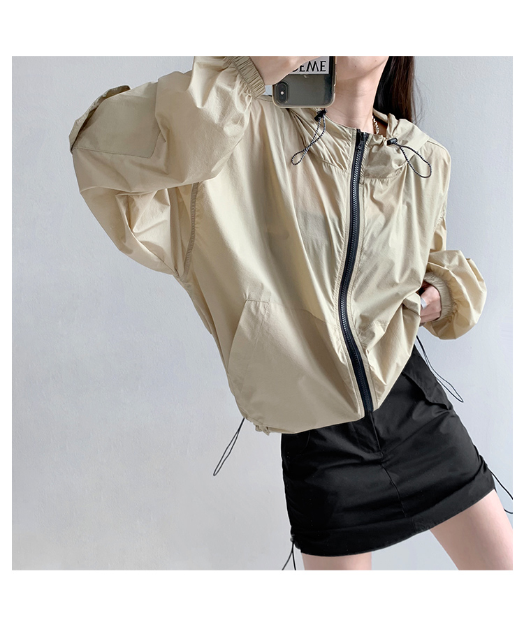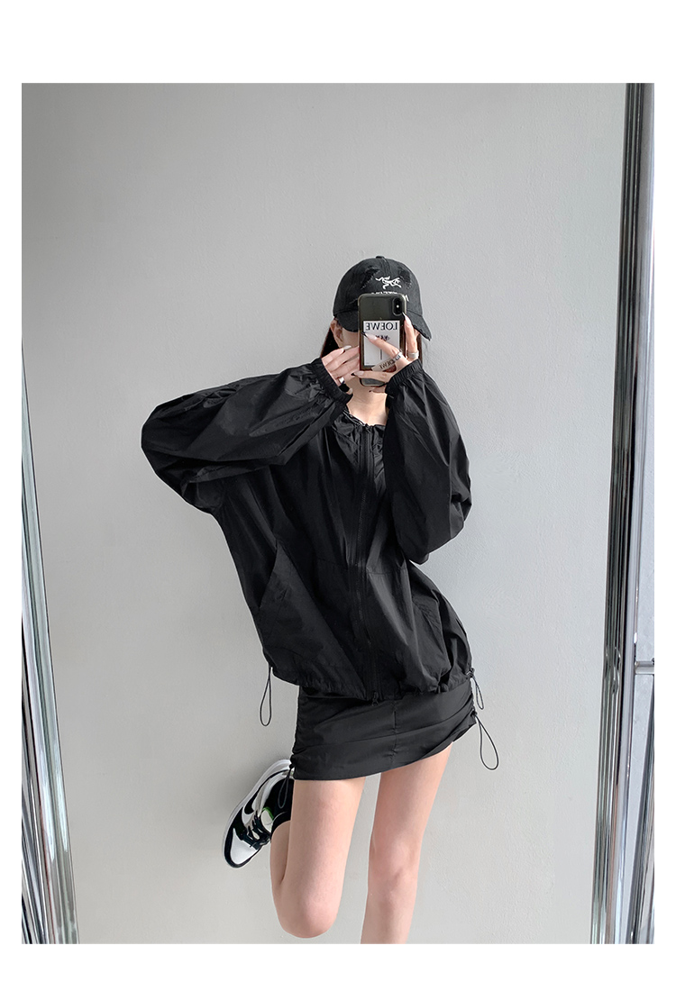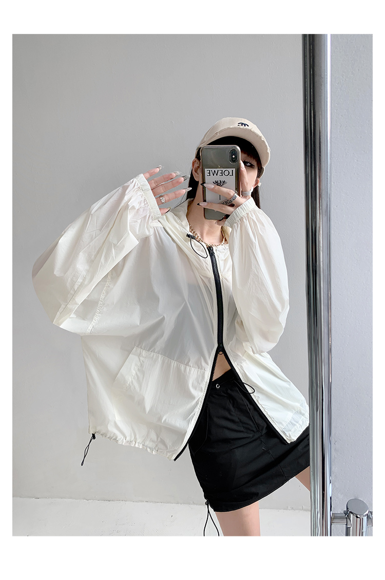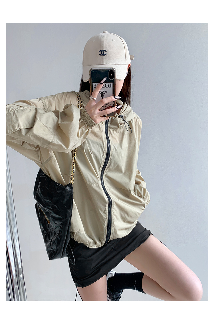 季節剛需寬鬆薄款夏季長袖連帽防曬衣女抽繩中長版戶外衝鋒外套潮