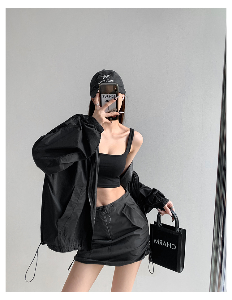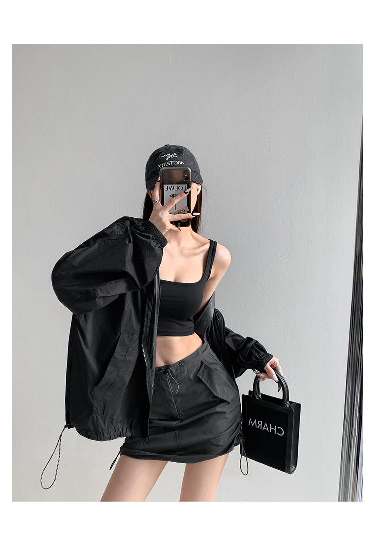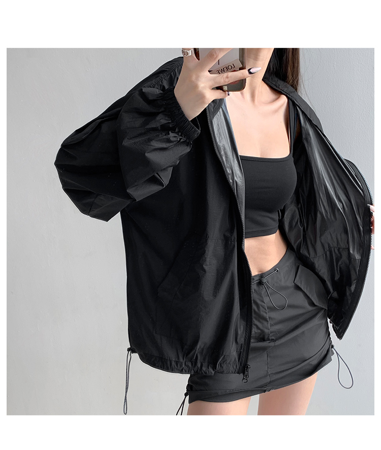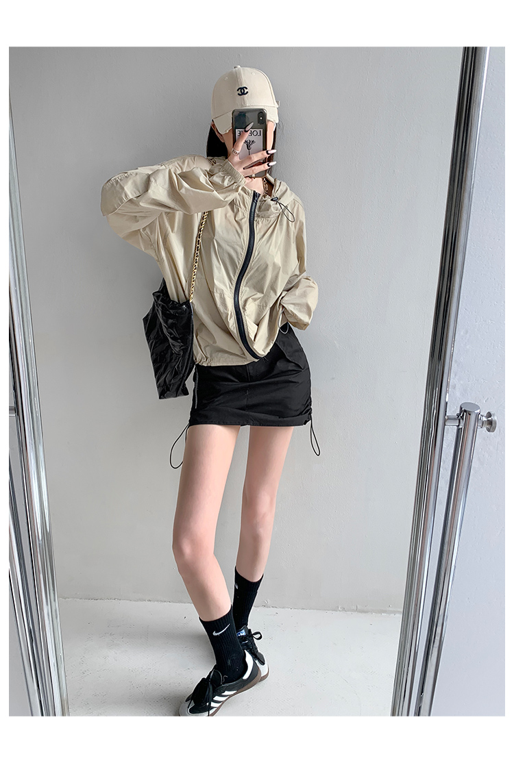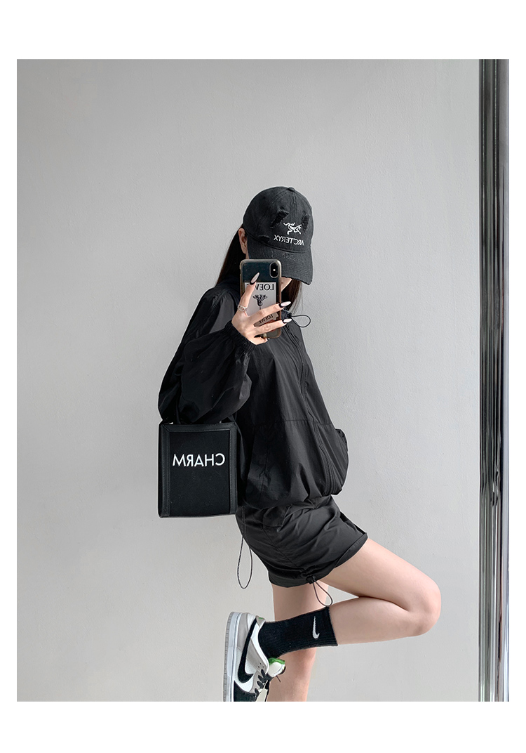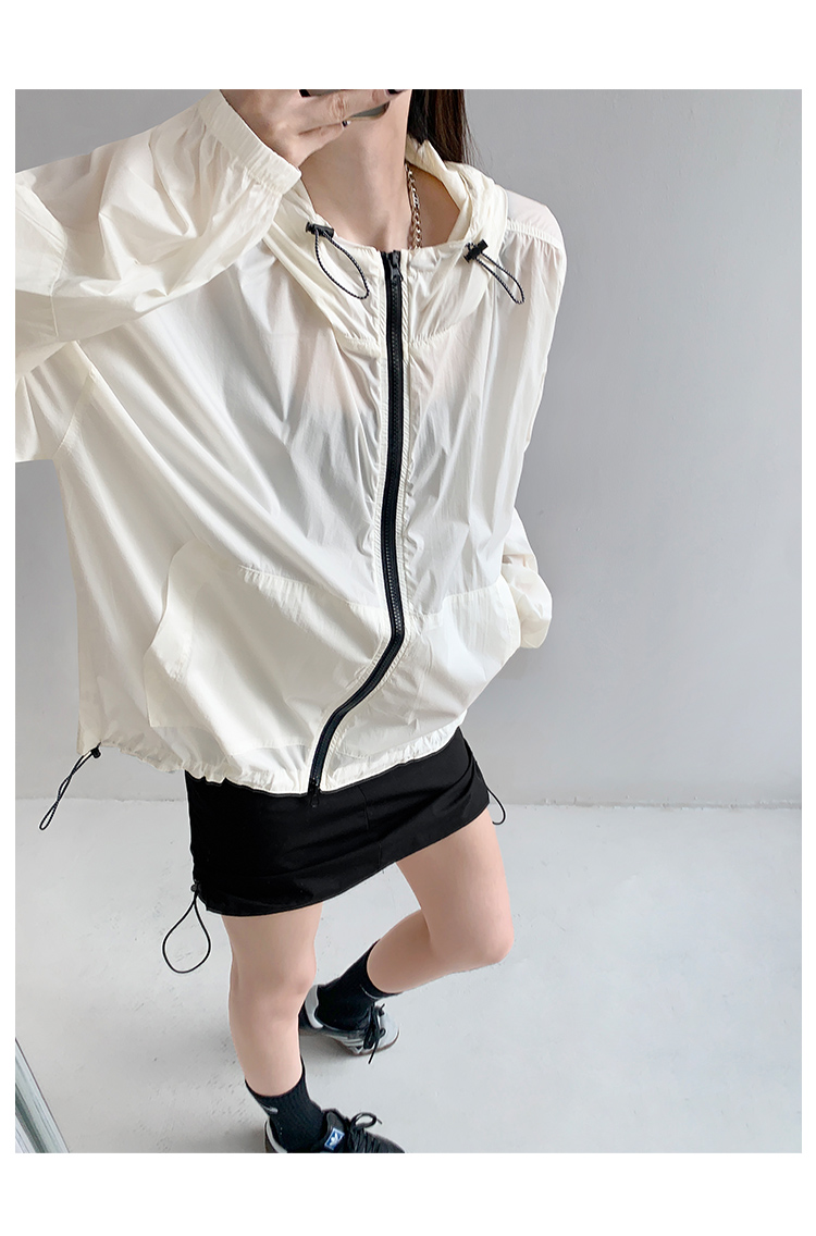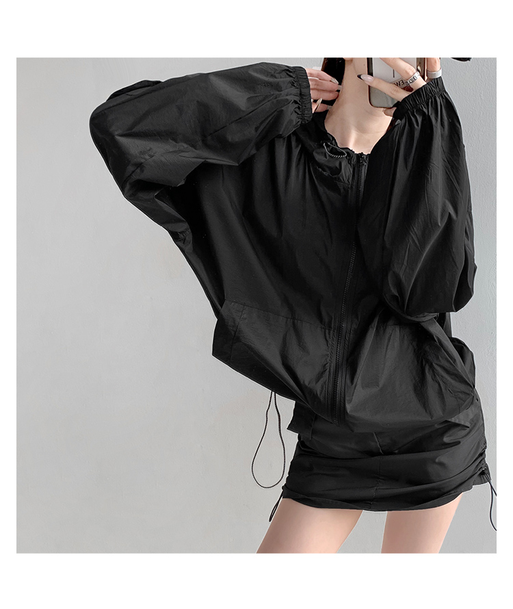 季節剛需寬鬆薄款夏季長袖連帽防曬衣女抽繩中長版戶外衝鋒外套潮