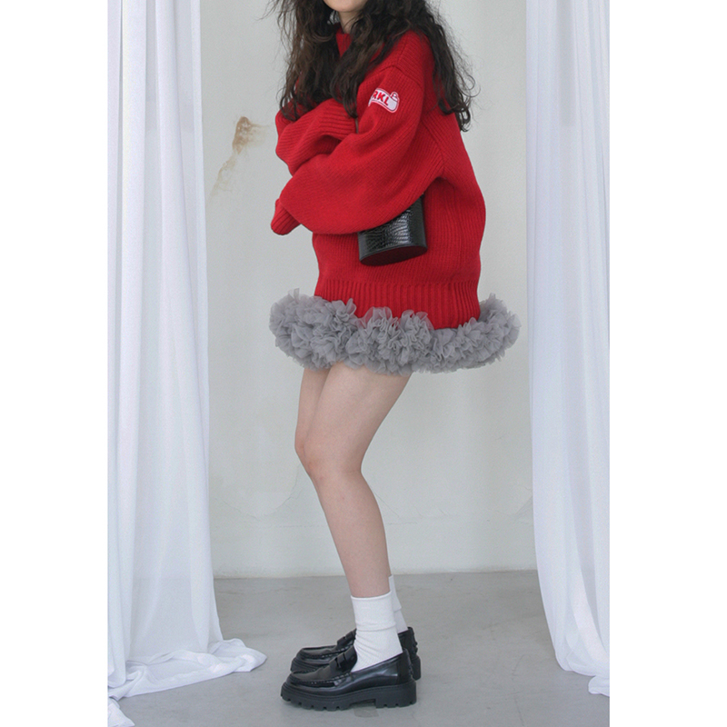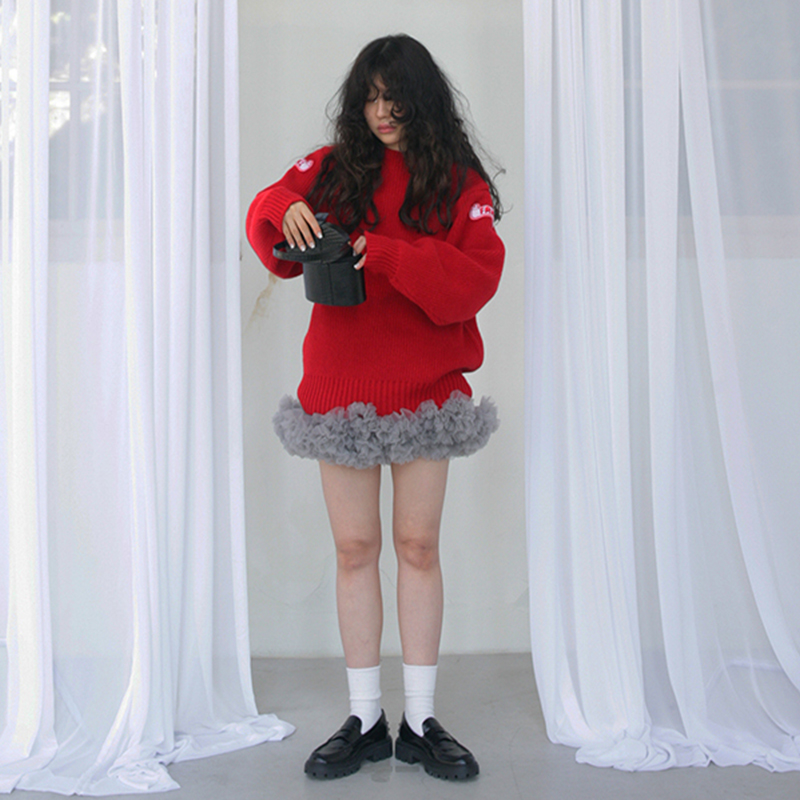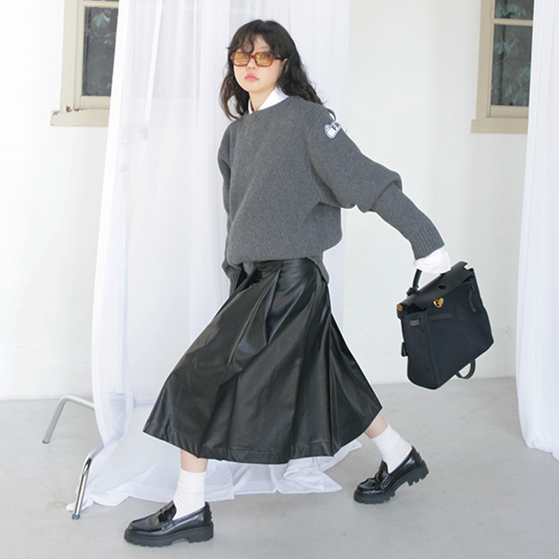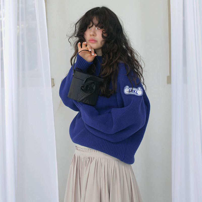 豬歐尼 韓國ins秋冬復古小眾設計感字母刺繡圓領寬鬆針織衫毛衣女