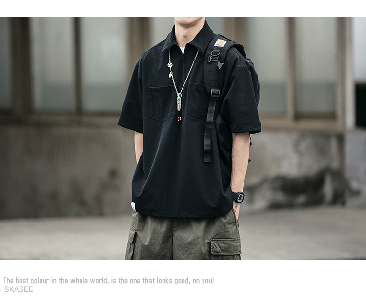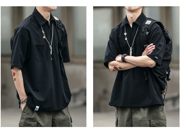 polo衫男潮牌大尺碼短袖夏季薄款寬鬆日潮工裝襯衫半袖機能拉夫·勞倫馬球衫潮