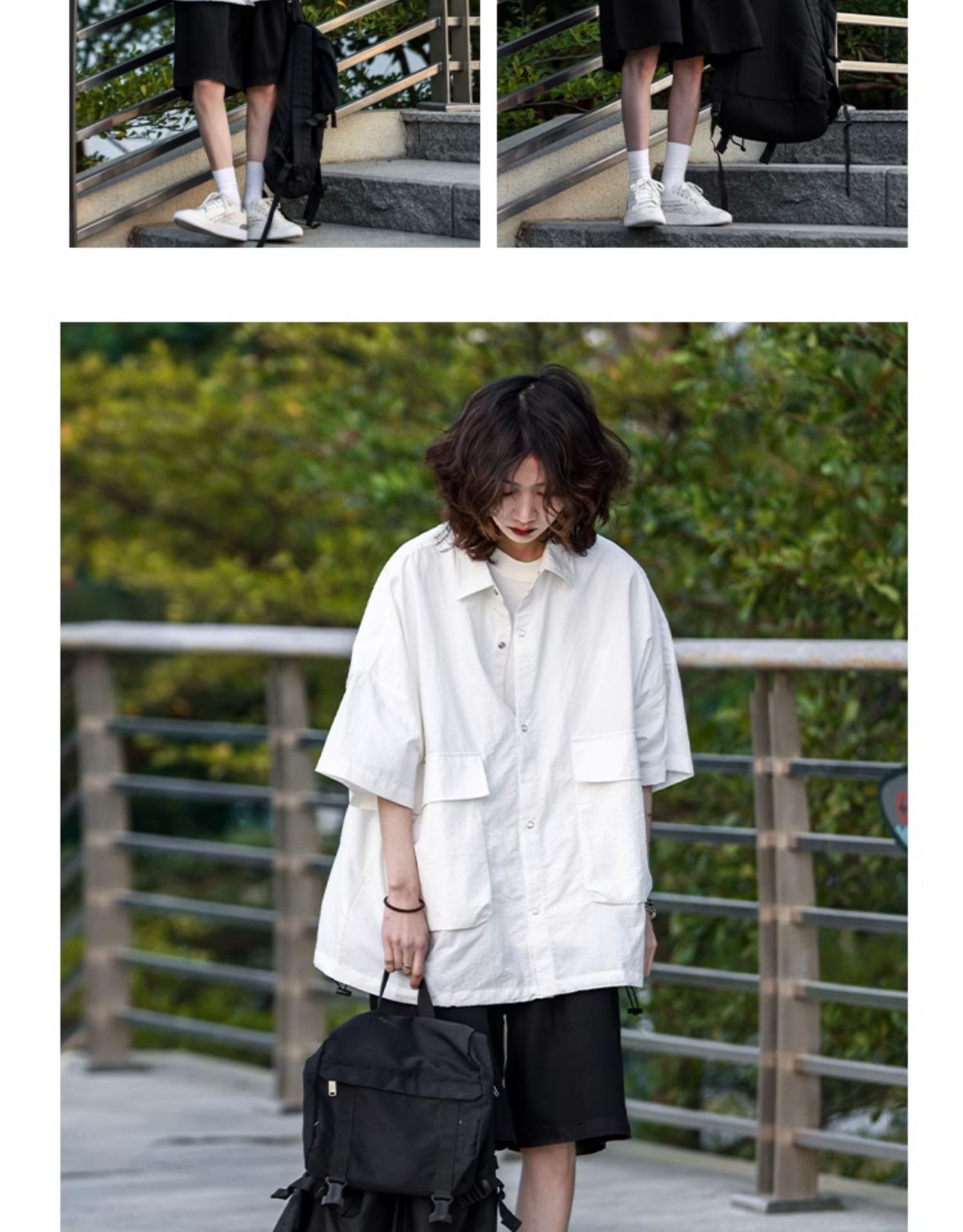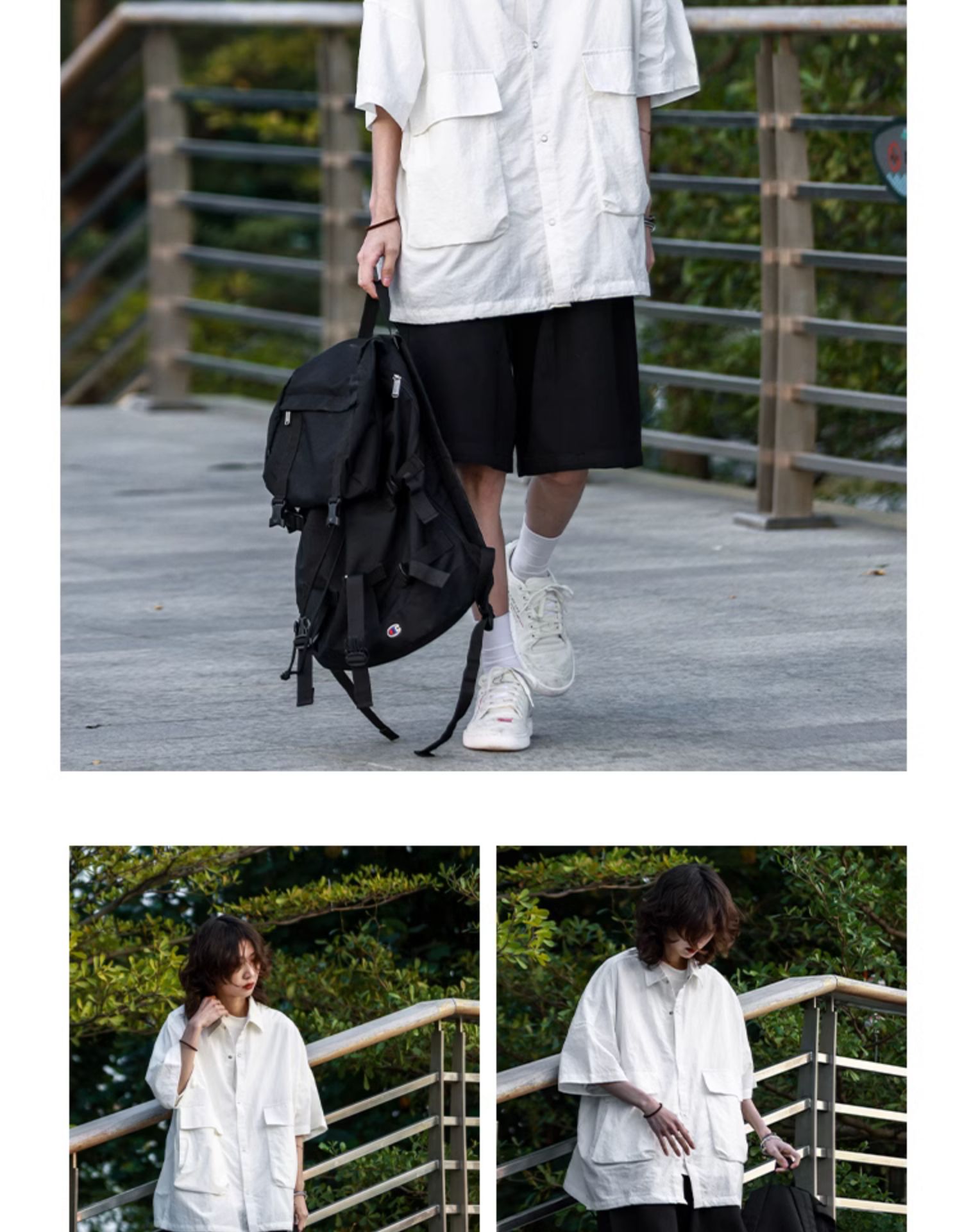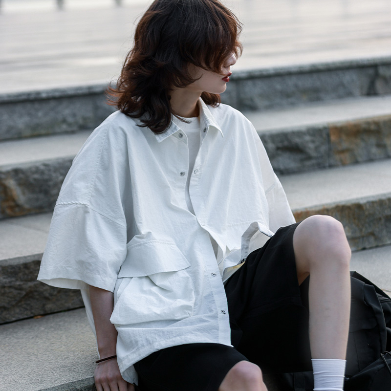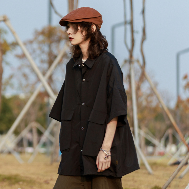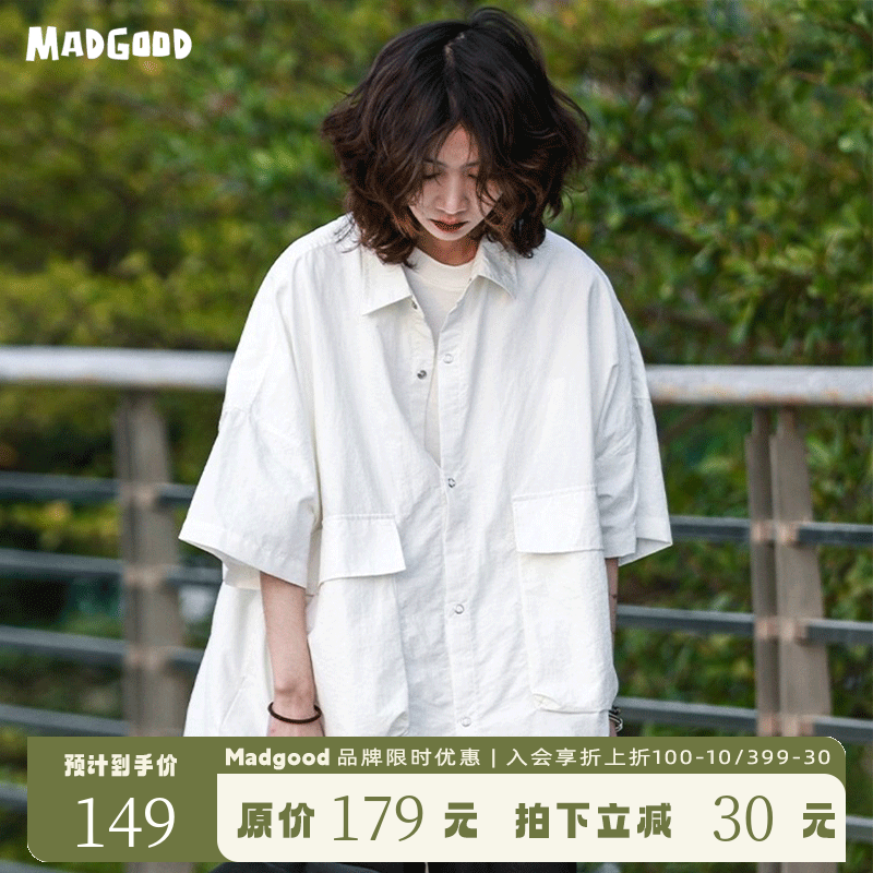 madgood馬得工地日系國潮多口袋襯衫短袖休閒百搭寬鬆情侶通勤