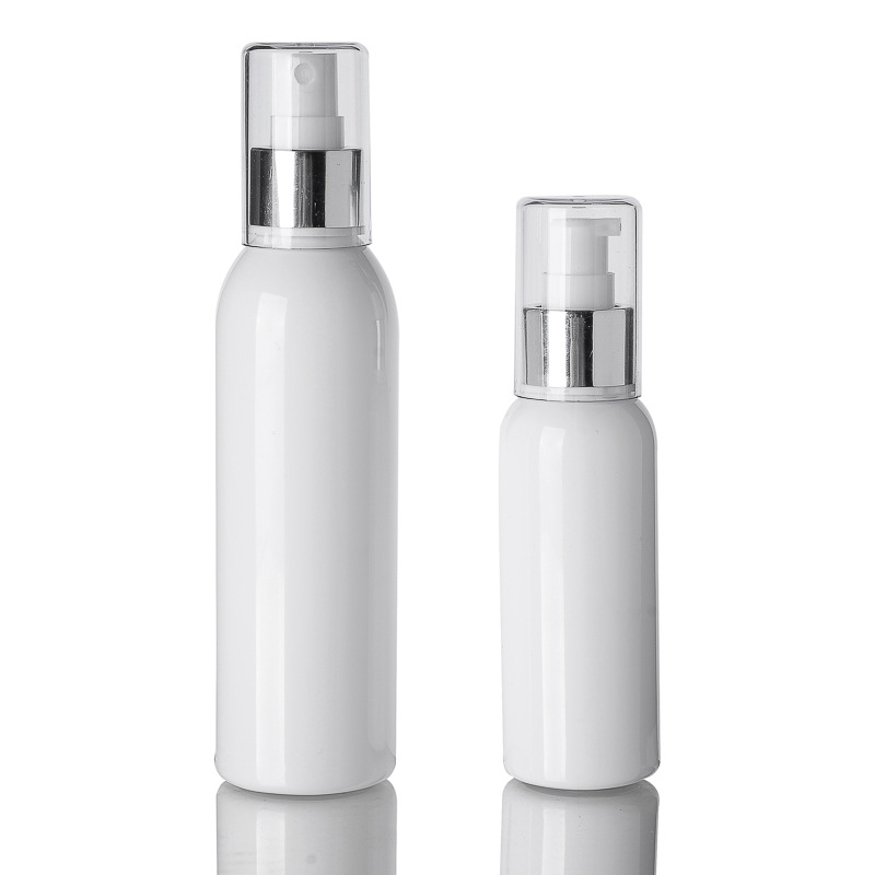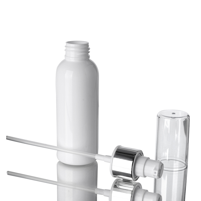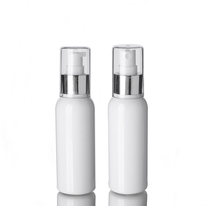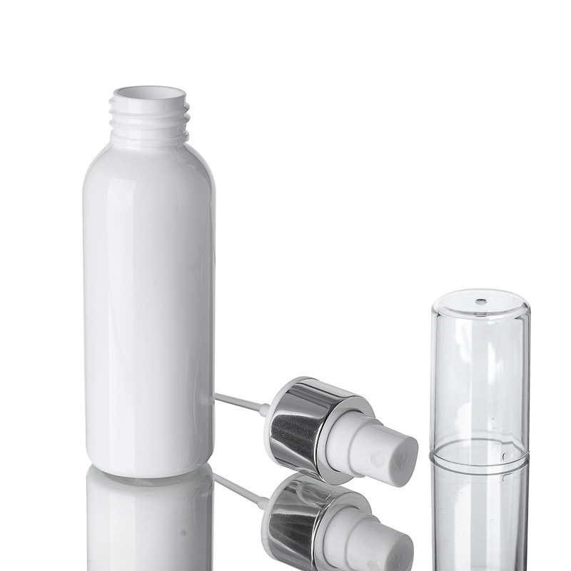工厂现货销售100ml白色PET氧化铝全罩塑料喷雾乳液瓶旅行包装空瓶