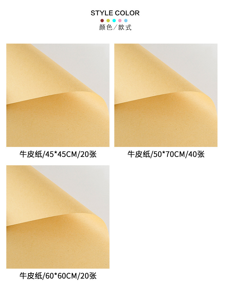 颜色 45*45cm-纯色牛皮纸20张,60*60cm-纯色牛皮纸20张,50*70cm-纯色牛皮纸40张