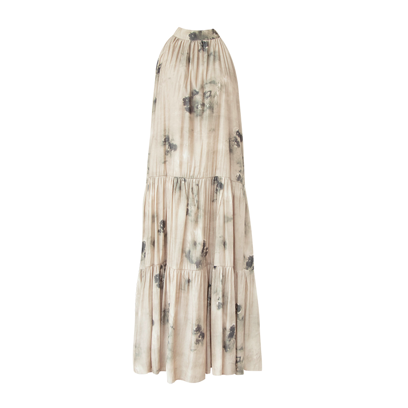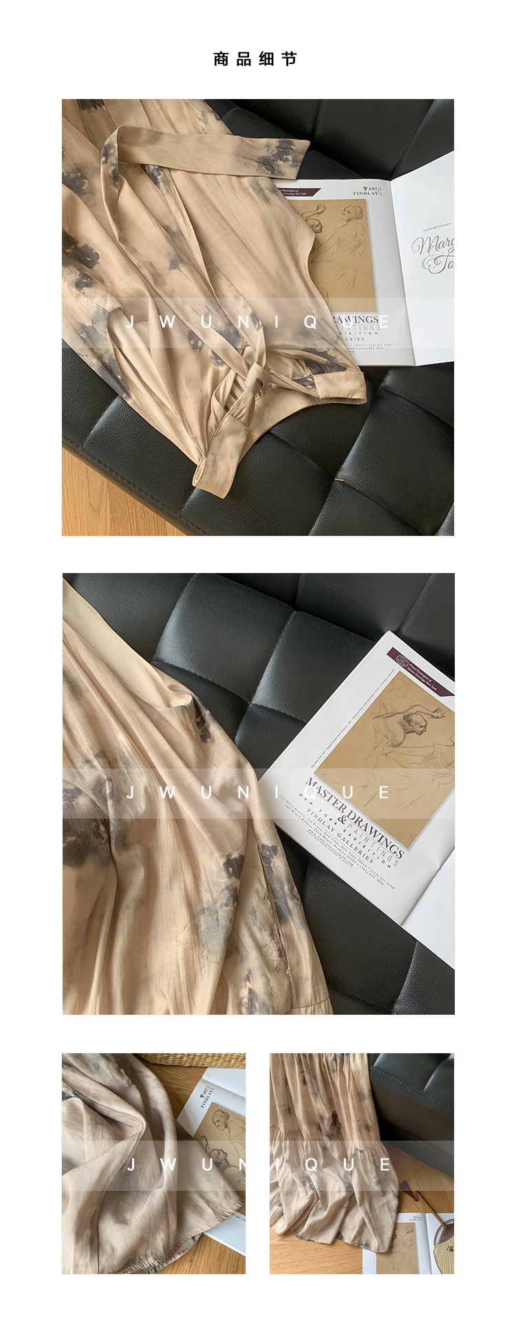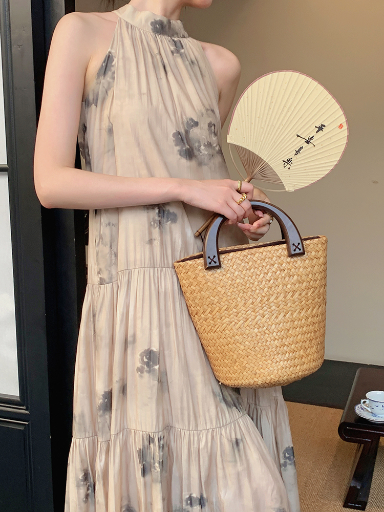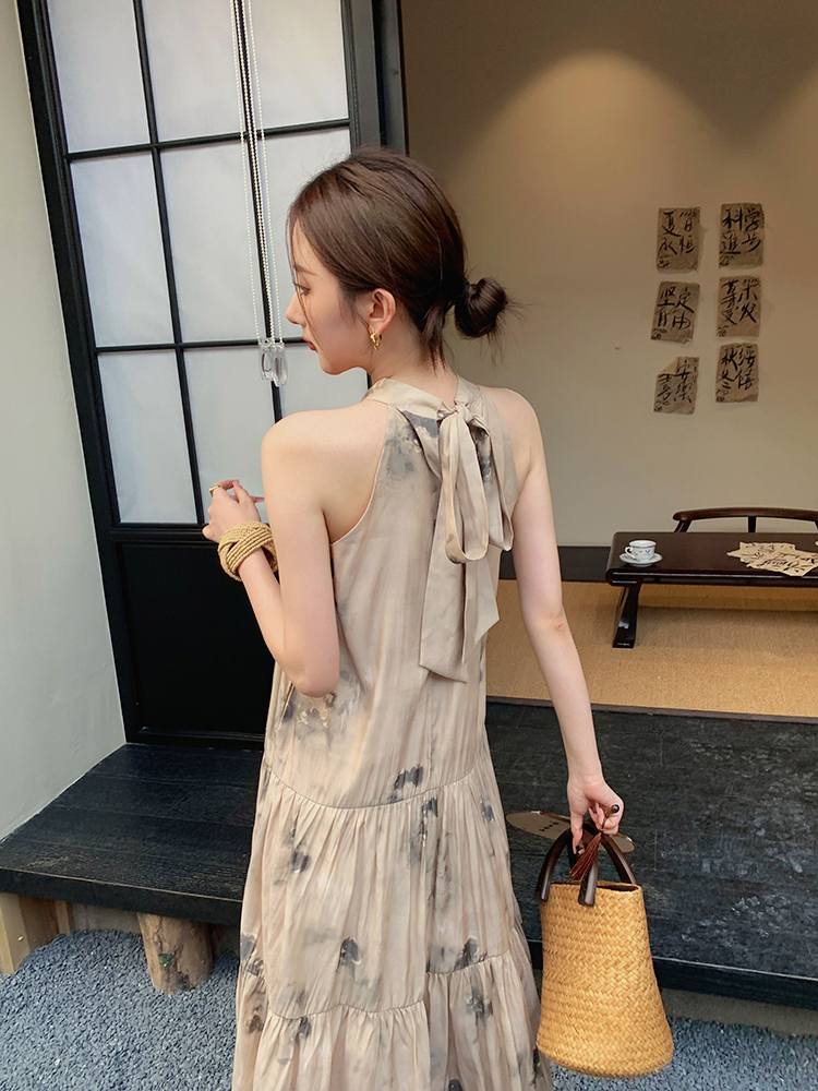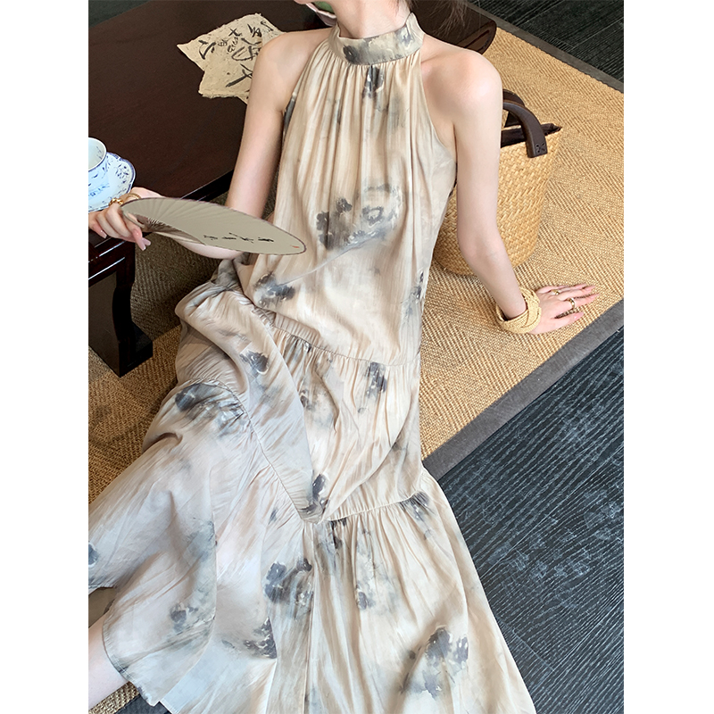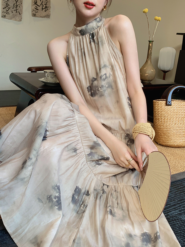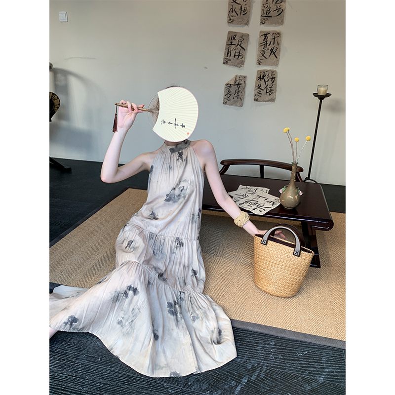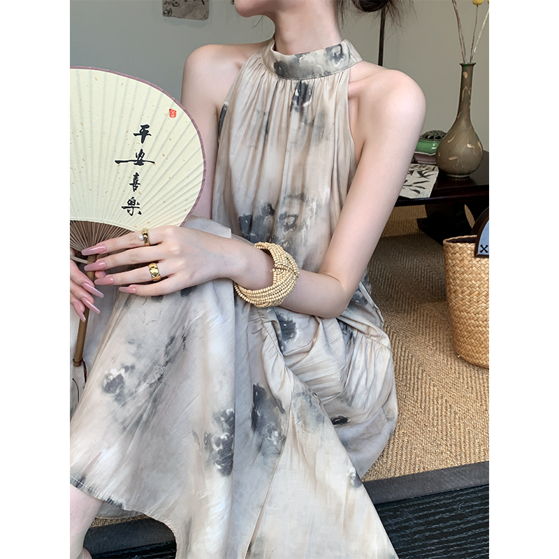 JWUNIQUE杏色高級感無袖洋裝女夏季2023新款寬鬆新中式國風裙子
