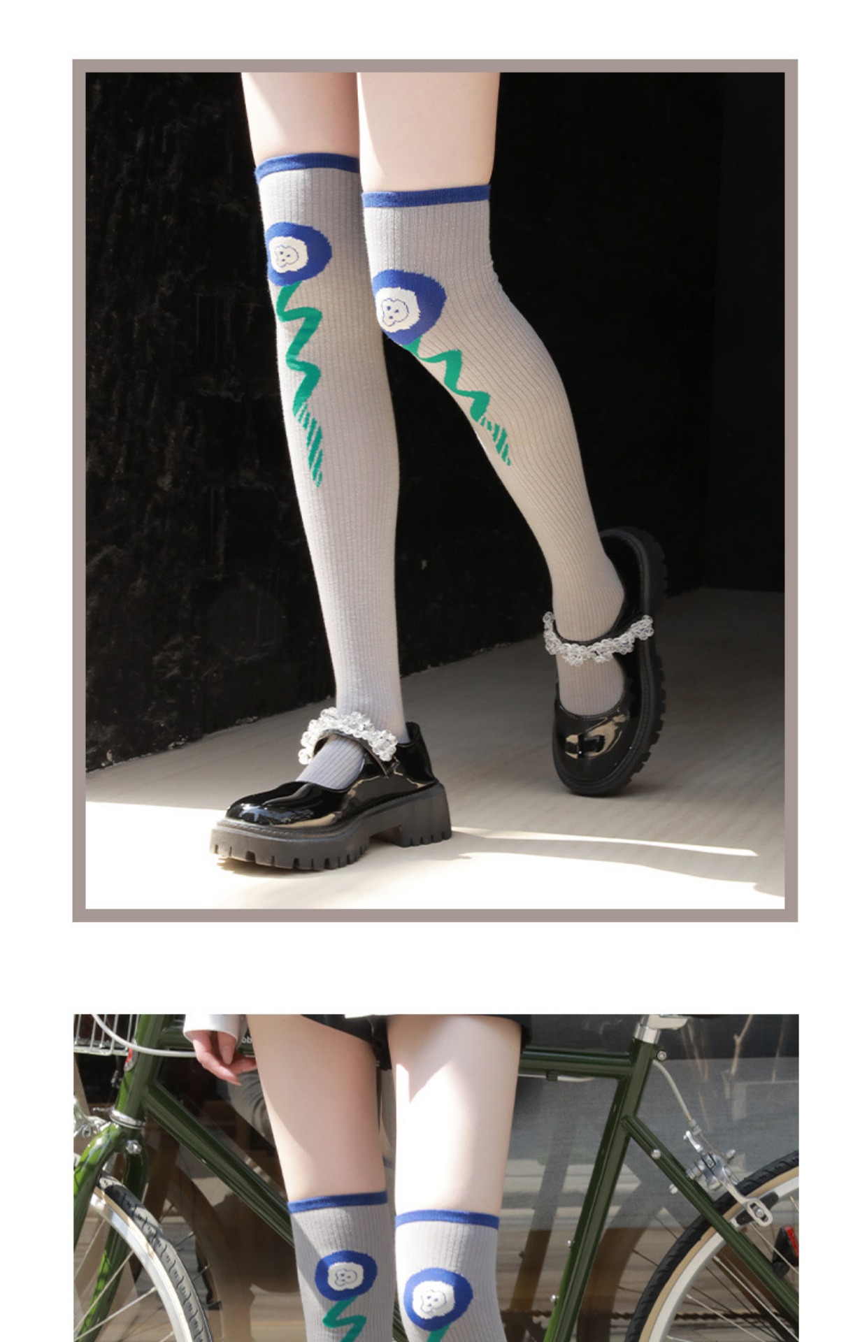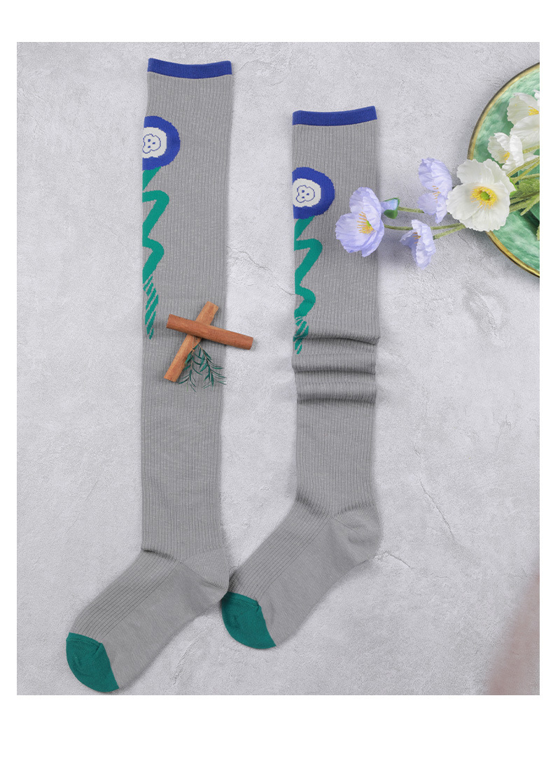 DAMAHOOV原創兩生花個性設計師款過膝襪高筒春秋大腿襪長筒棉襪女