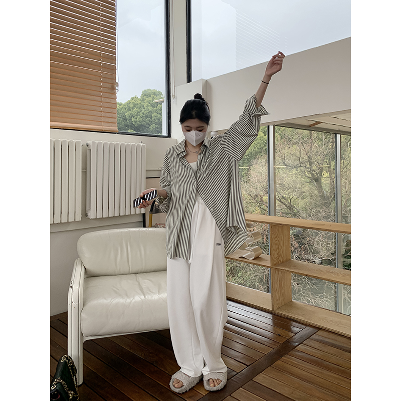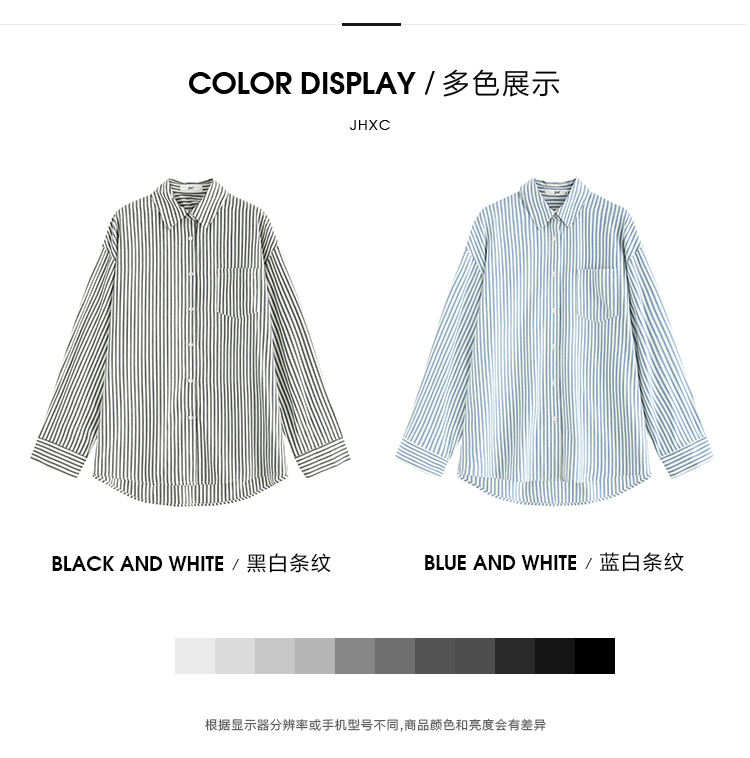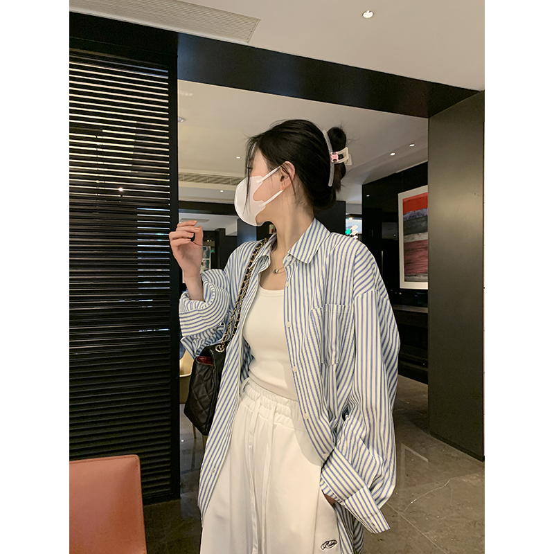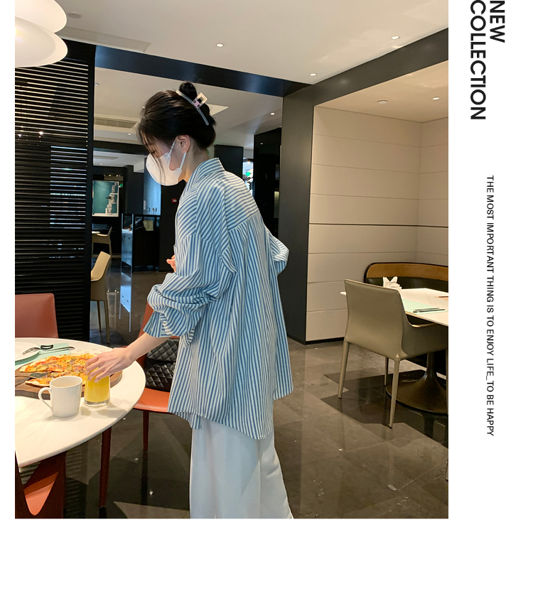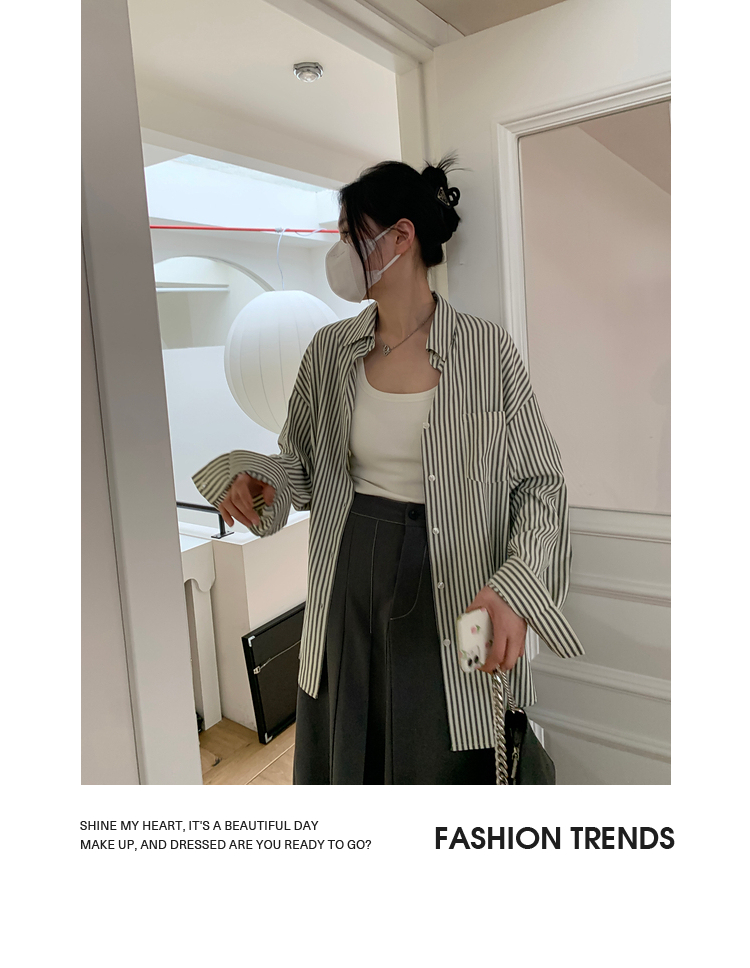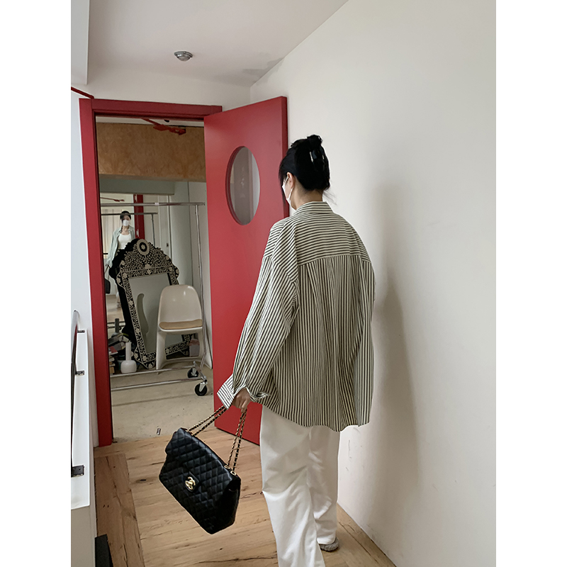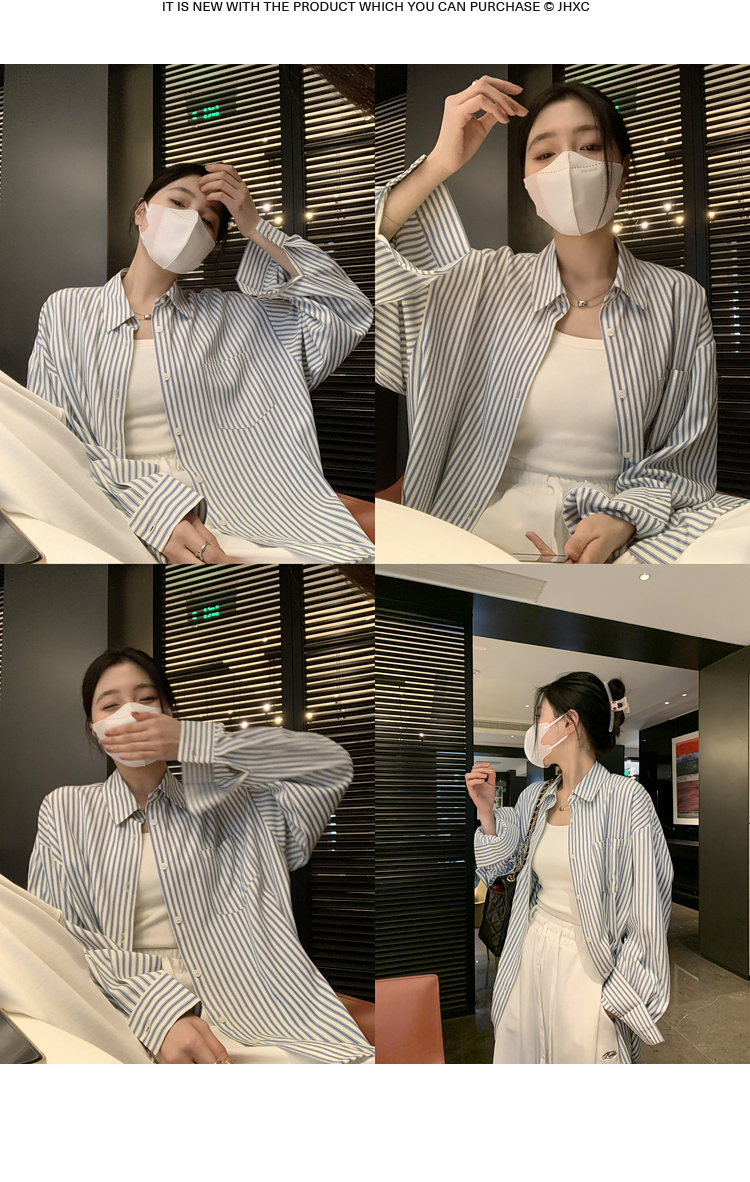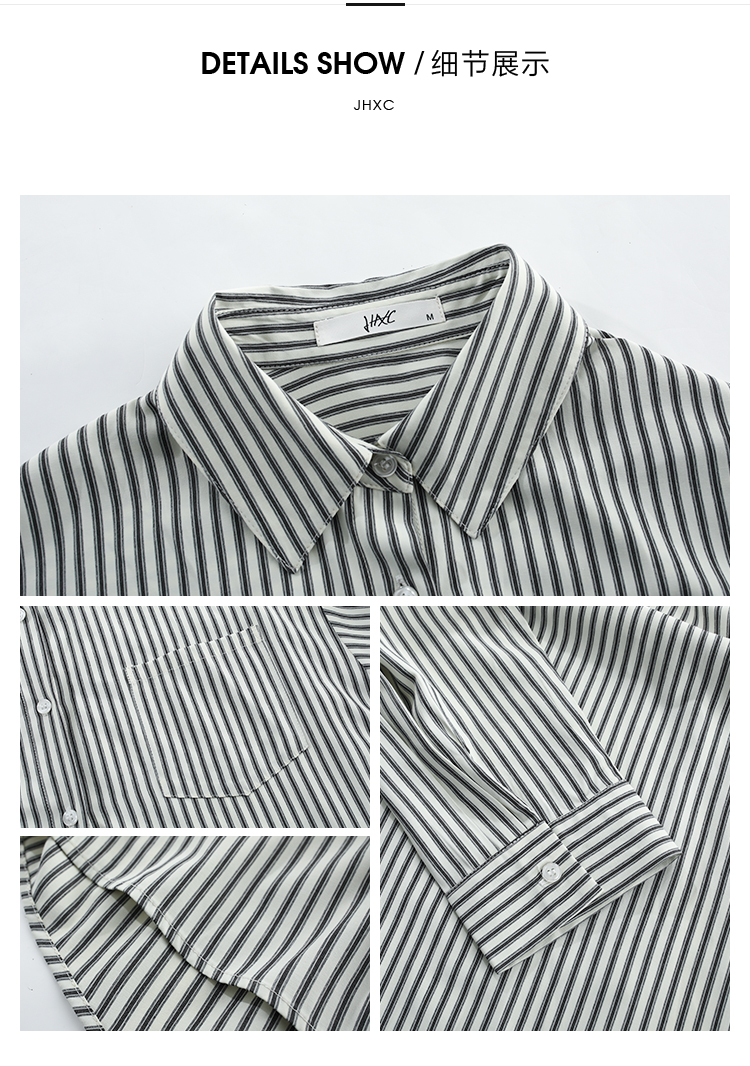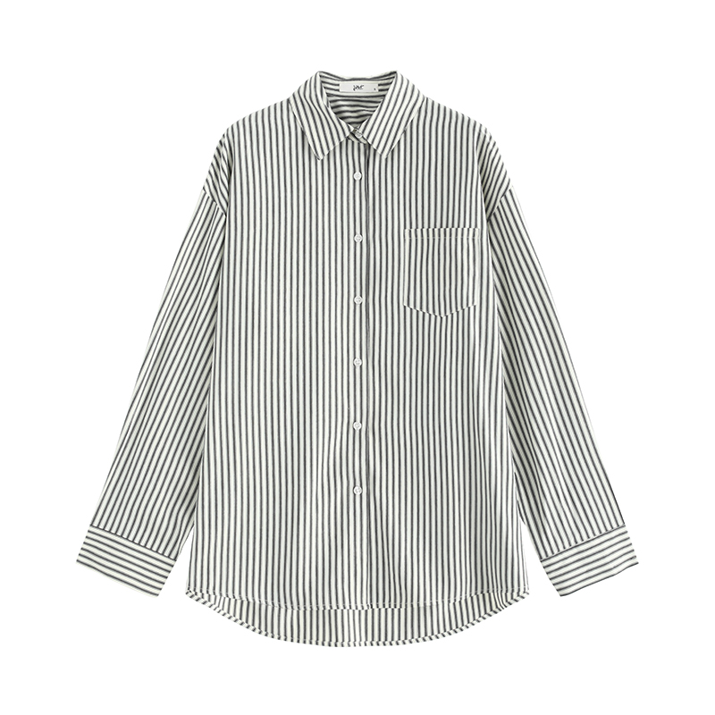 JHXC條紋襯衫上衣女設計感小眾2023春秋新款韓版長袖休閒襯衫外套
