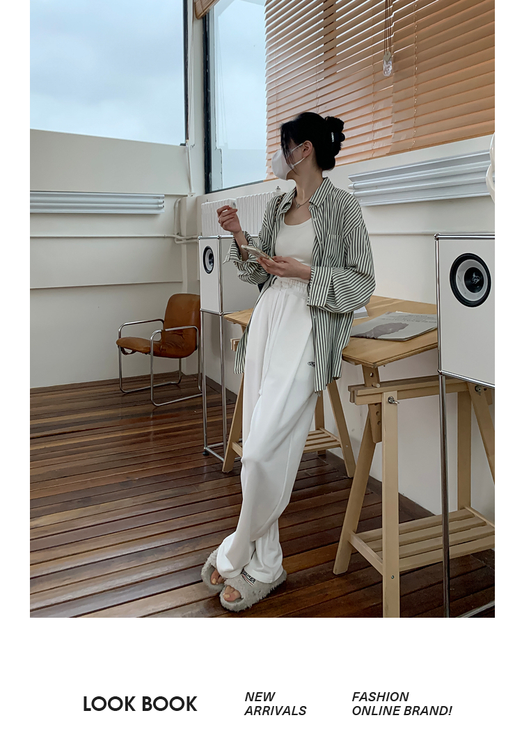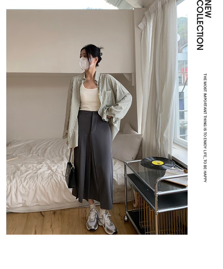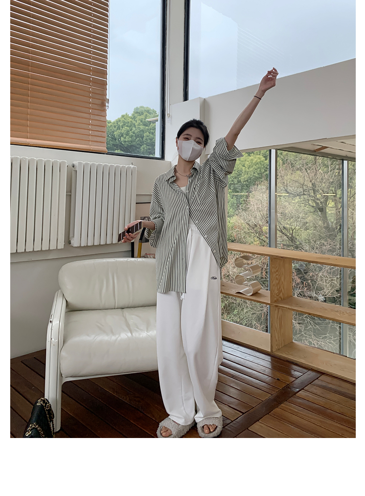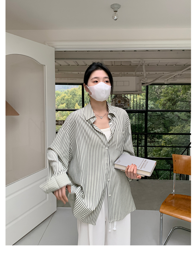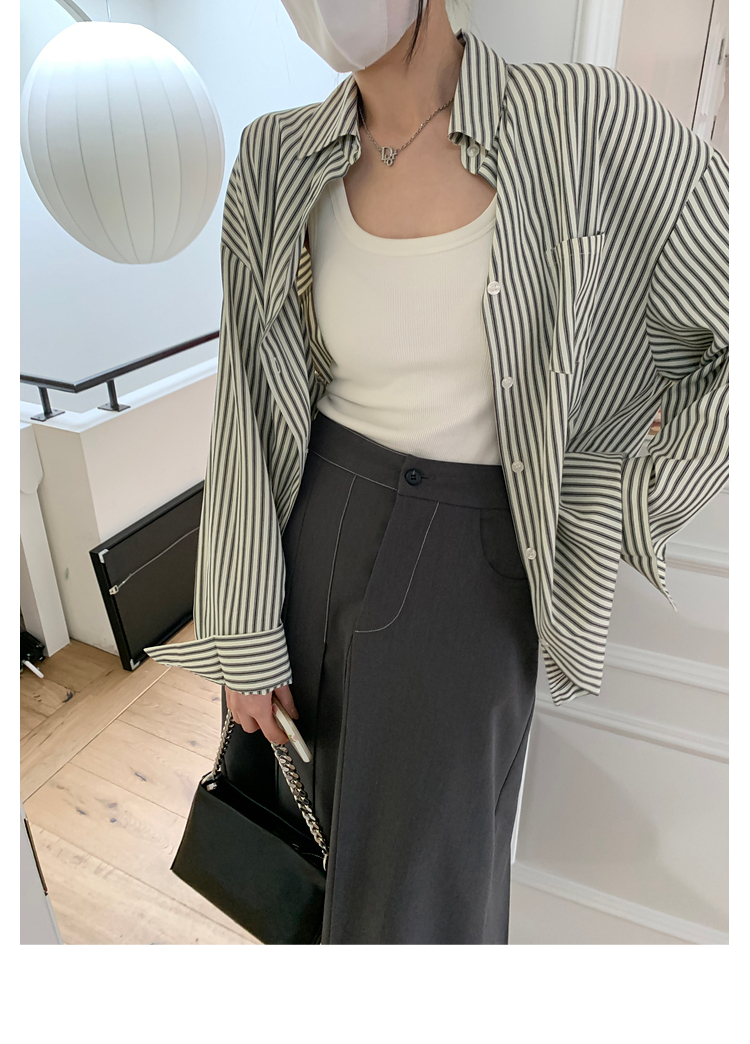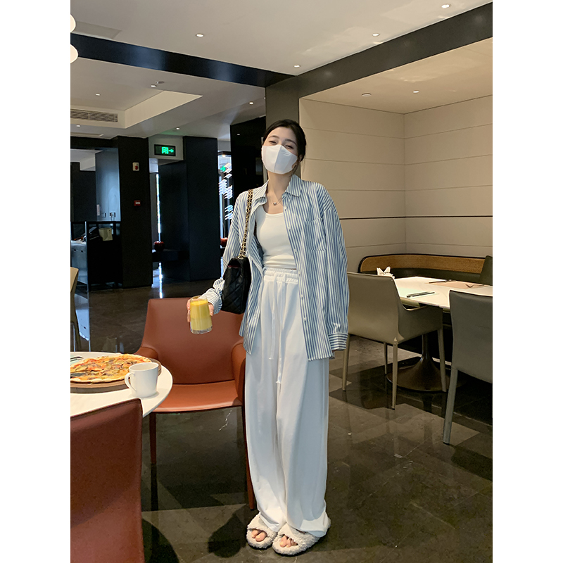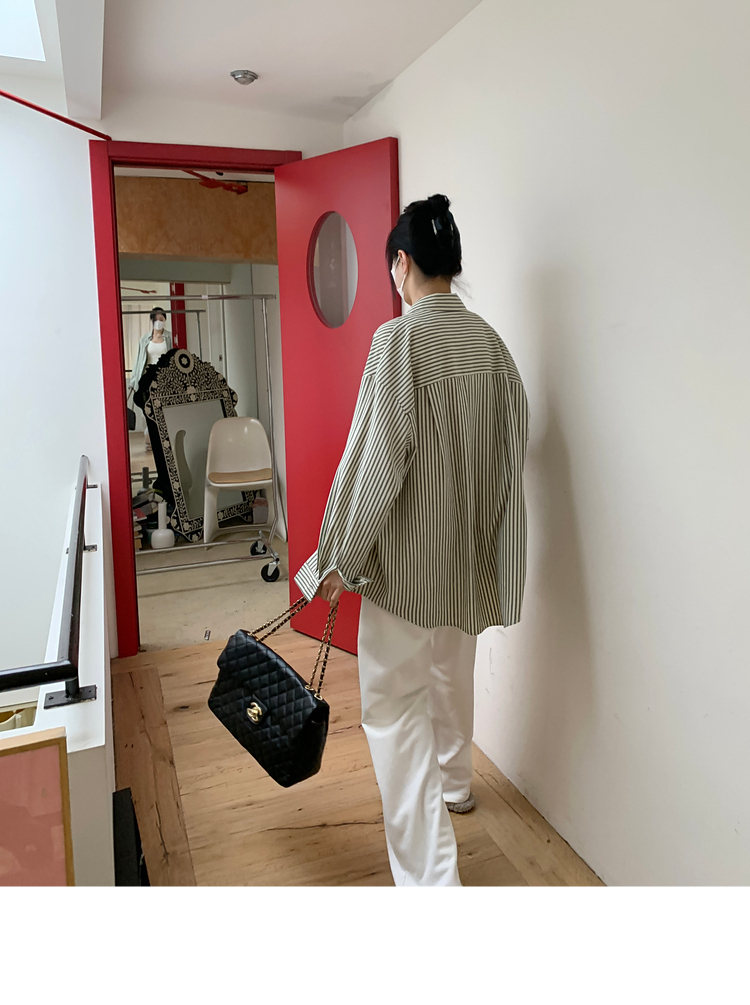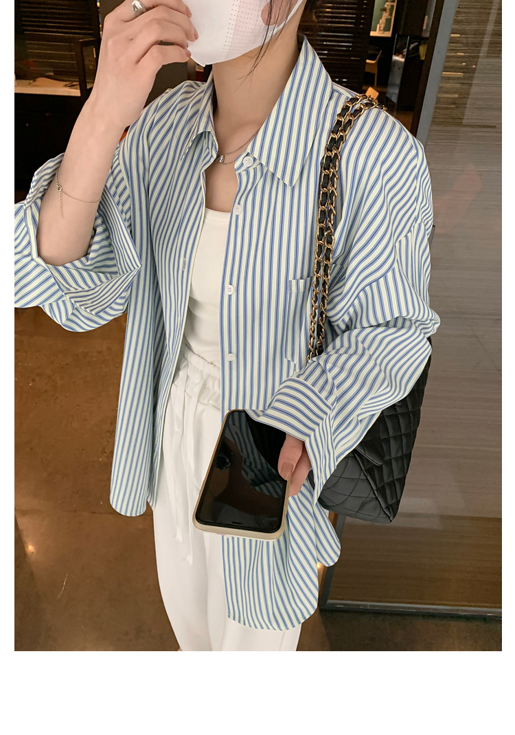 JHXC條紋襯衫上衣女設計感小眾2023春秋新款韓版長袖休閒襯衫外套
