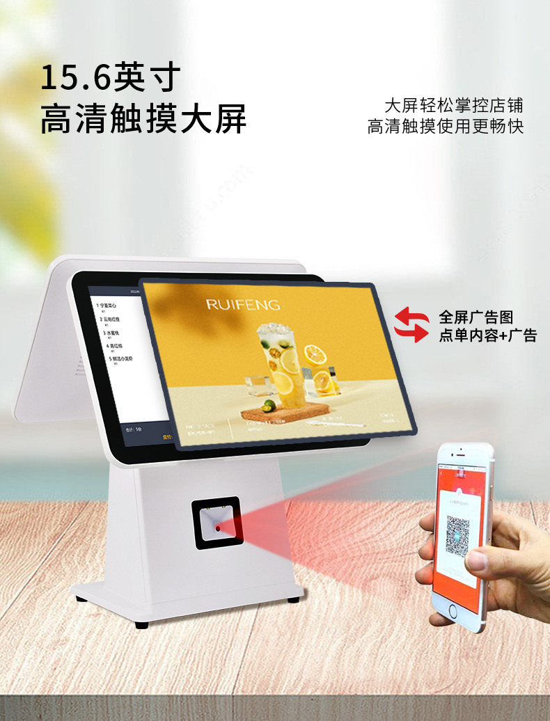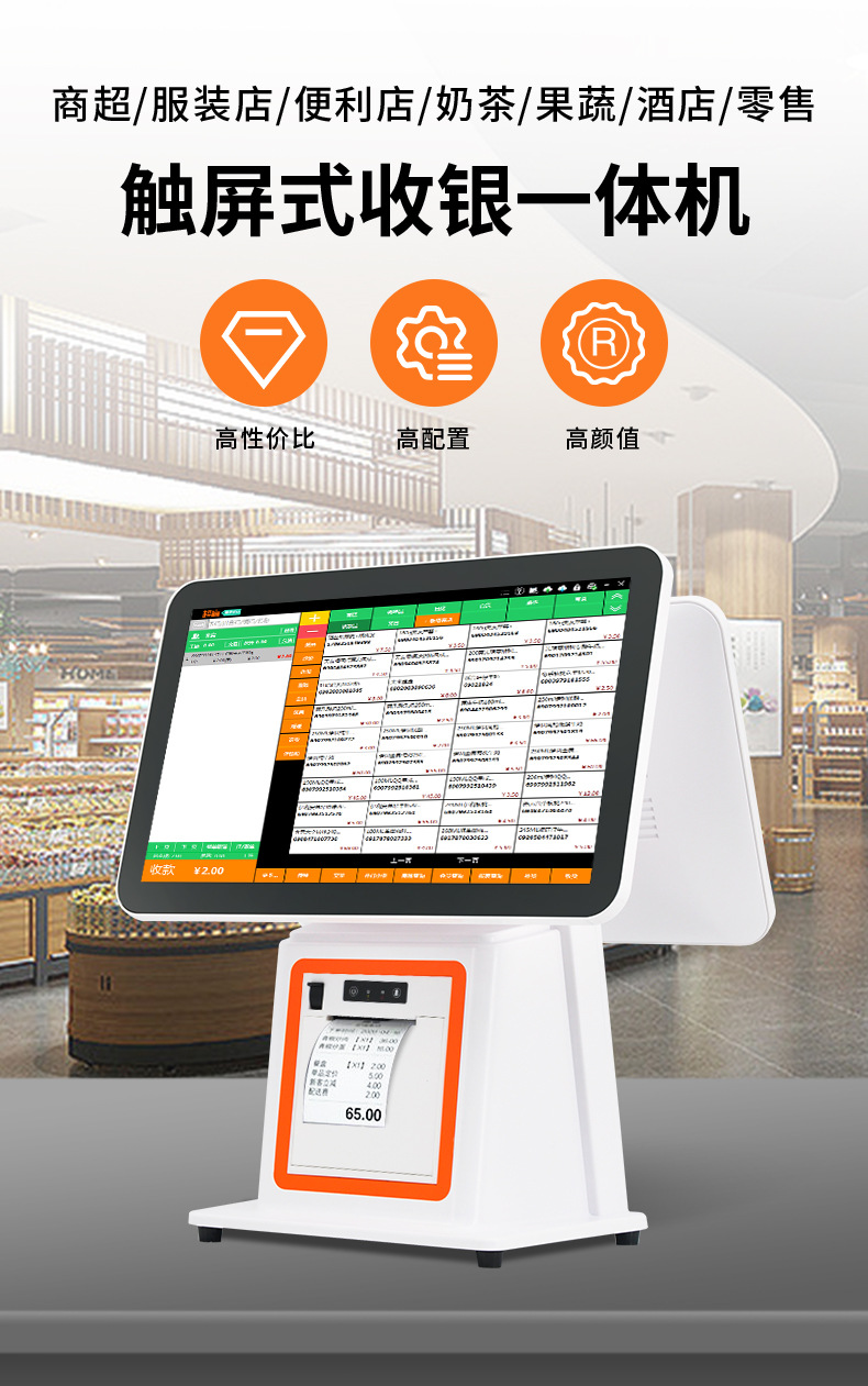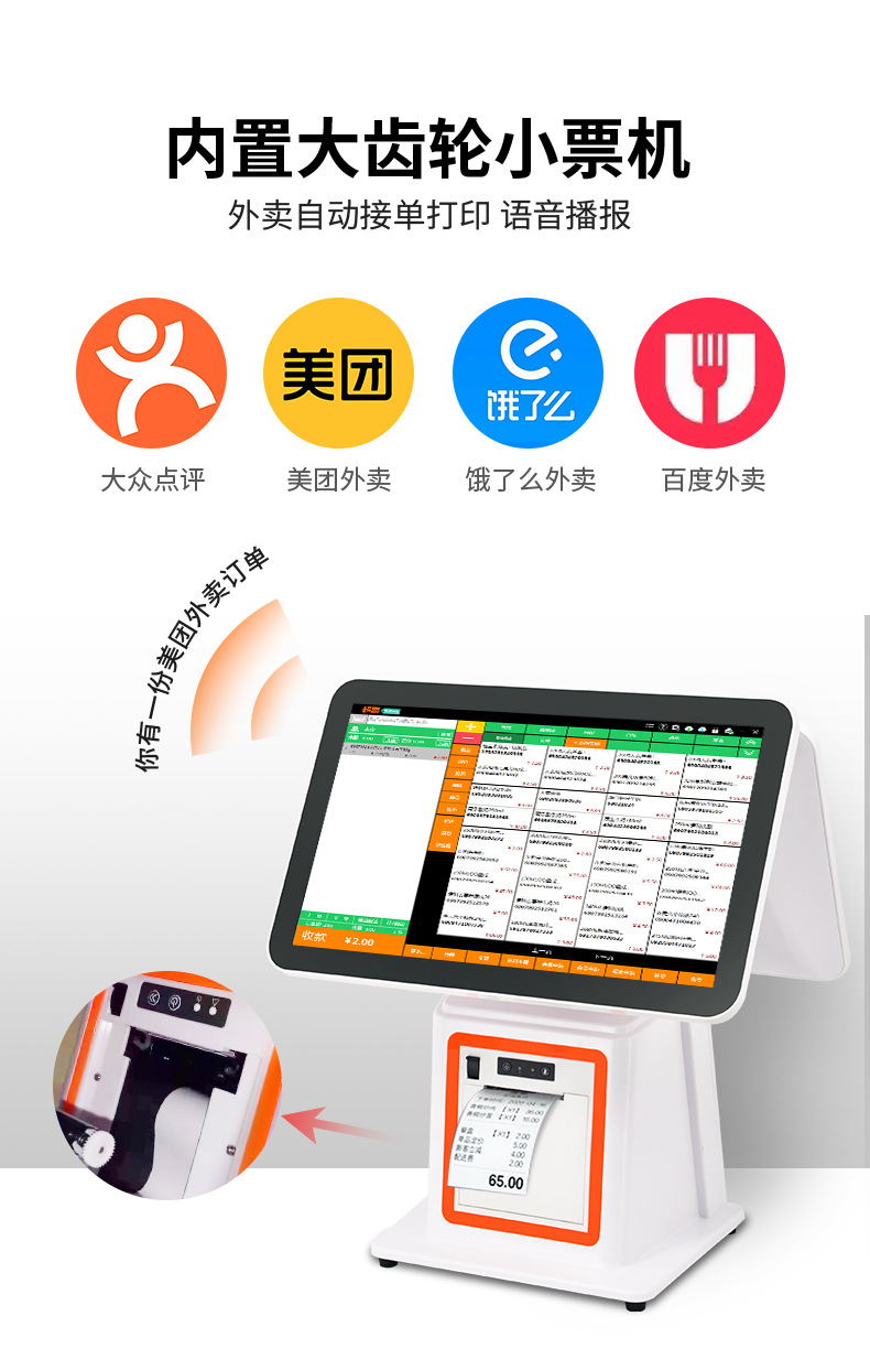 单双屏触摸美妆服装店点餐收银机餐饮奶茶店美团超市收银机一体机