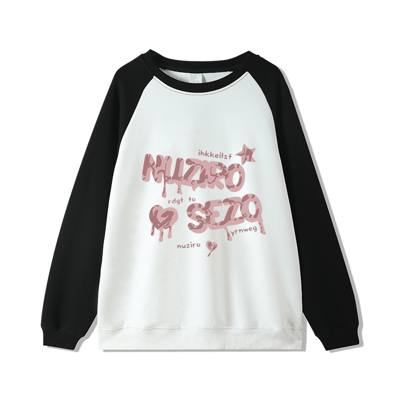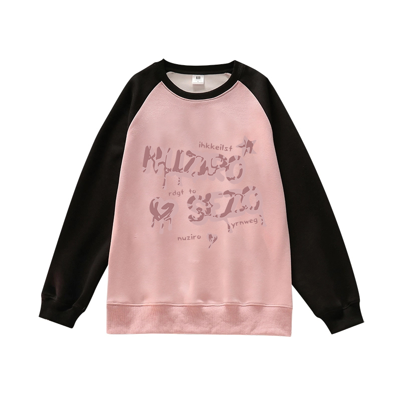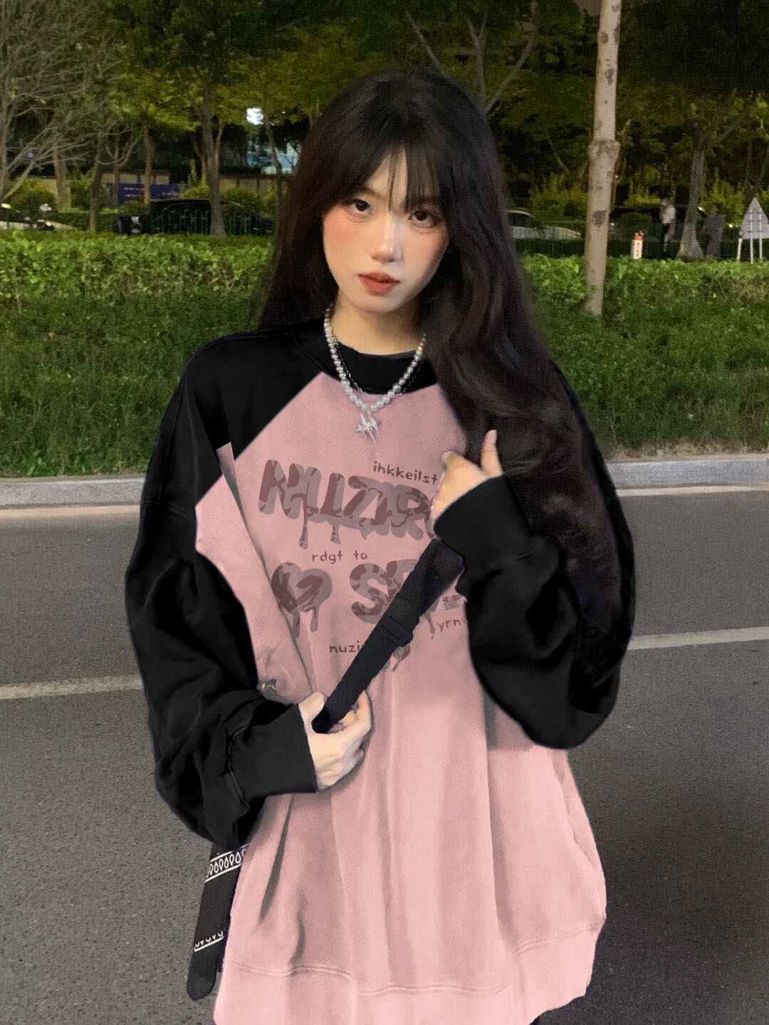粉色插肩袖卫衣女春秋季韩版宽松设计感小众美式慵懒chic长袖上衣