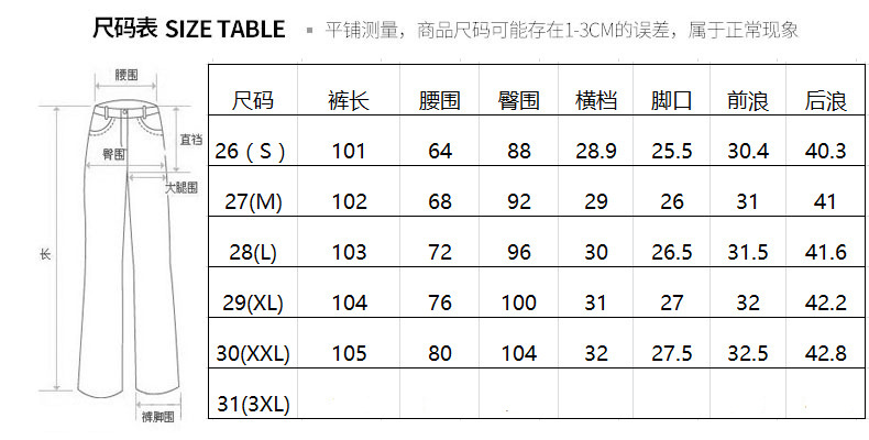尺码 26/S,27/M,28/L,29/XL,30/XXL