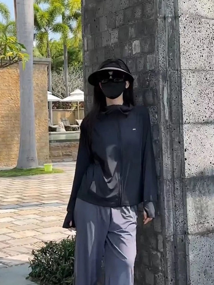 黑色防曬衣女款2023新款夏季冰絲薄款外套開衫小個子防紫外線上衣
