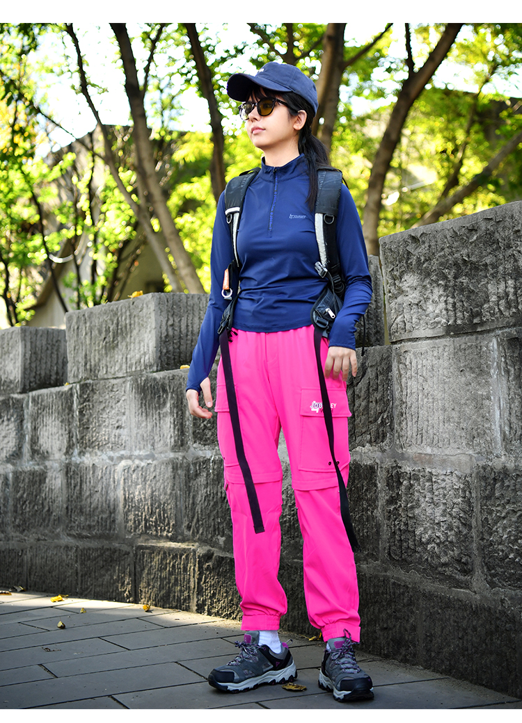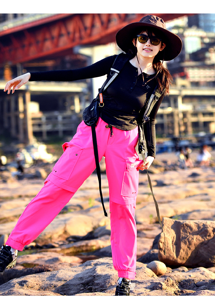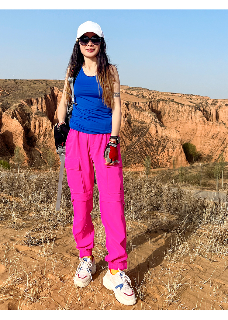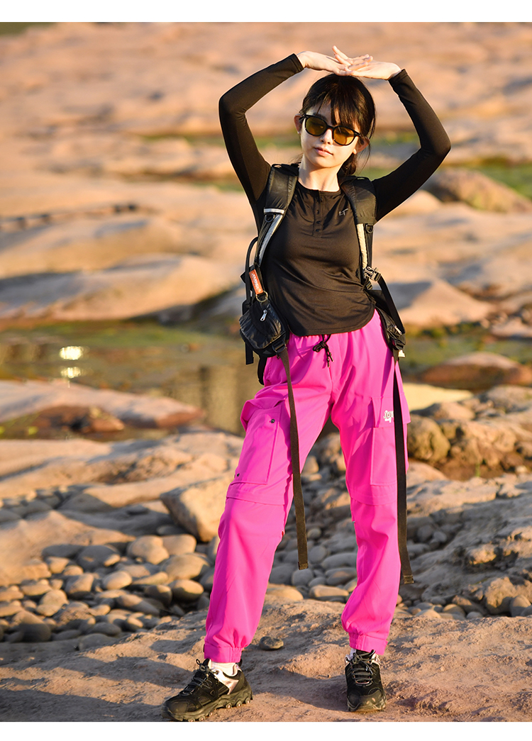 北京森林戶外潮牌休閒寬鬆顯瘦多袋束腳薄款彈力透氣速乾長褲女式