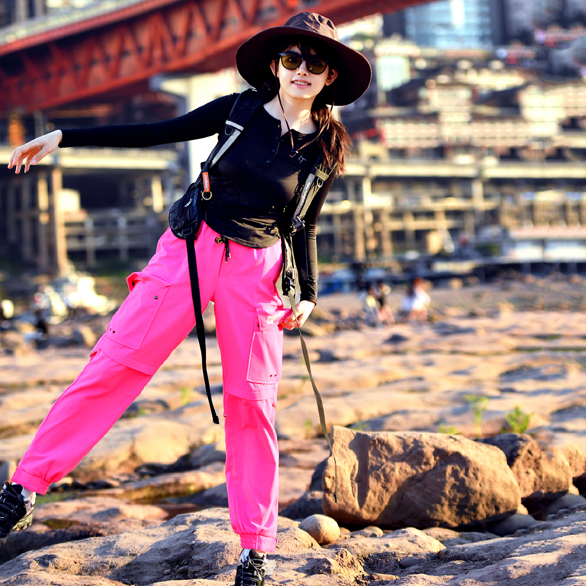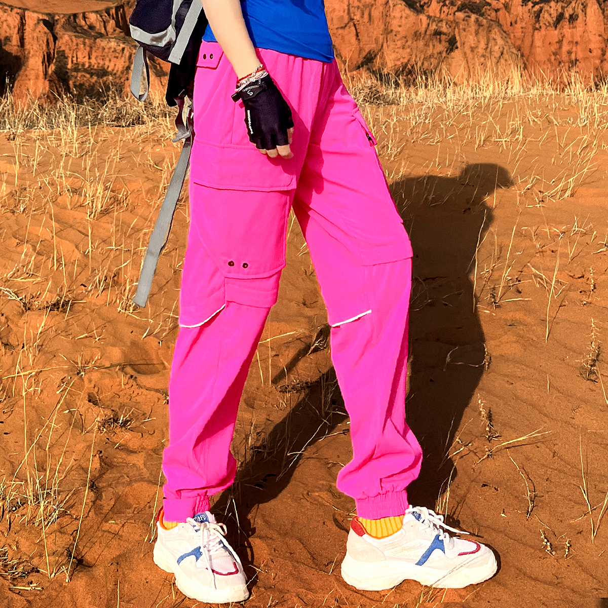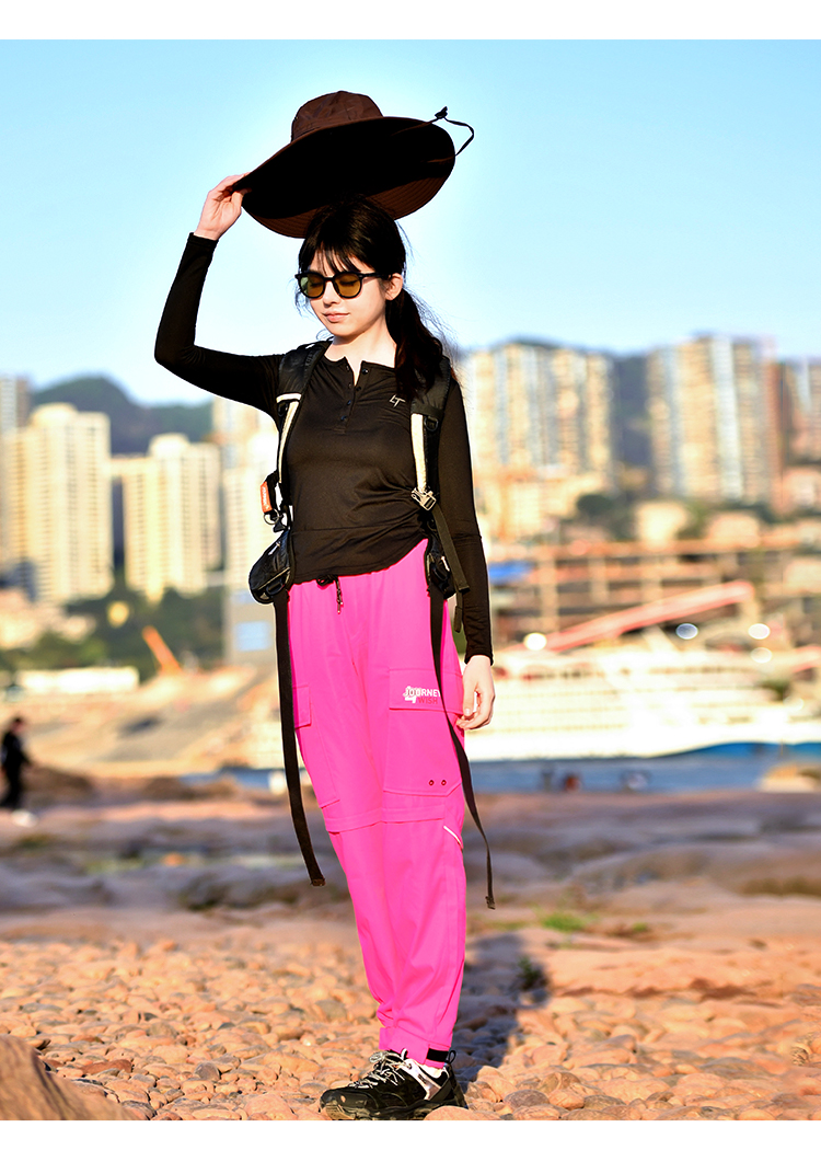 北京森林戶外潮牌休閒寬鬆顯瘦多袋束腳薄款彈力透氣速乾長褲女式