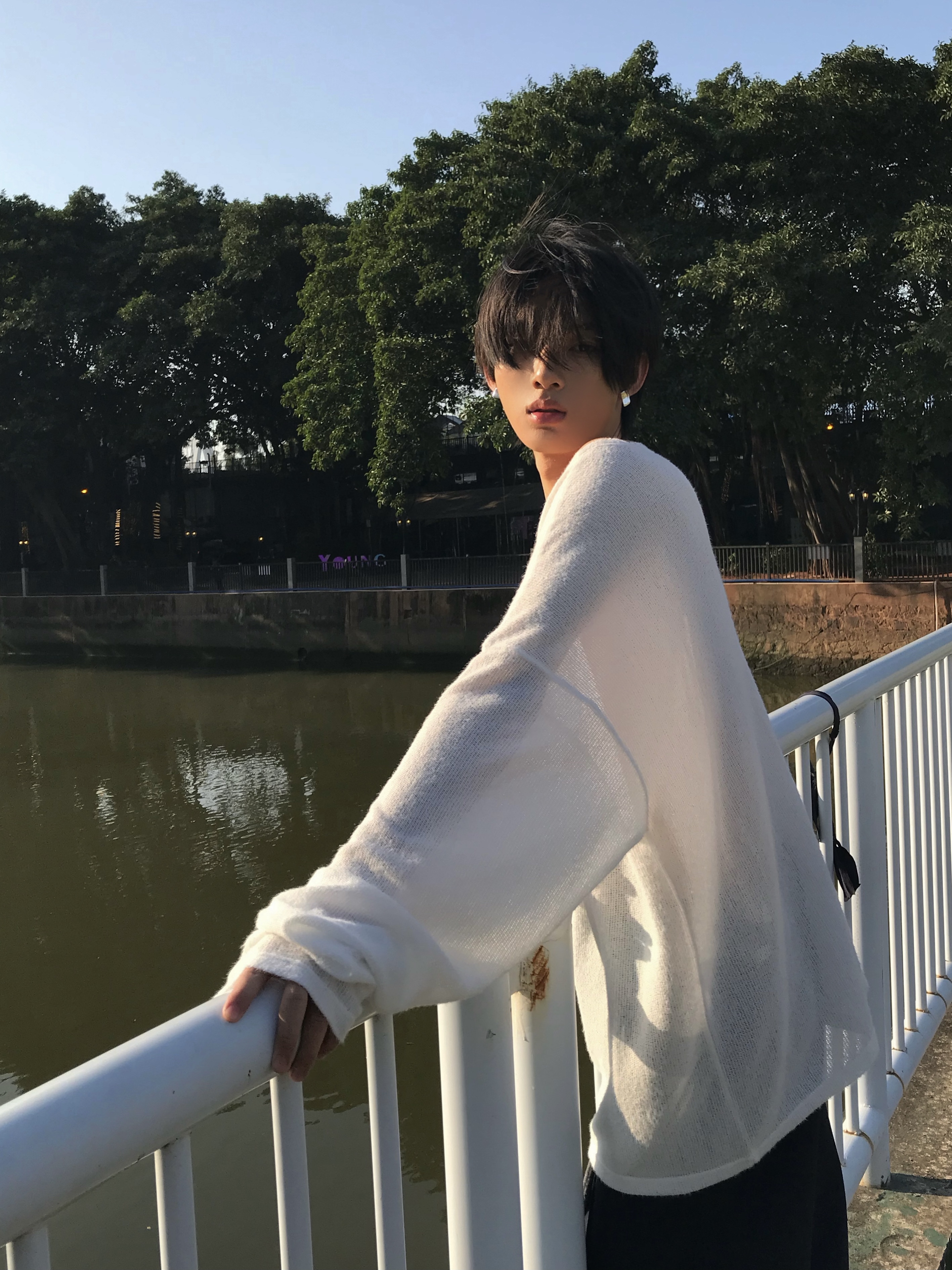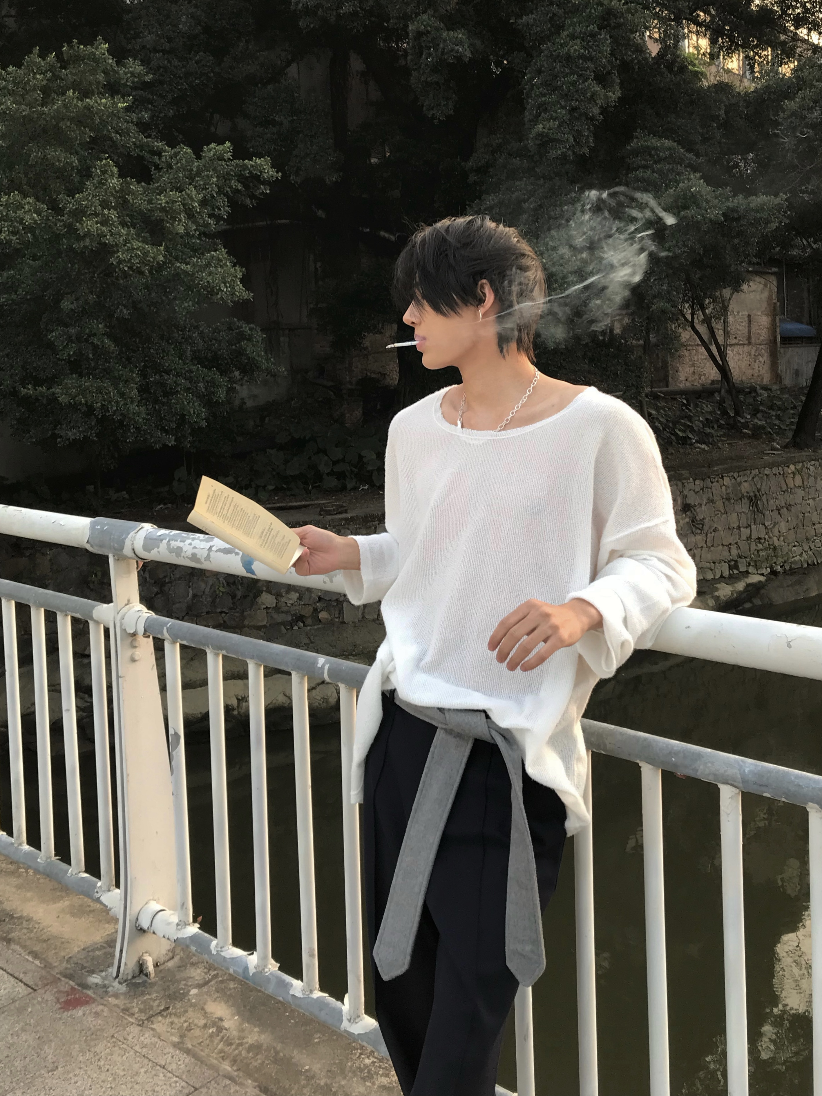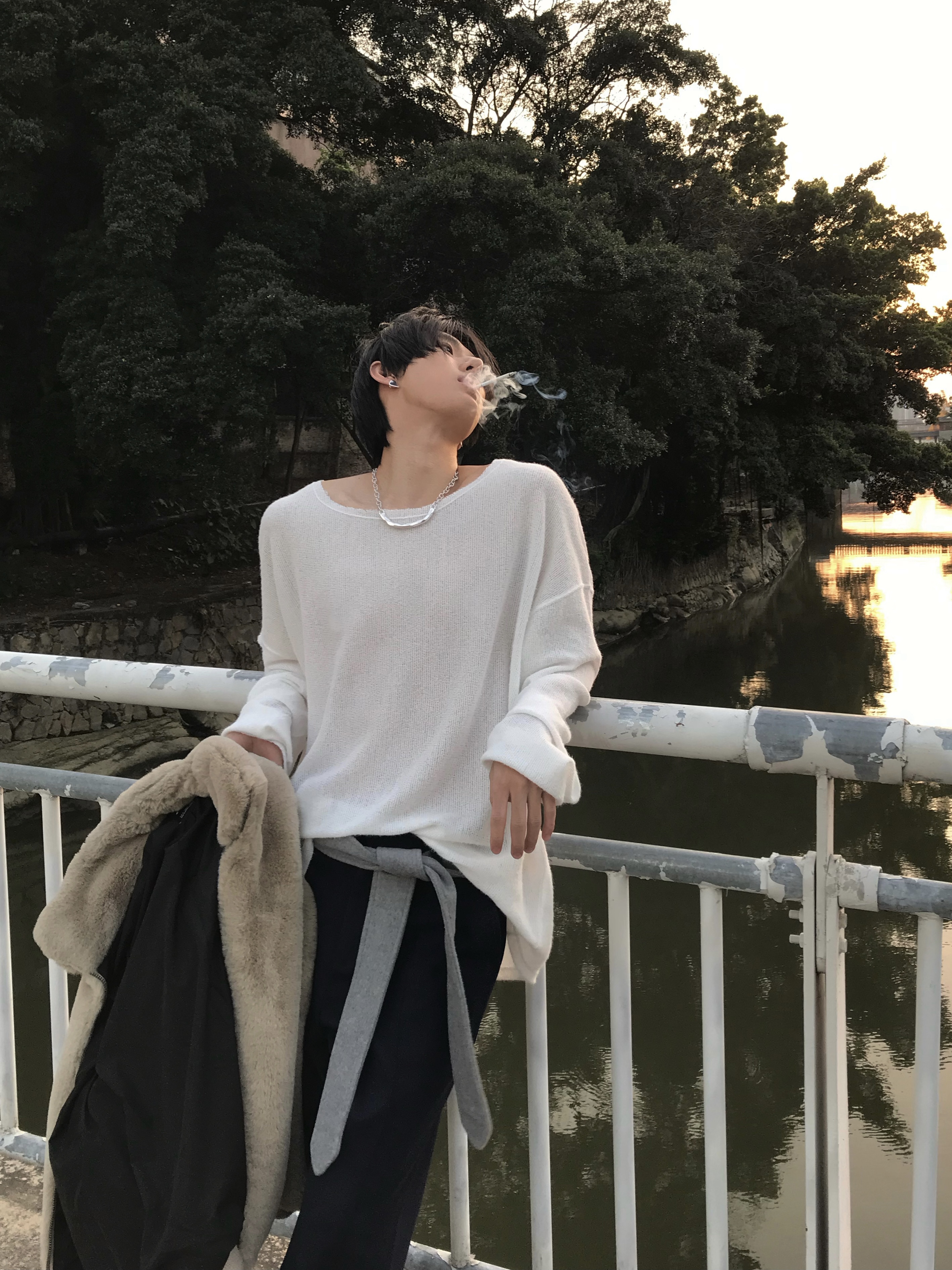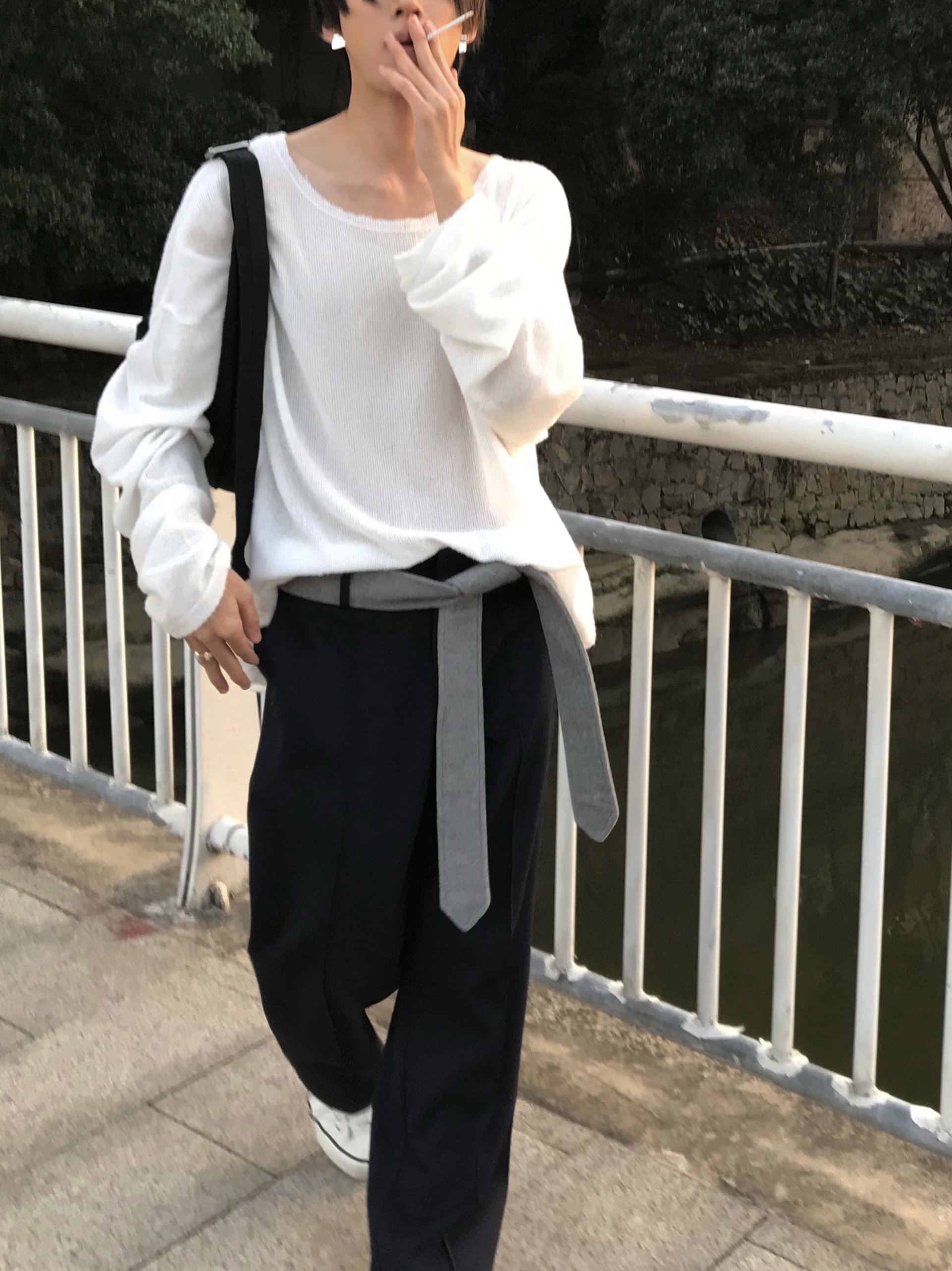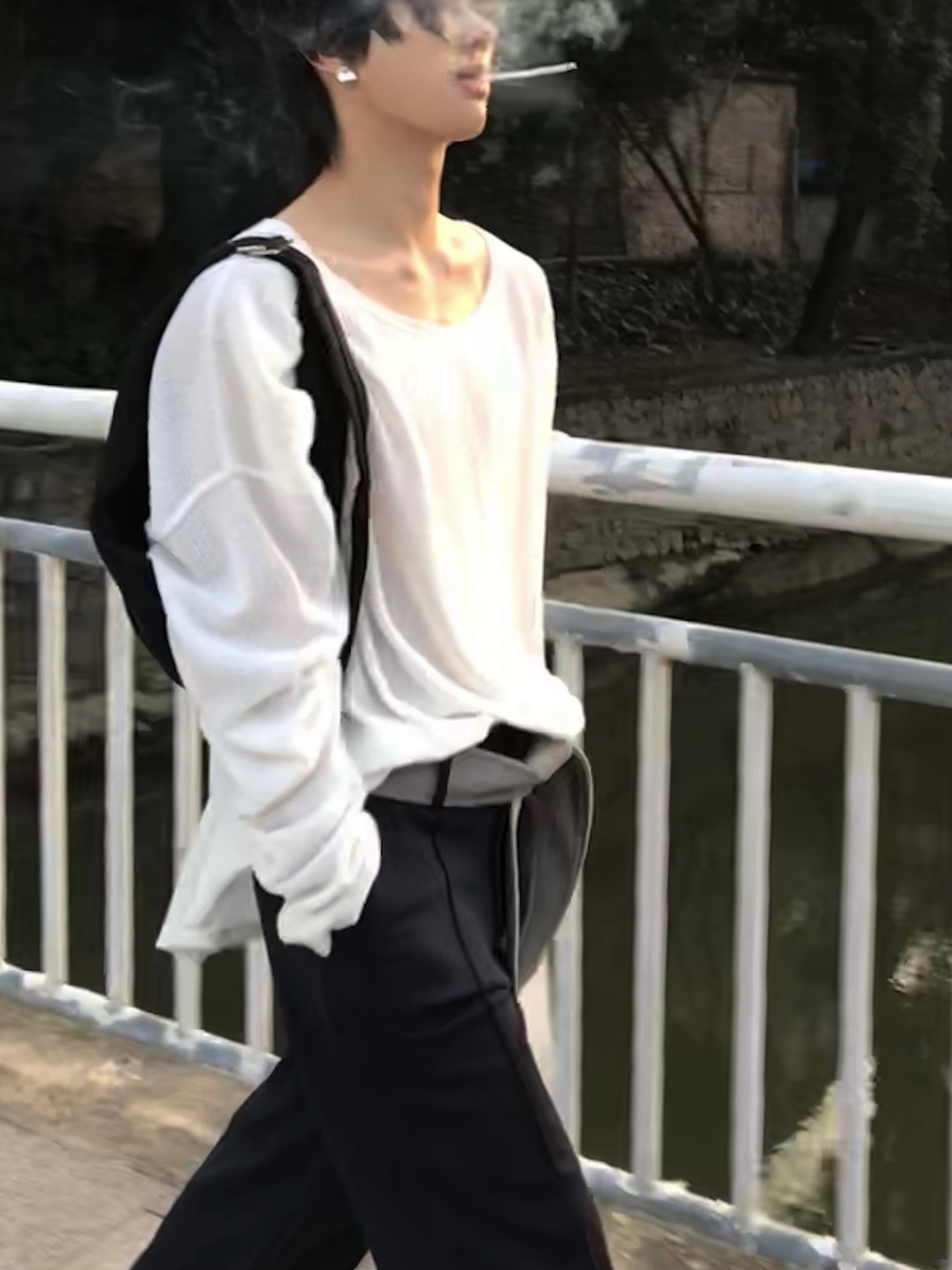 QIQUYU奇趣魚 休閒隨性不挑~ 白色長袖T恤男女情侶寬鬆打底衫上衣