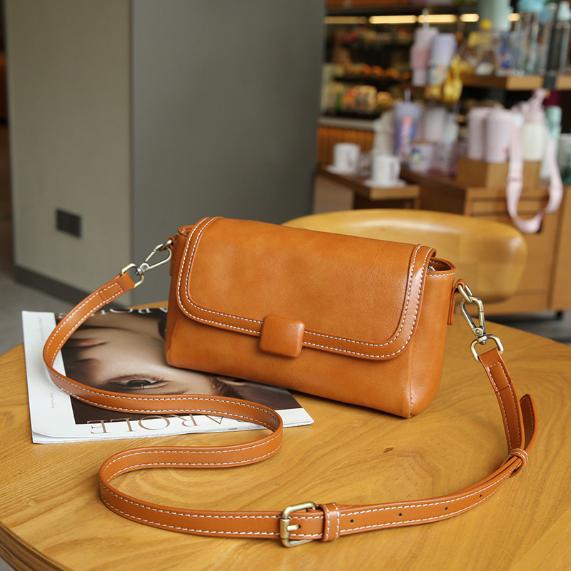 真皮头层植鞣牛皮女包2024新款时尚百搭小包包女小方包单肩斜挎包