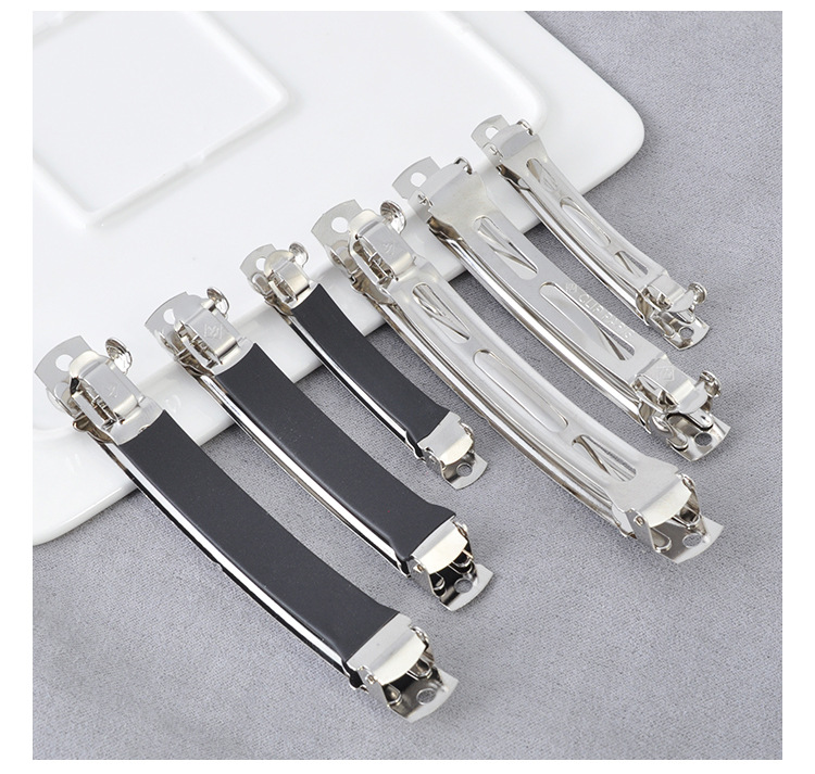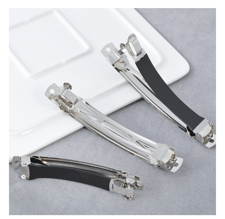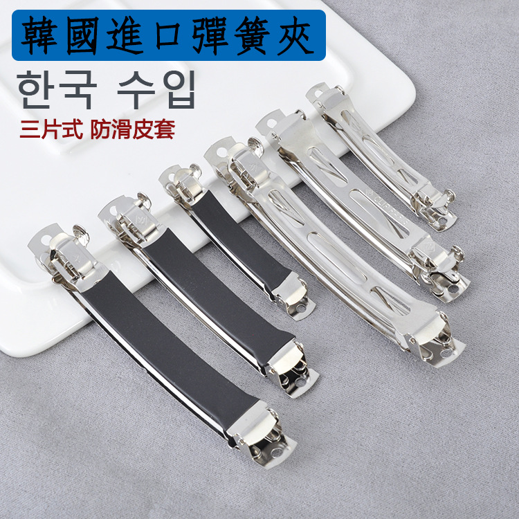 厂家直销DIY饰品配件韩版加厚三片式弹簧夹防滑皮套发夹钢夹