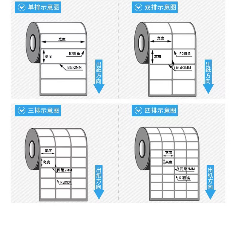 标签间距:3mm  带撕裂线  圆角半径:R2  纸管管芯现货是40mm