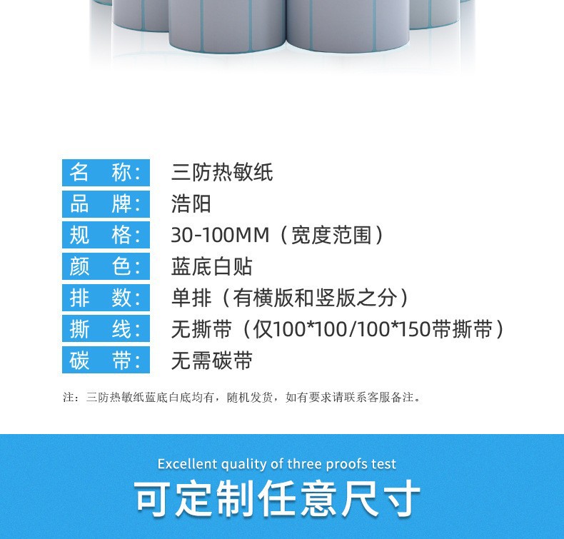 尺寸 优质三防100*100*500张 单排 带撕裂线