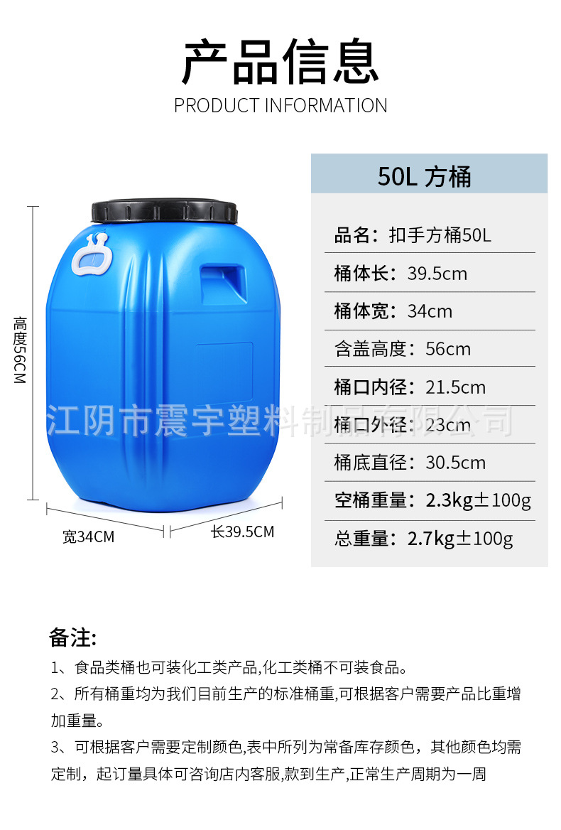 50L升加厚塑料桶带盖储水桶食品级塑料水桶厂家大口方桶化工桶