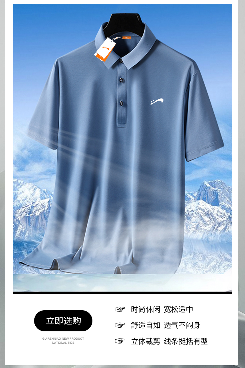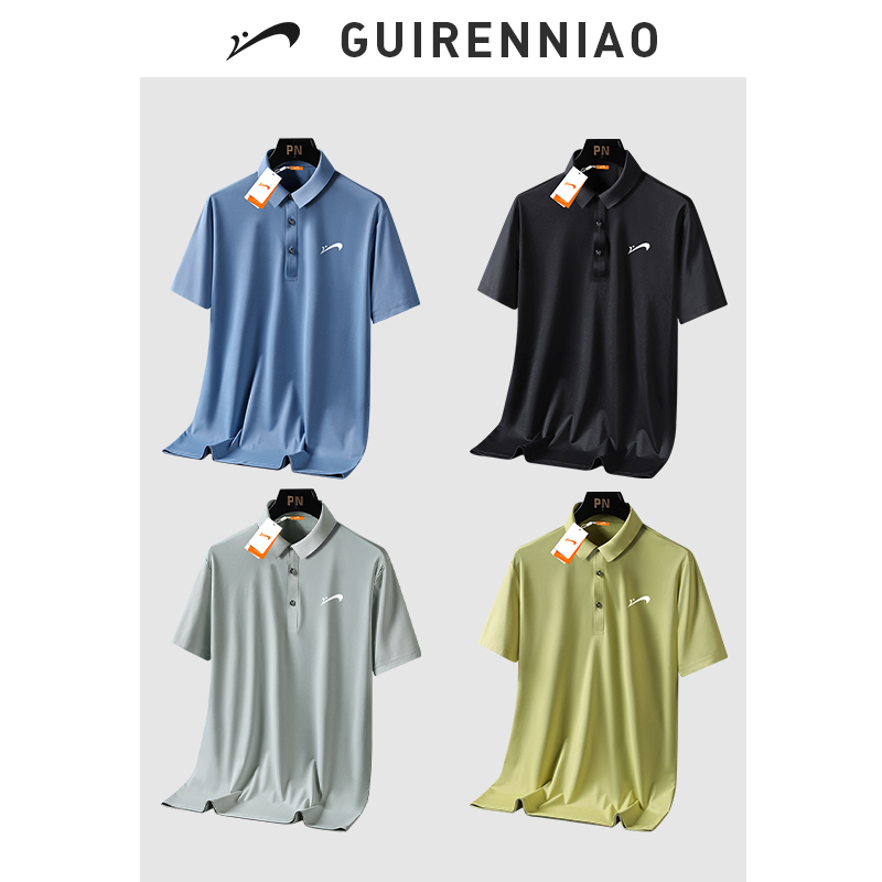 貴人鳥爸爸polo衫男士冰絲短袖t恤夏季新款中年爸爸裝夏裝速乾衣