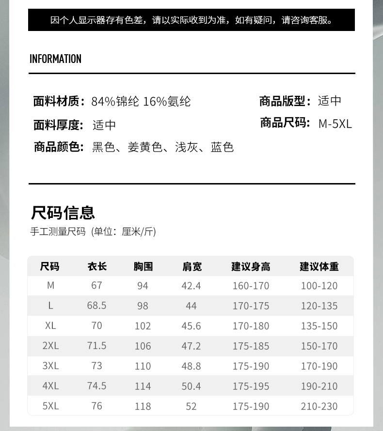 尺碼 M L XL 2XL 3XL 4XL 5XL