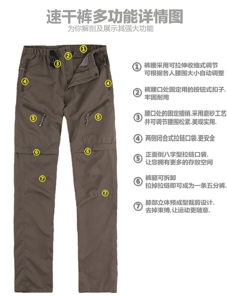 户外速干裤男女夏季快干长裤子薄款两截可拆卸短裤防泼水透气大码