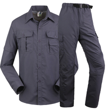 户外速干衣裤套装男薄款衬衣长袖快干裤可拆卸工作休闲服防水透气