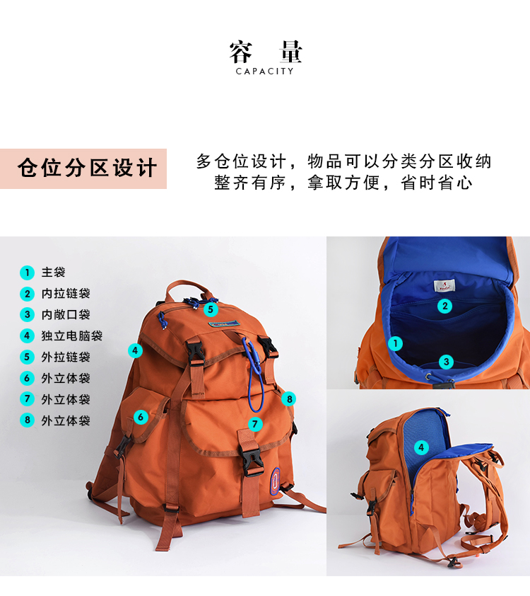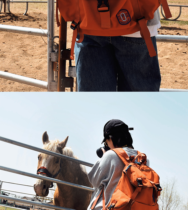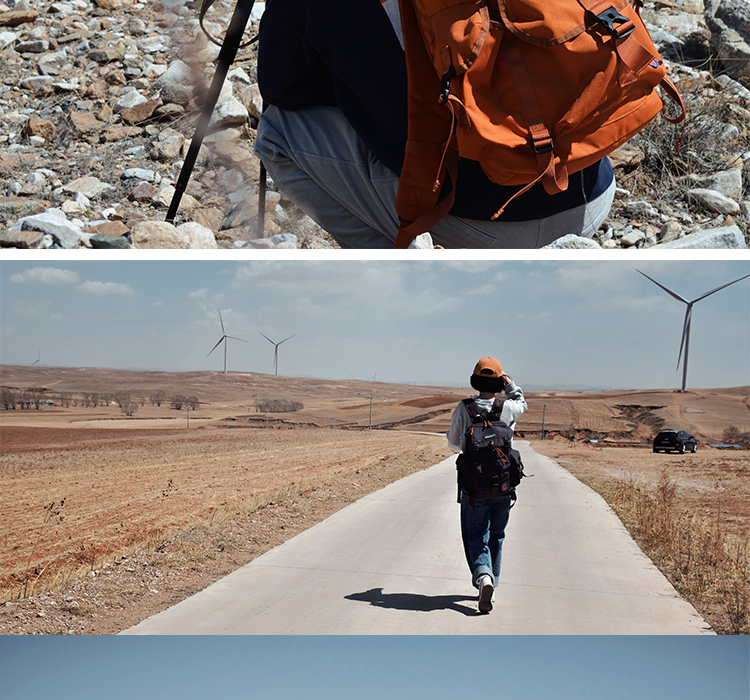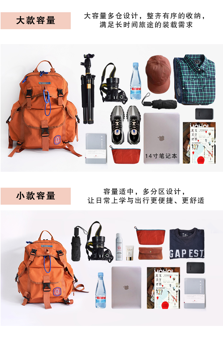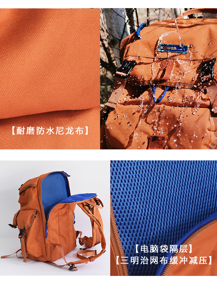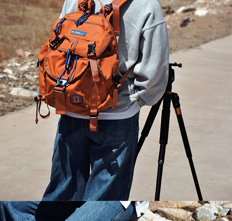 口嘎原創小眾設計大款翻蓋登山包 中性防水青年旅行徒步雙肩書包