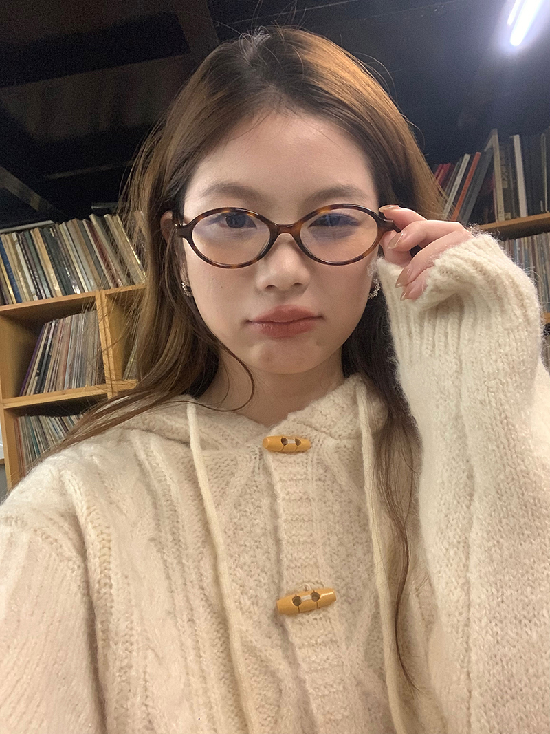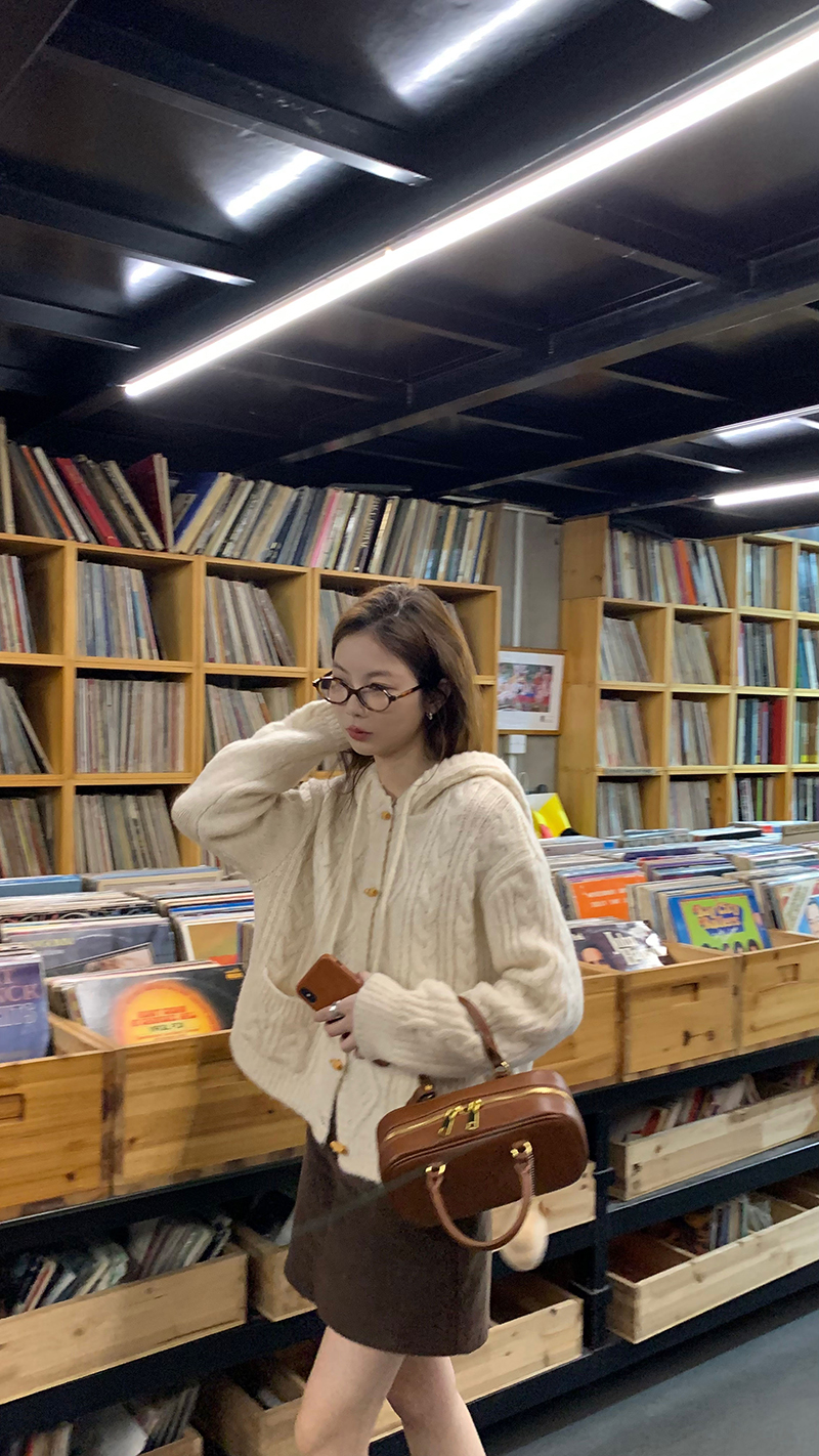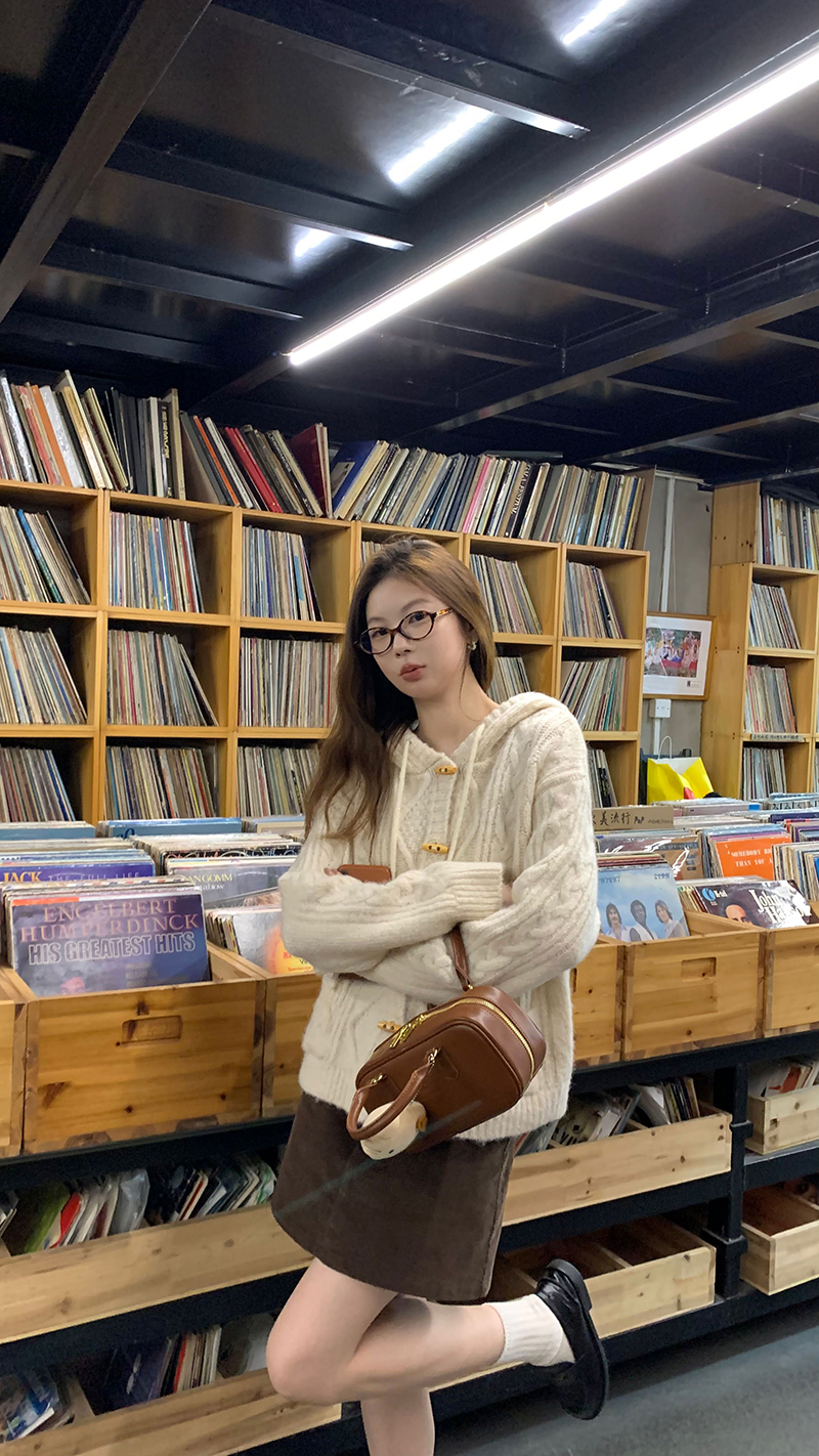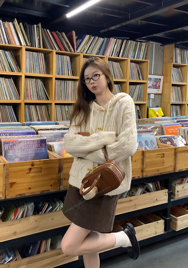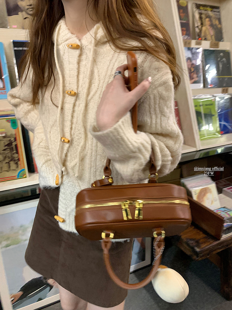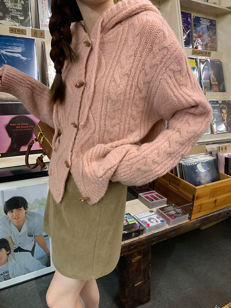 im向 焦糖雪芙 蓬鬆毛感牛角扣麻花毛衣女秋冬連帽抽繩針織外套