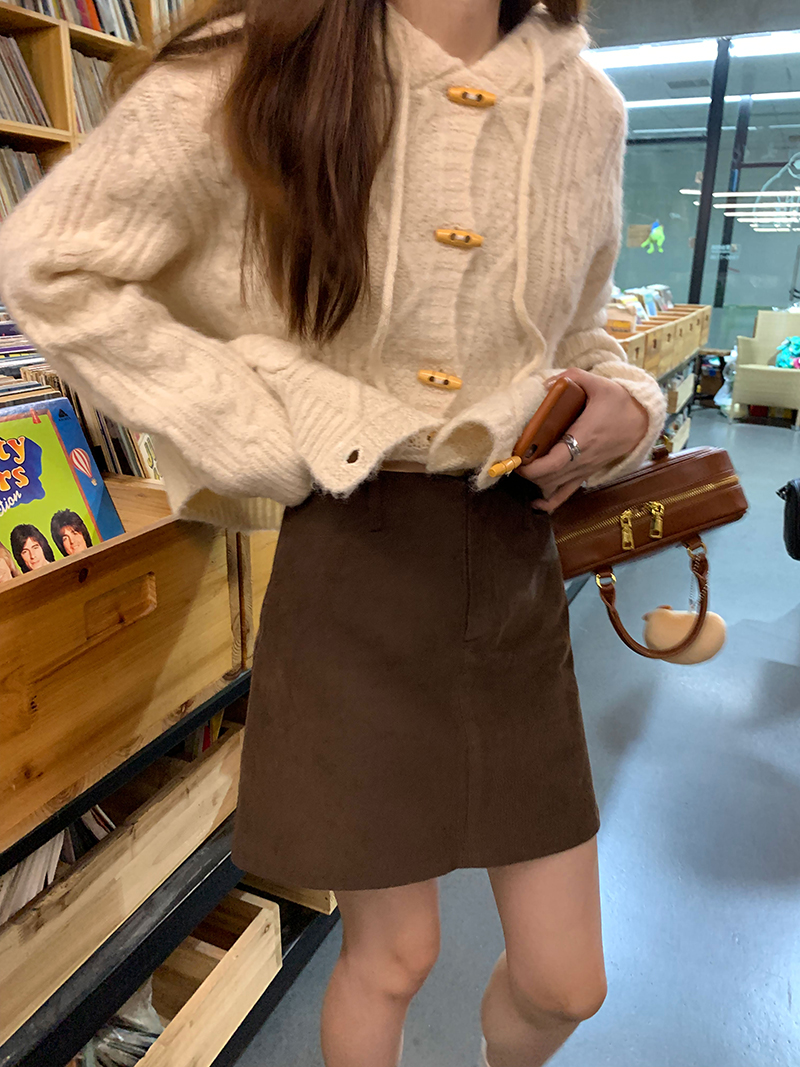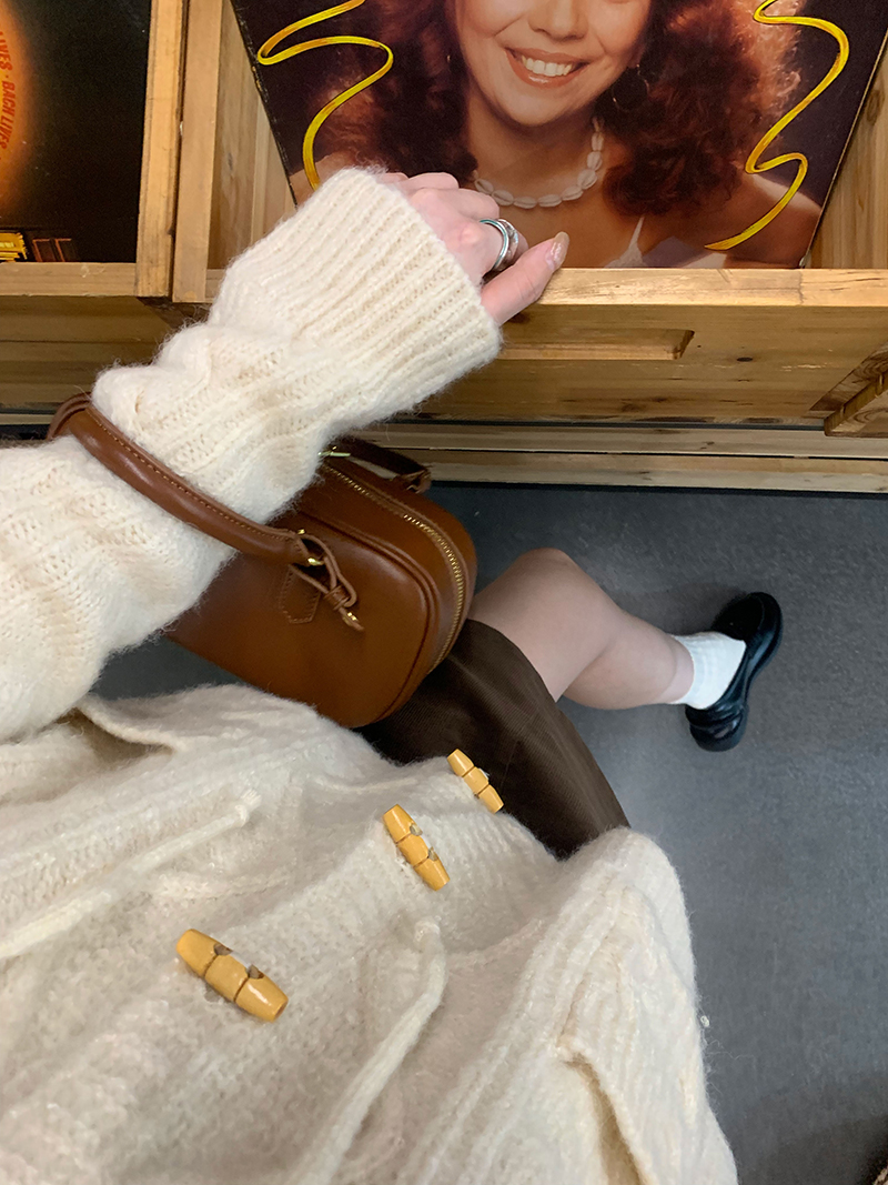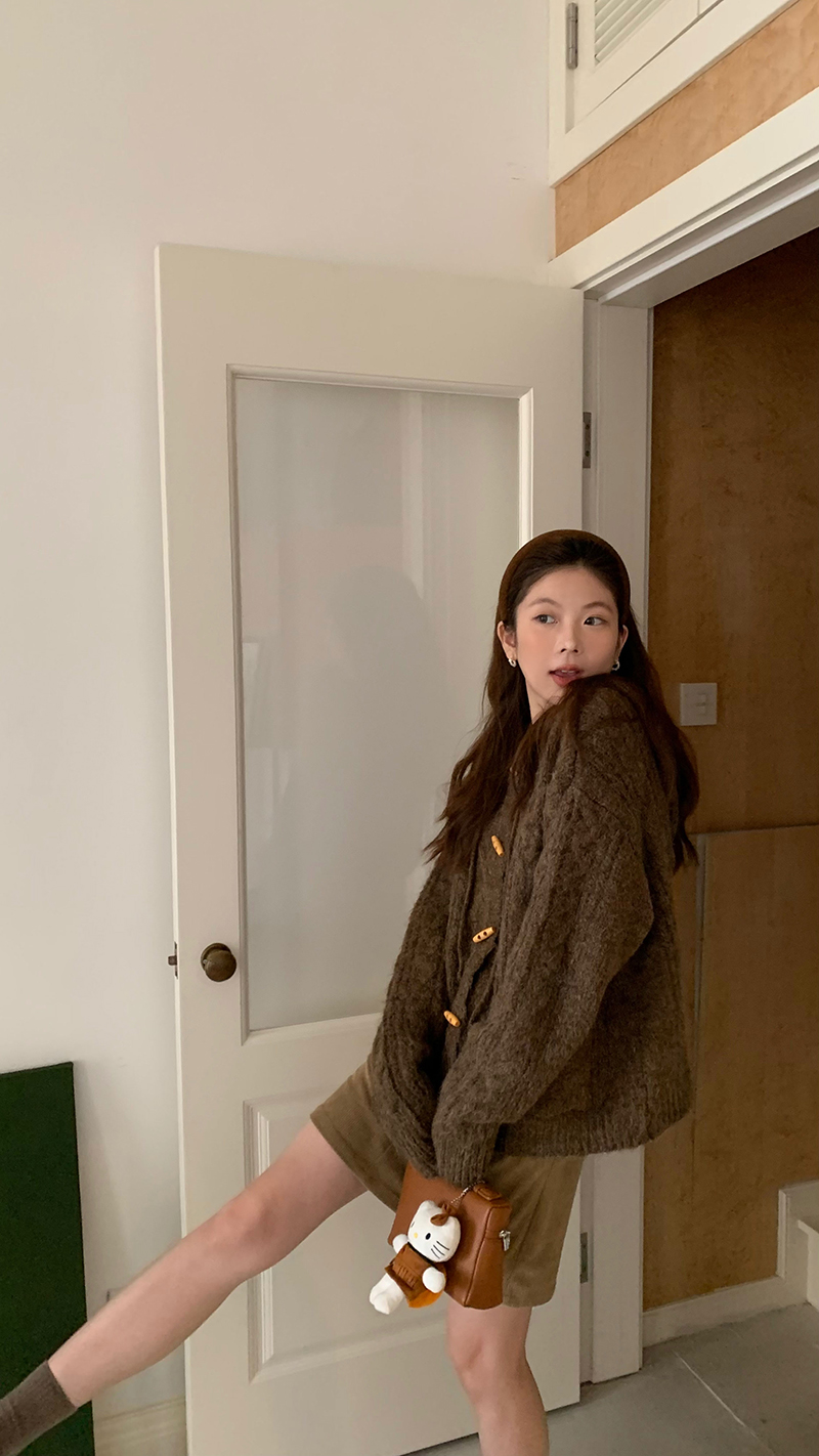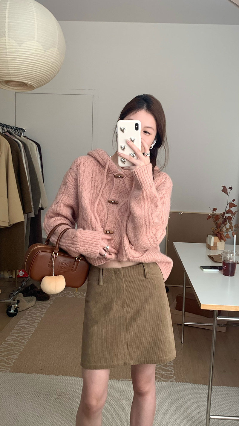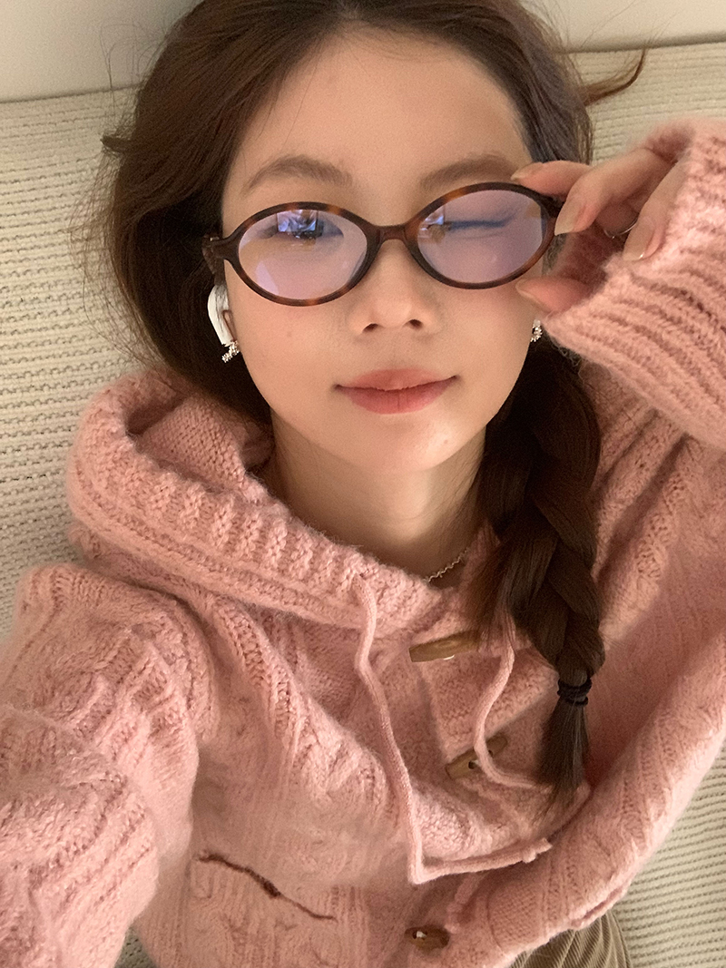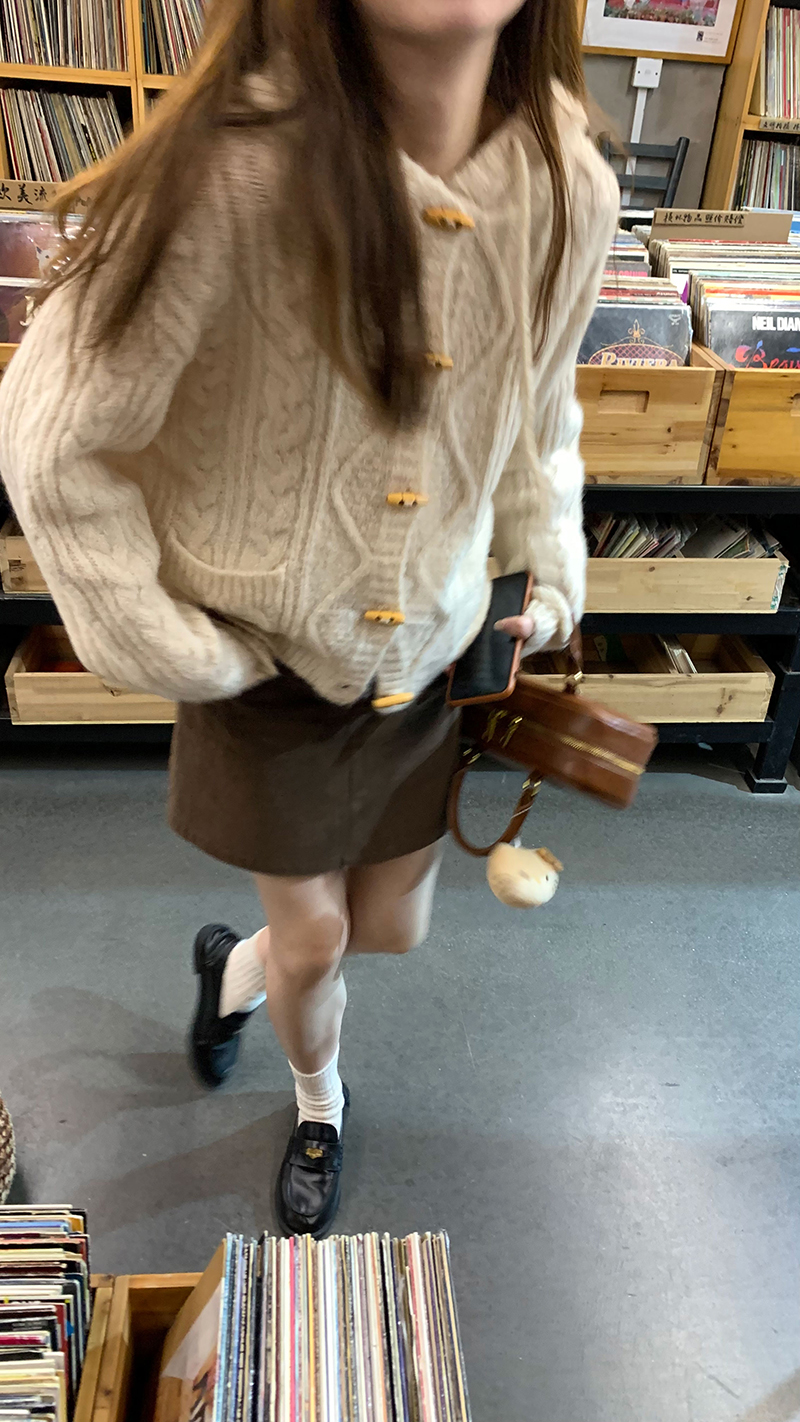 im向 焦糖雪芙 蓬鬆毛感牛角扣麻花毛衣女秋冬連帽抽繩針織外套