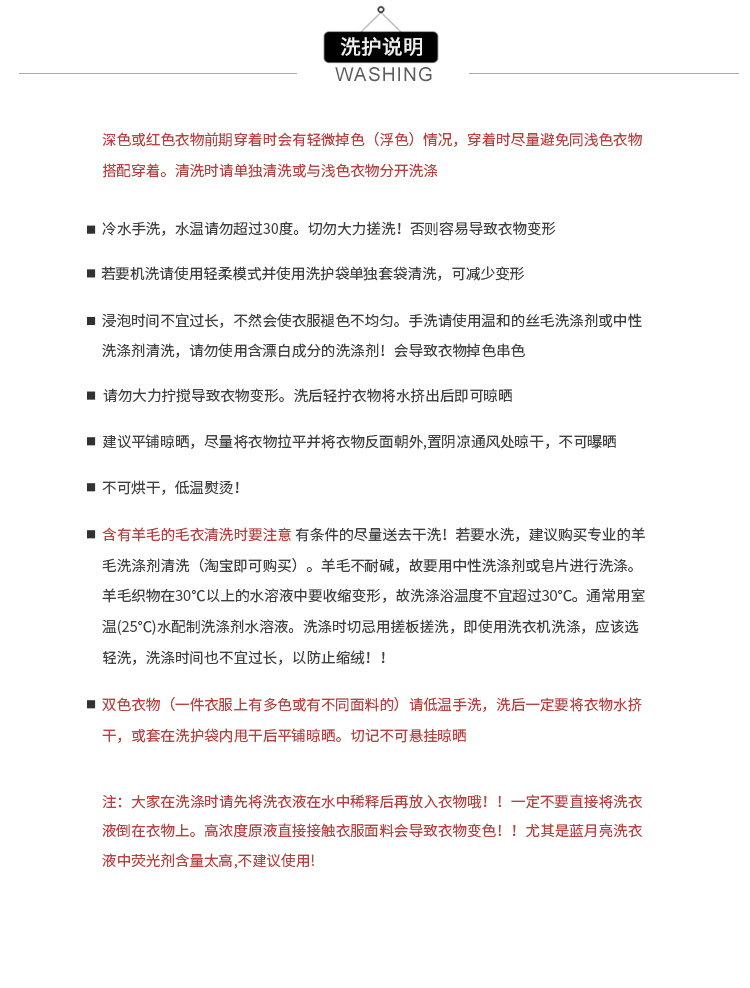 2.尺寸:衣服尺码均为手工测量,误差在2-3cm属于正常范围