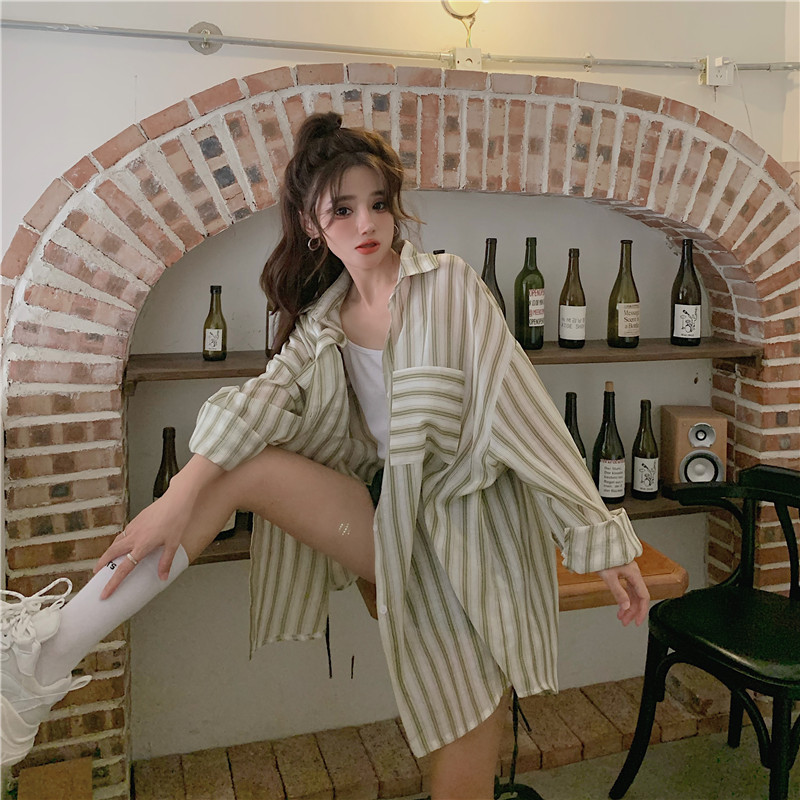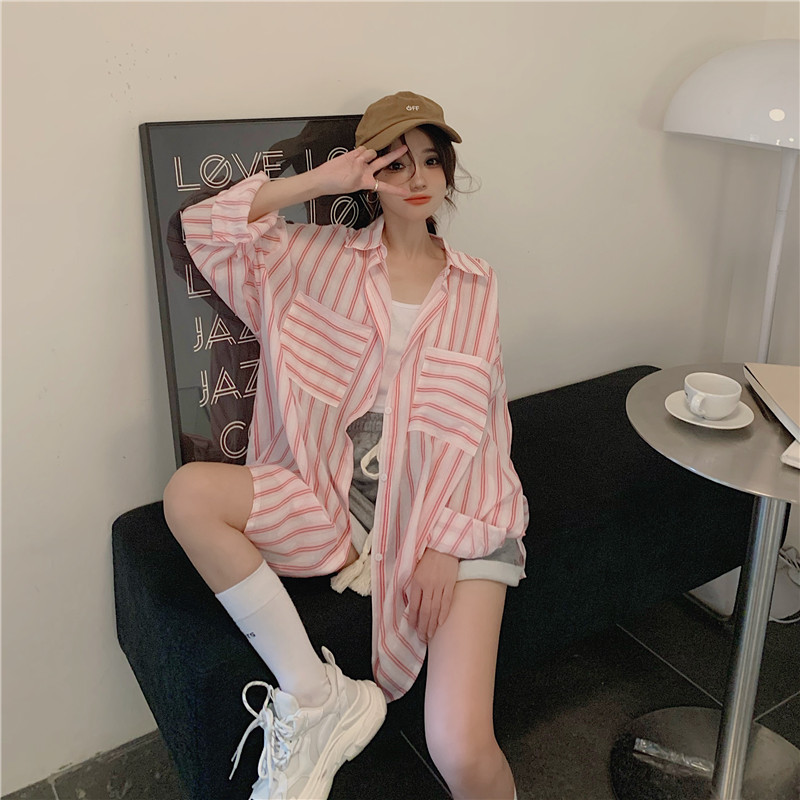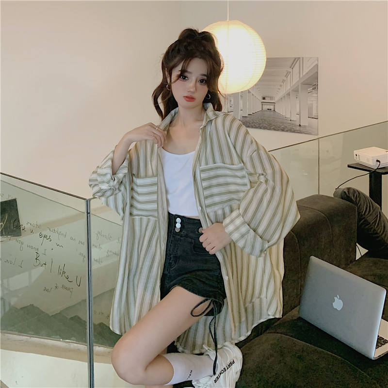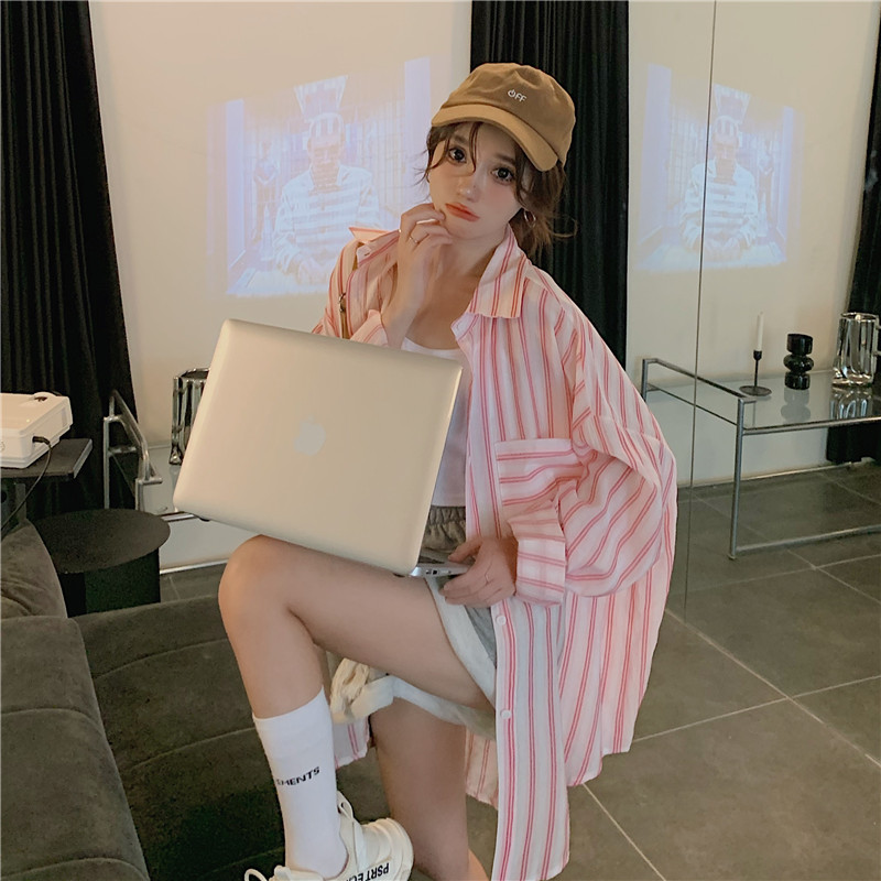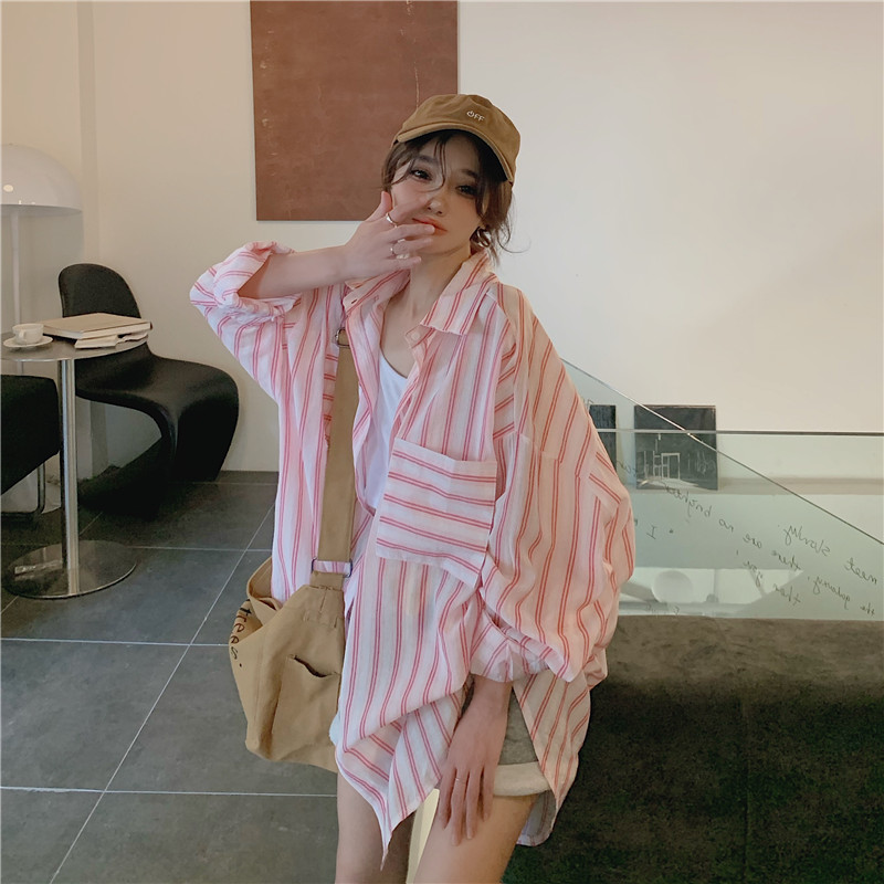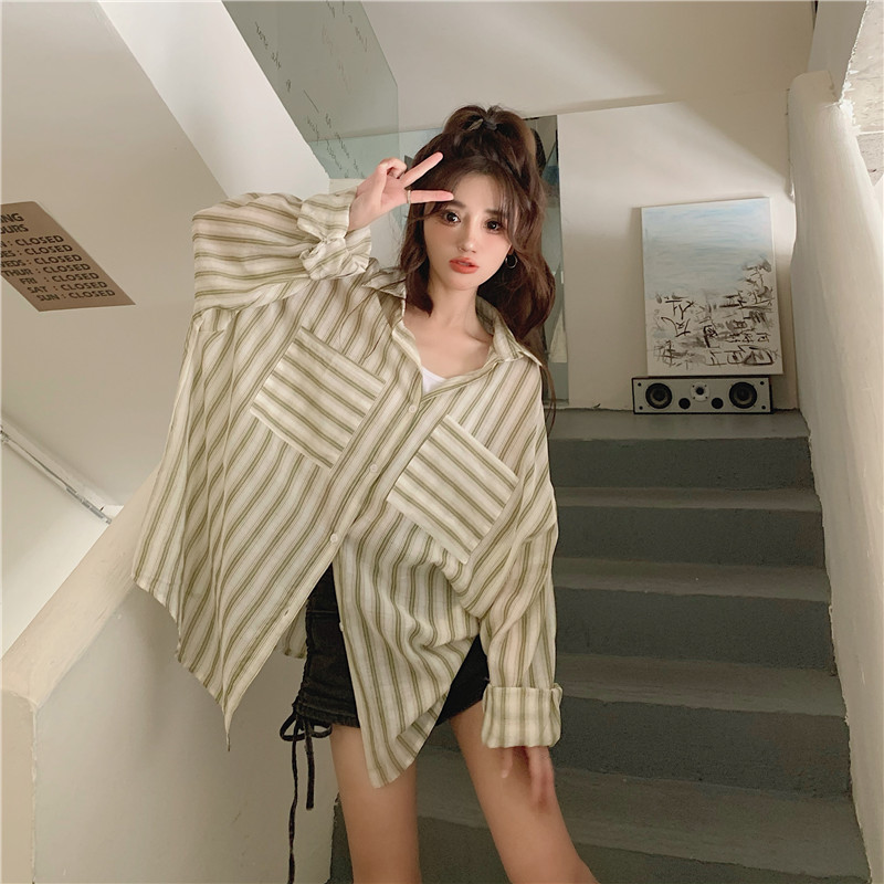 200斤胖妹妹夏季ins條紋中長版薄款襯衫加肥加大碼學生防曬襯衫女