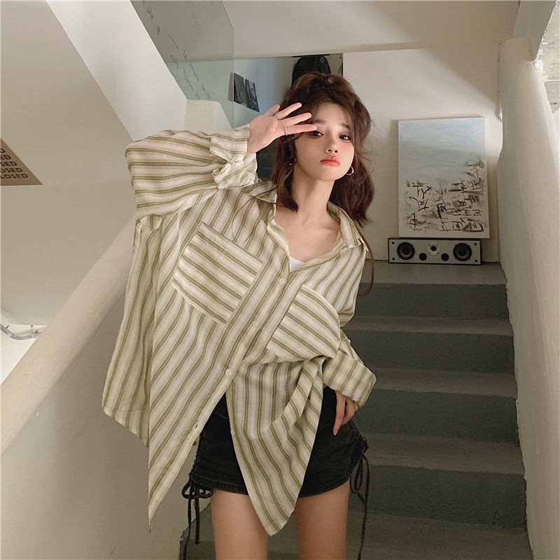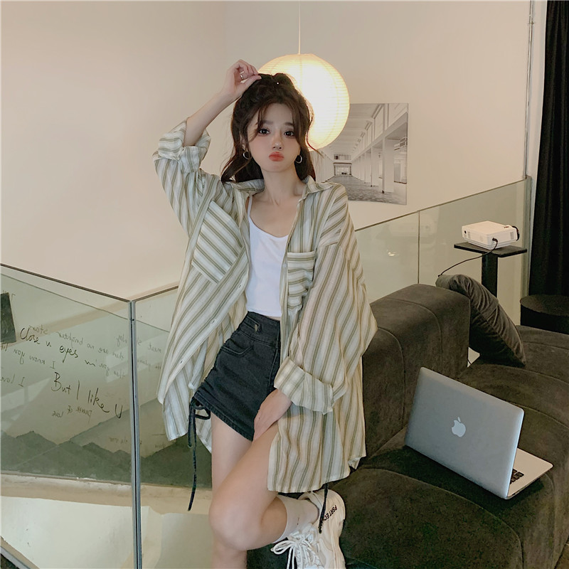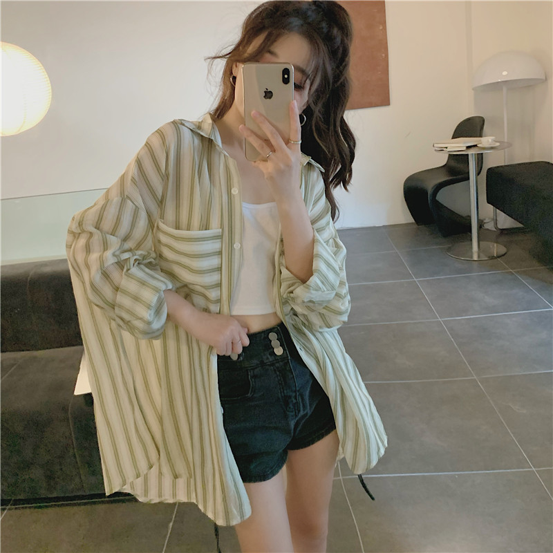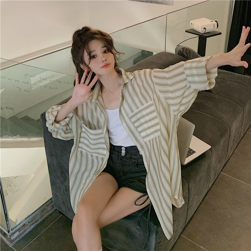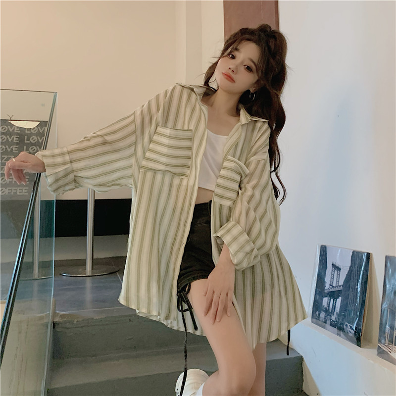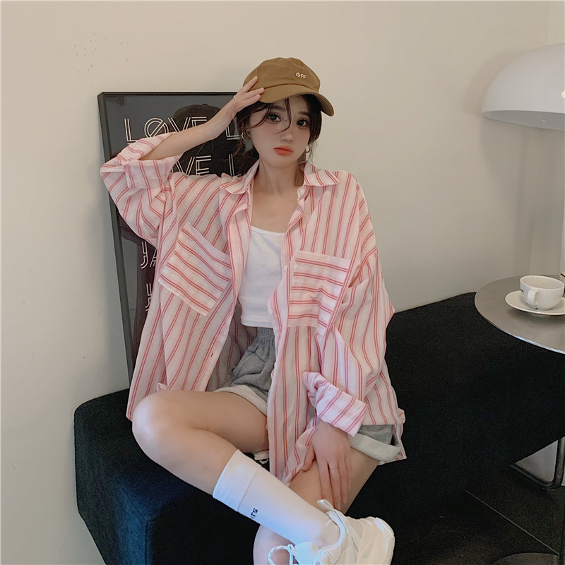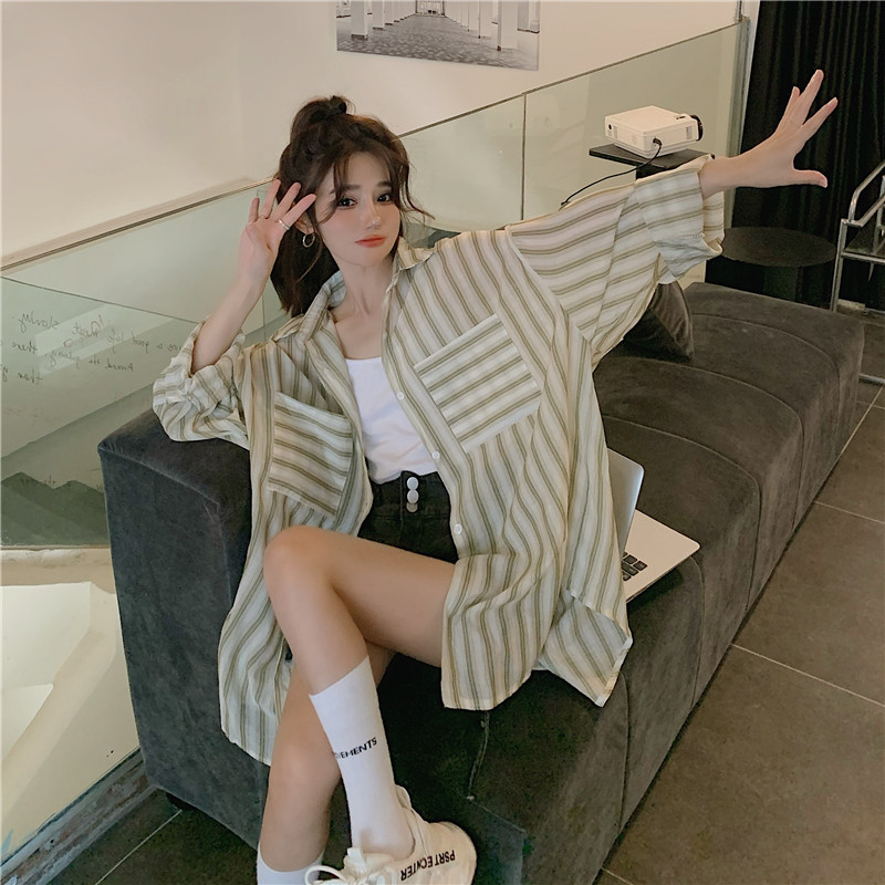 200斤胖妹妹夏季ins條紋中長版薄款襯衫加肥加大碼學生防曬襯衫女