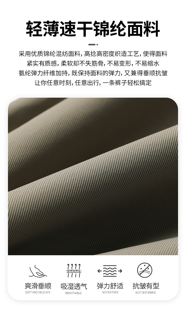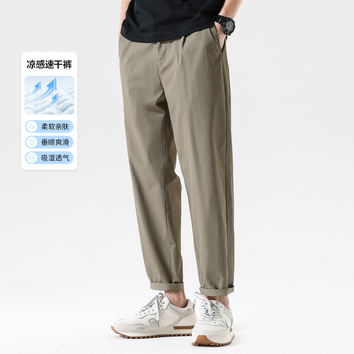布衣傳說 冷感速乾輕鬆褲 夏季抗皺薄款褲子男款寬鬆直筒休閒長褲