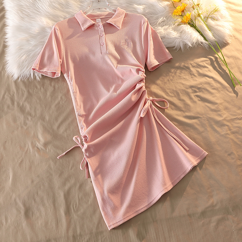 夏季polo領短袖洋裝女小個子甜辣妹純欲修身氣質顯瘦包臀短裙子