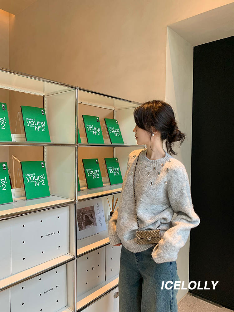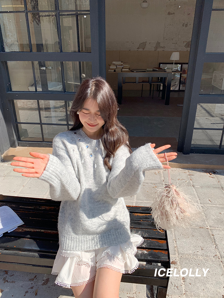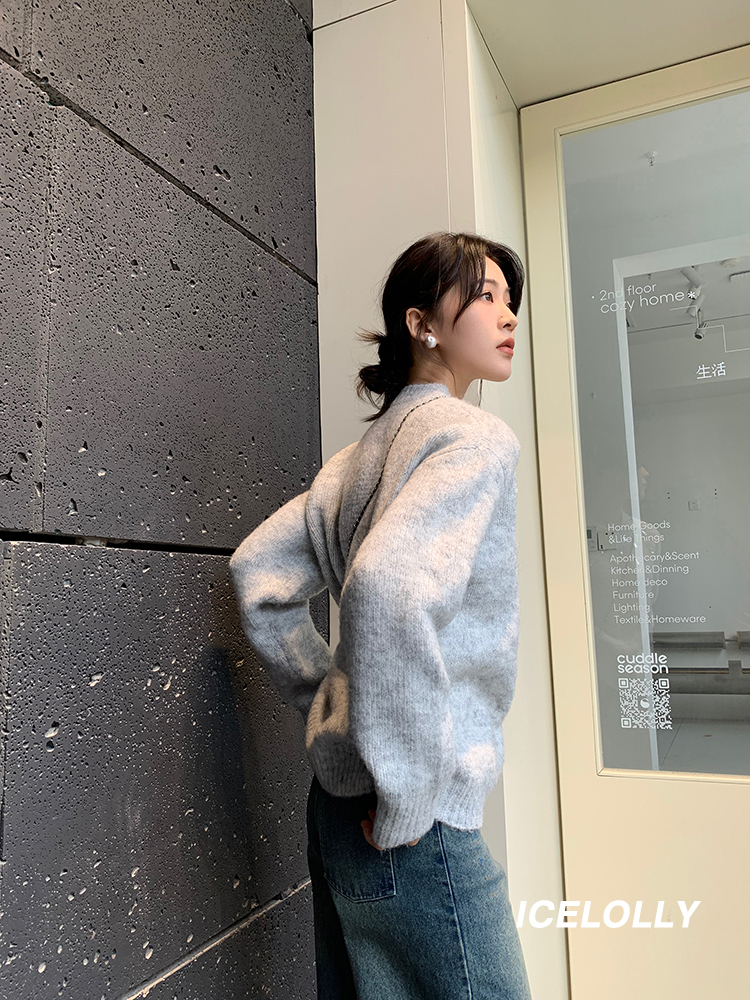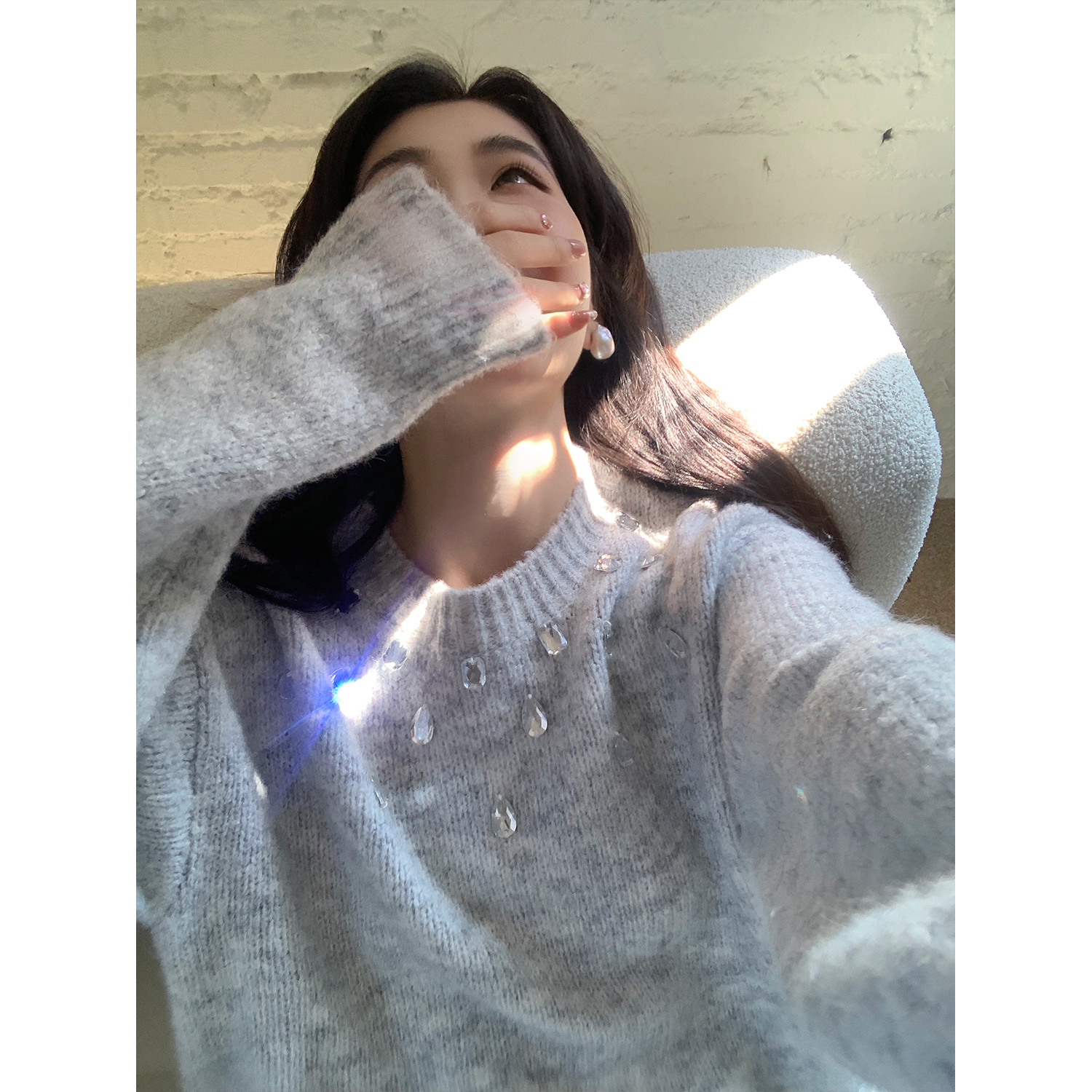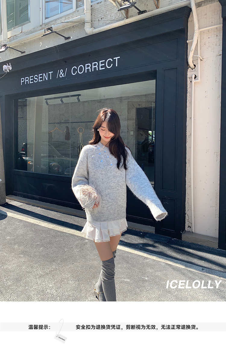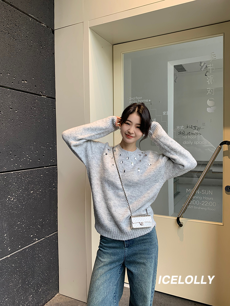 ICELOLLY慵懶風寬鬆短款粉色毛衣女秋冬款小個子洋派減齡氣質上衣