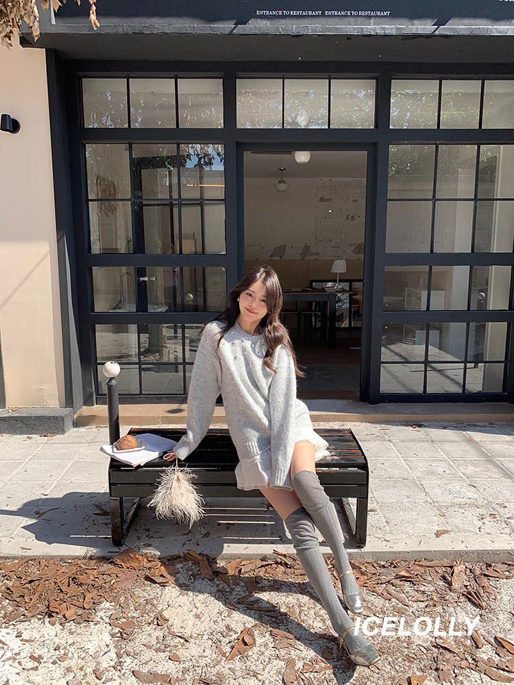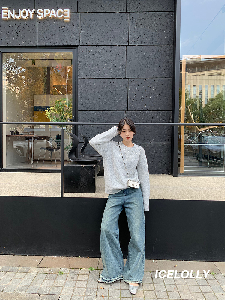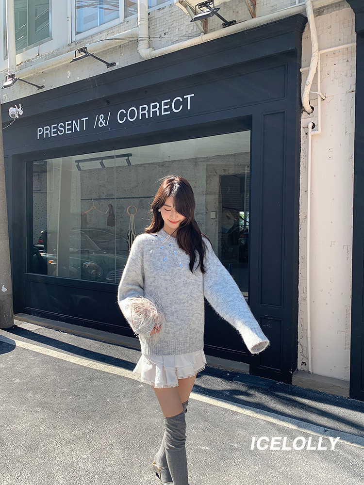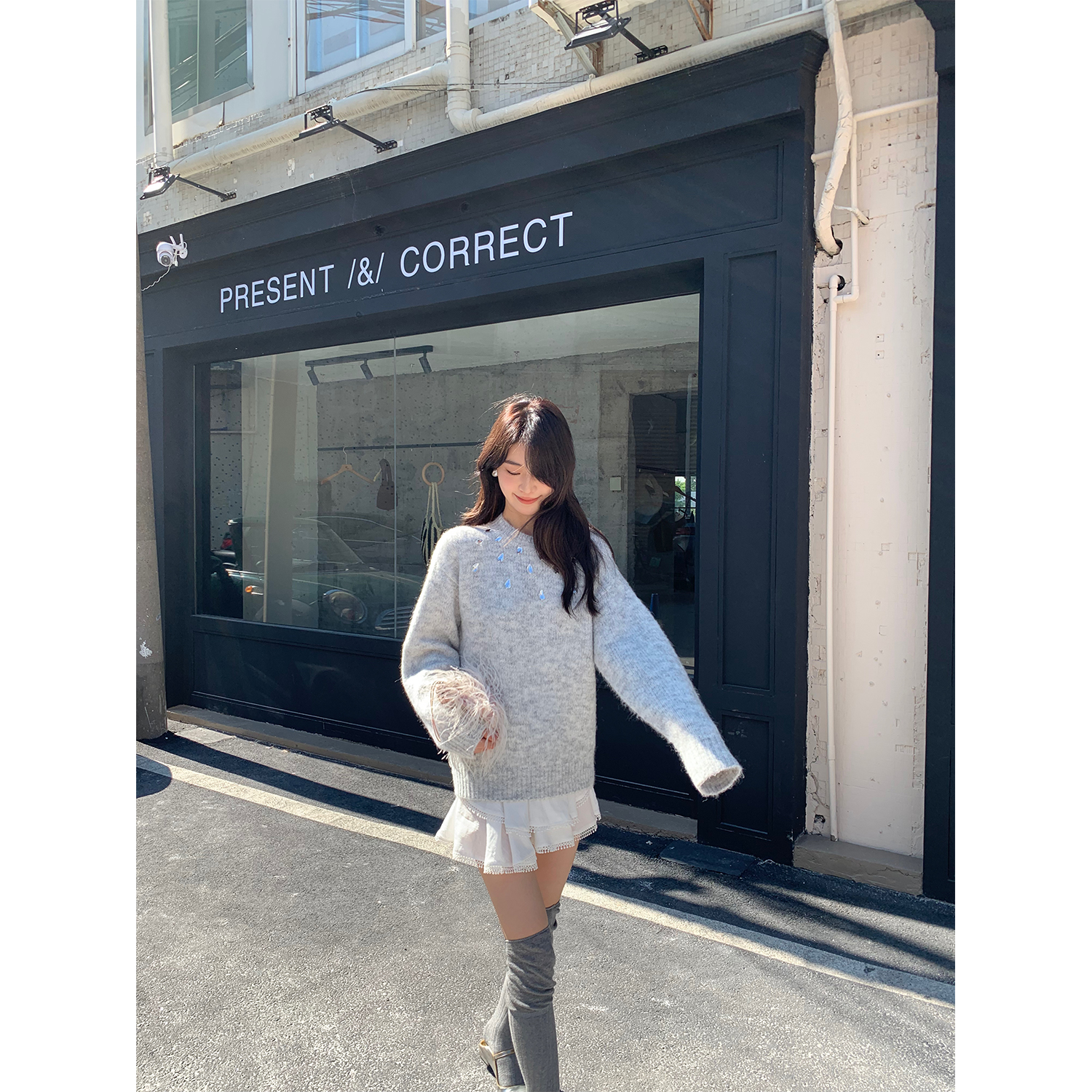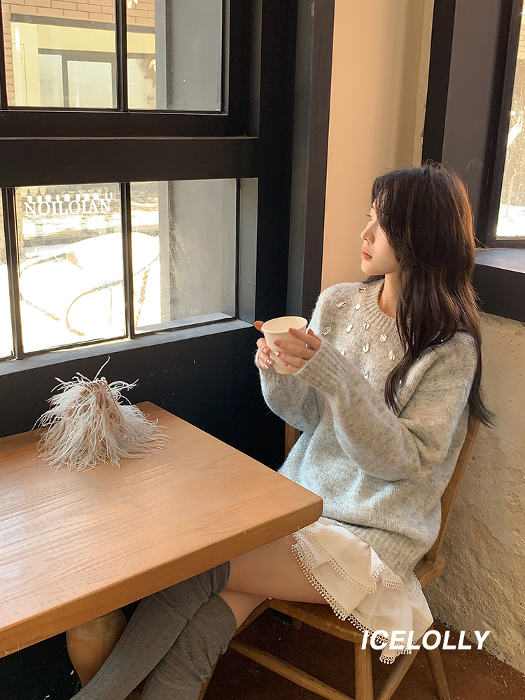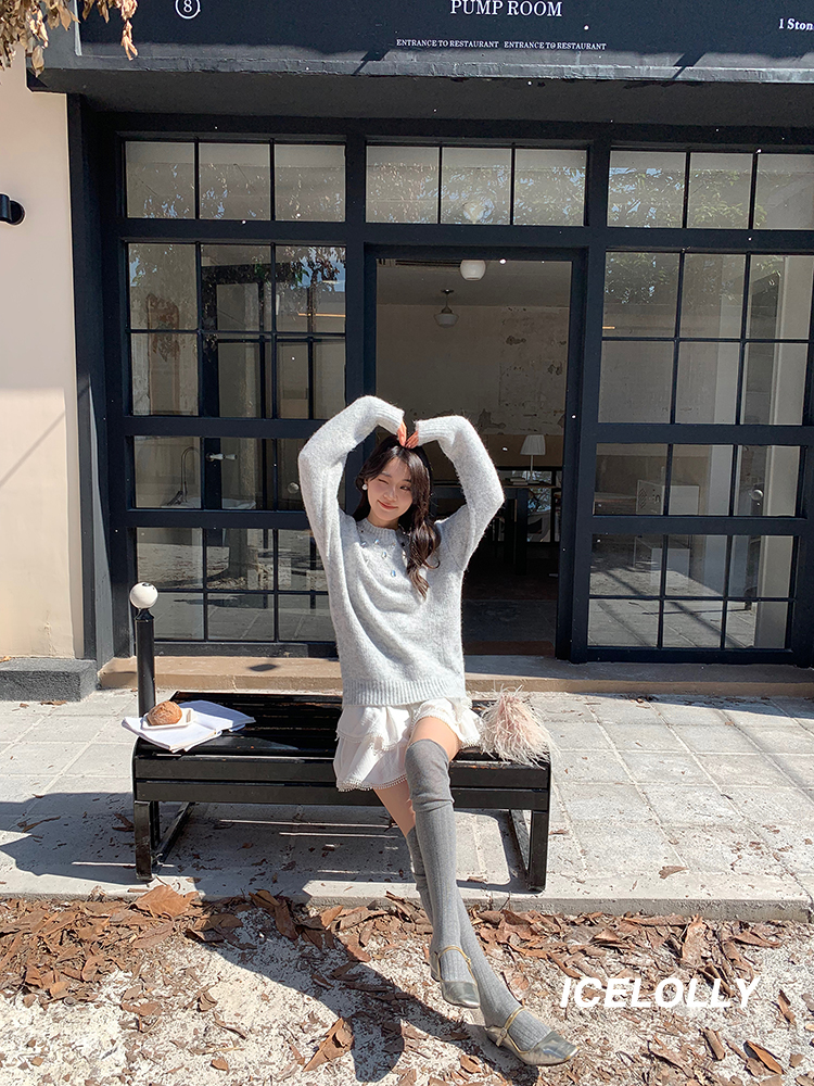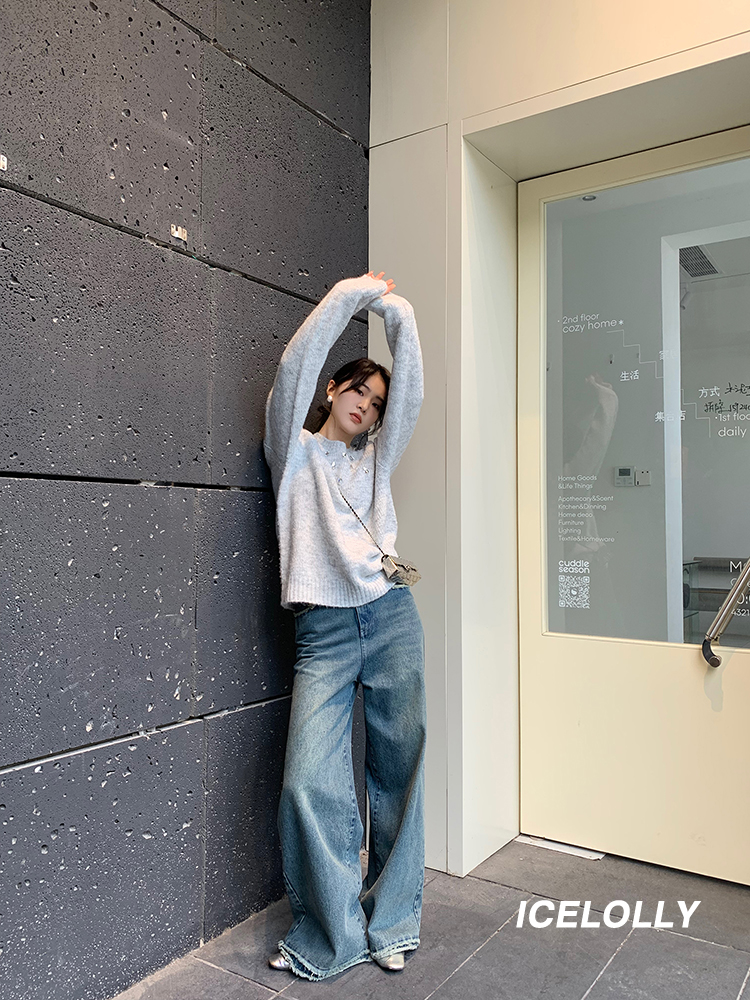 ICELOLLY慵懶風寬鬆短款粉色毛衣女秋冬款小個子洋派減齡氣質上衣