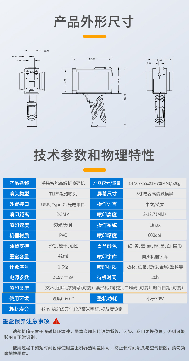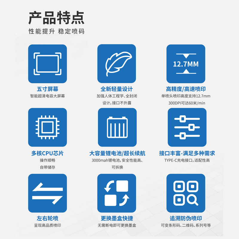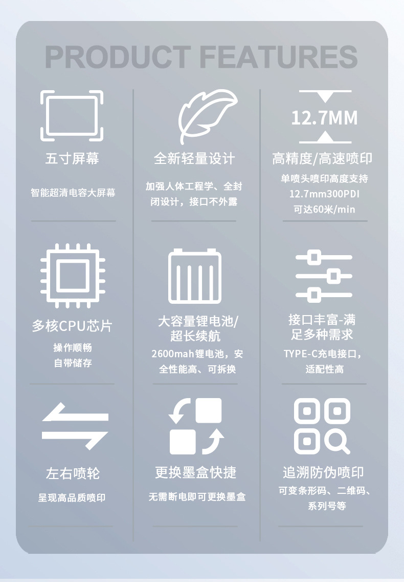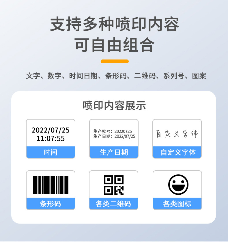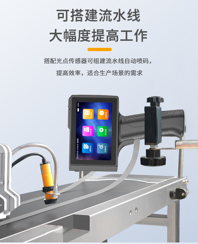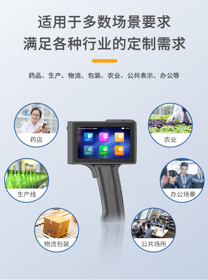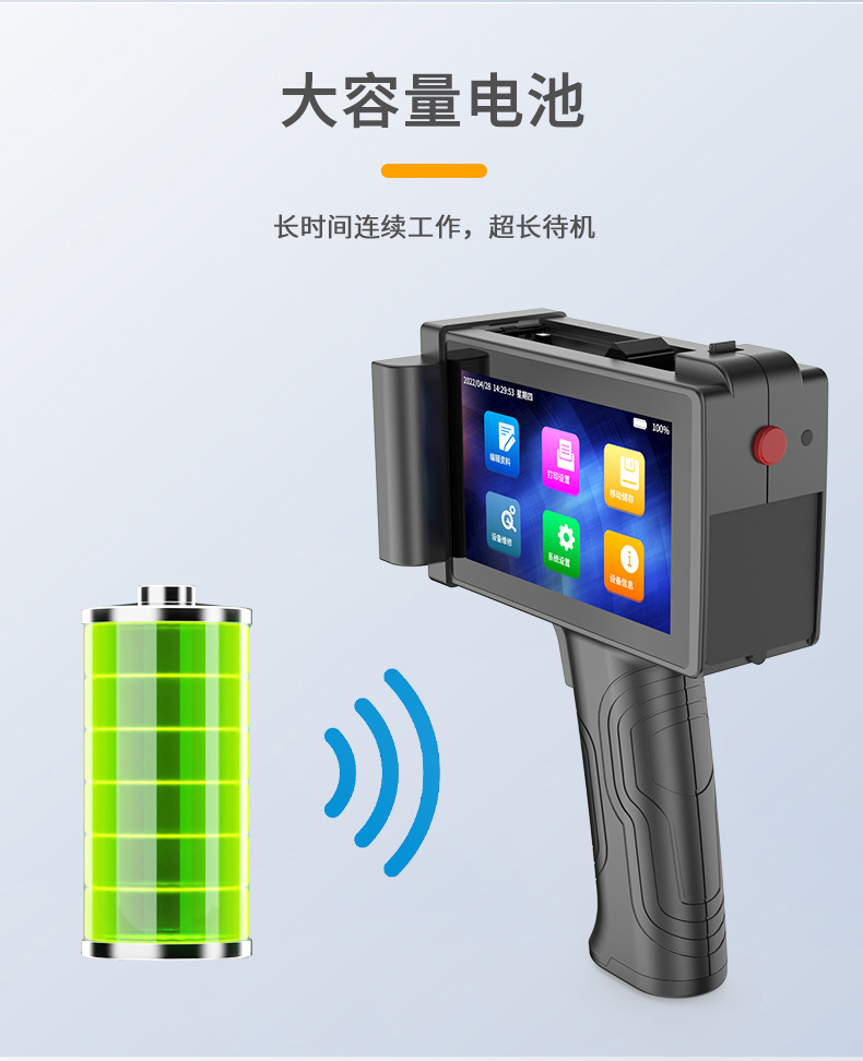 智印12.7MM智能手持喷码机IP100食品包装图片条形码二维码打码机