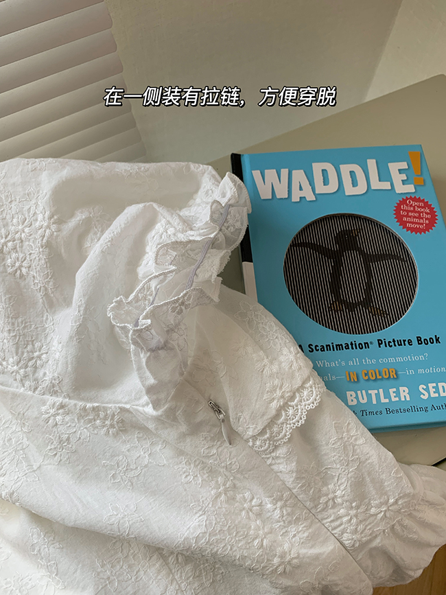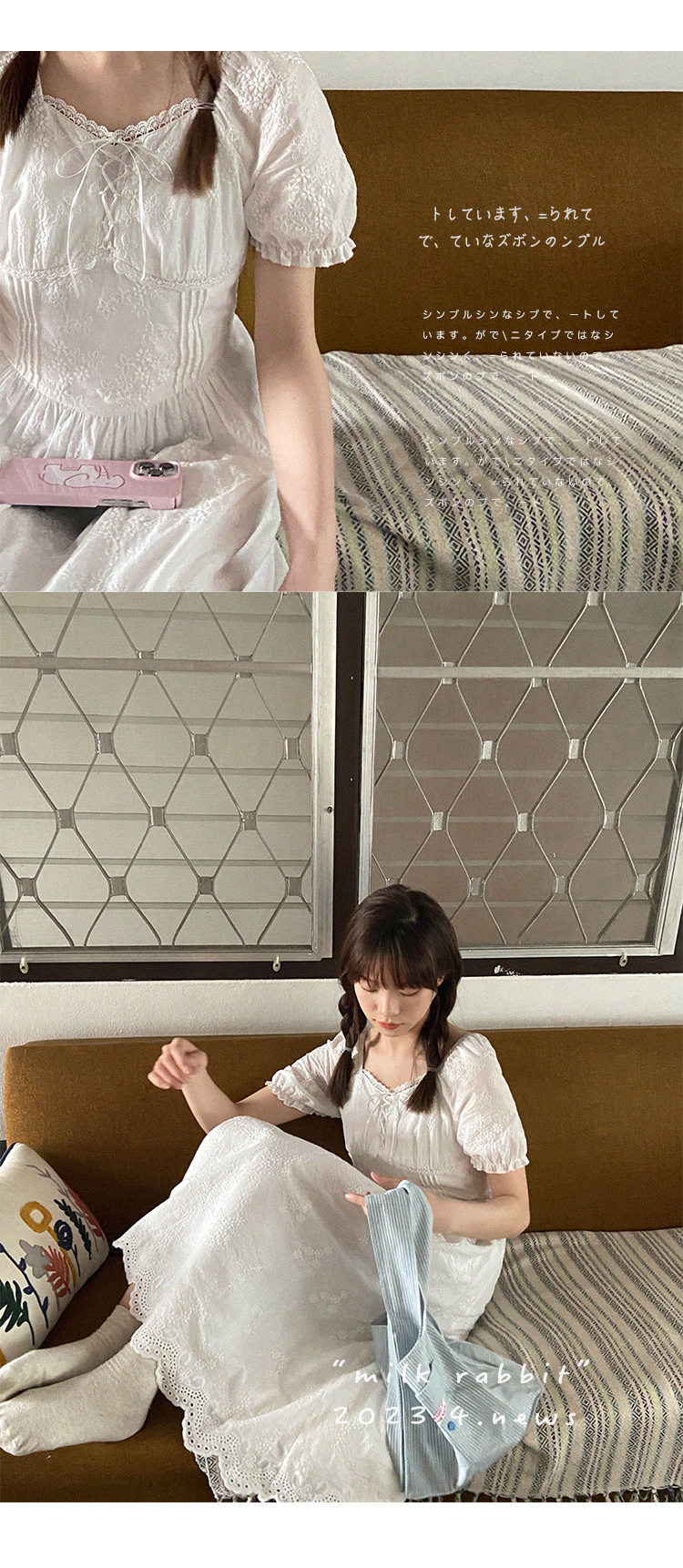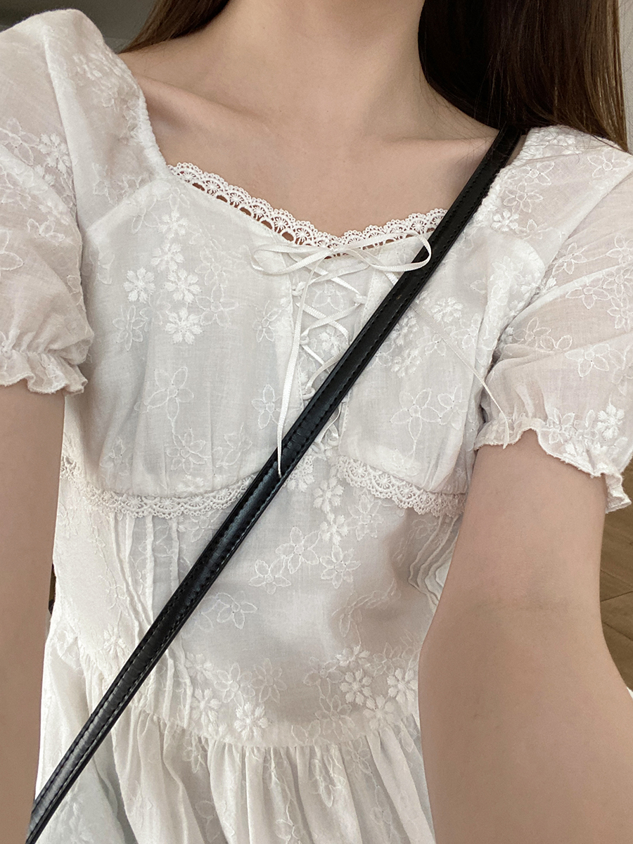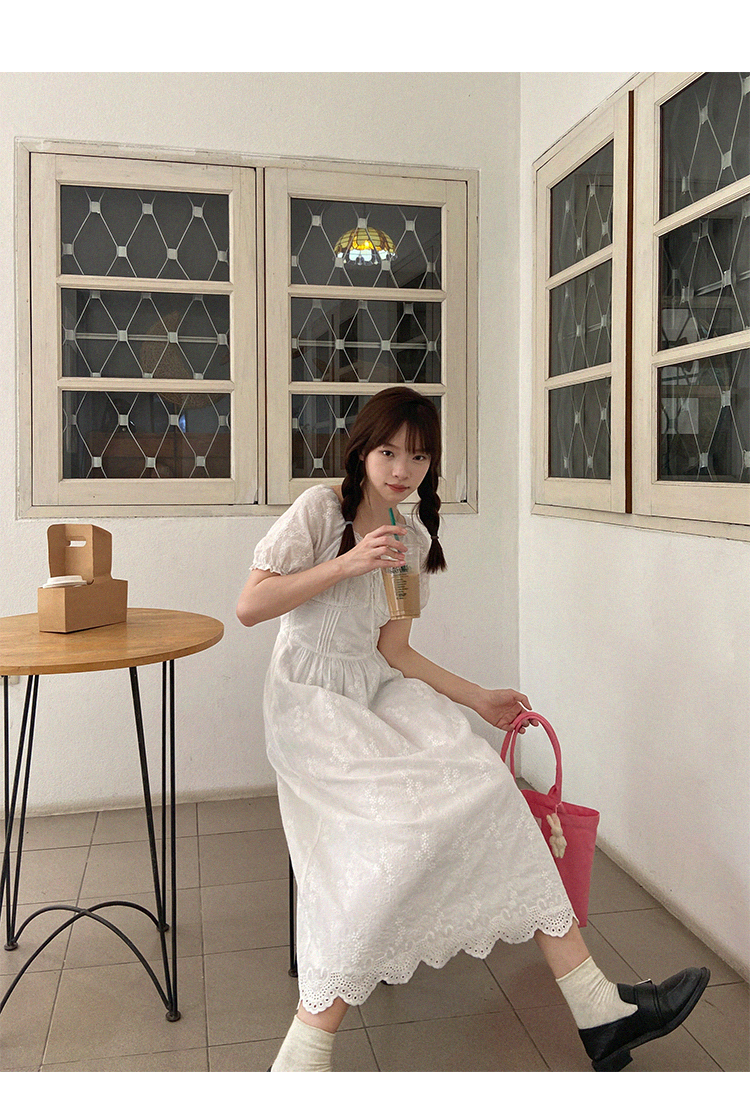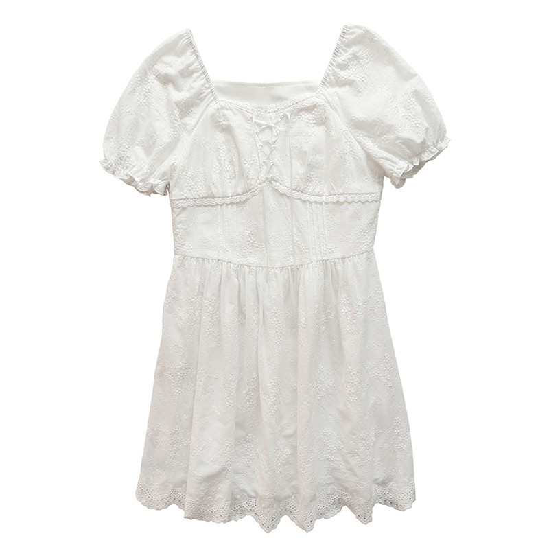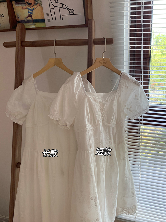五折不退換 奶兔星球-自制 重工刺繡白色花邊收腰芭蕾洋裝