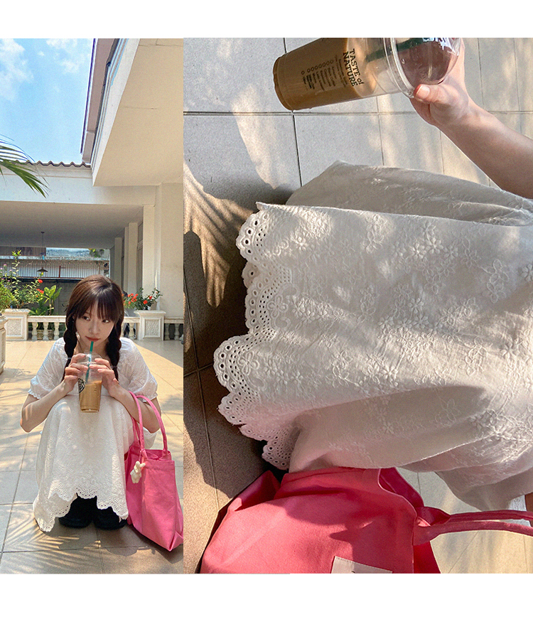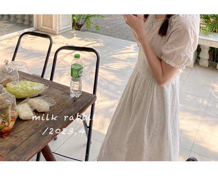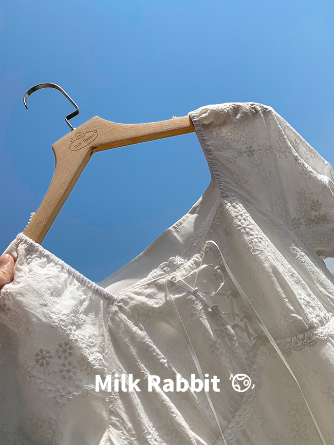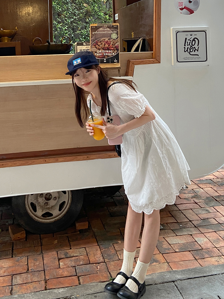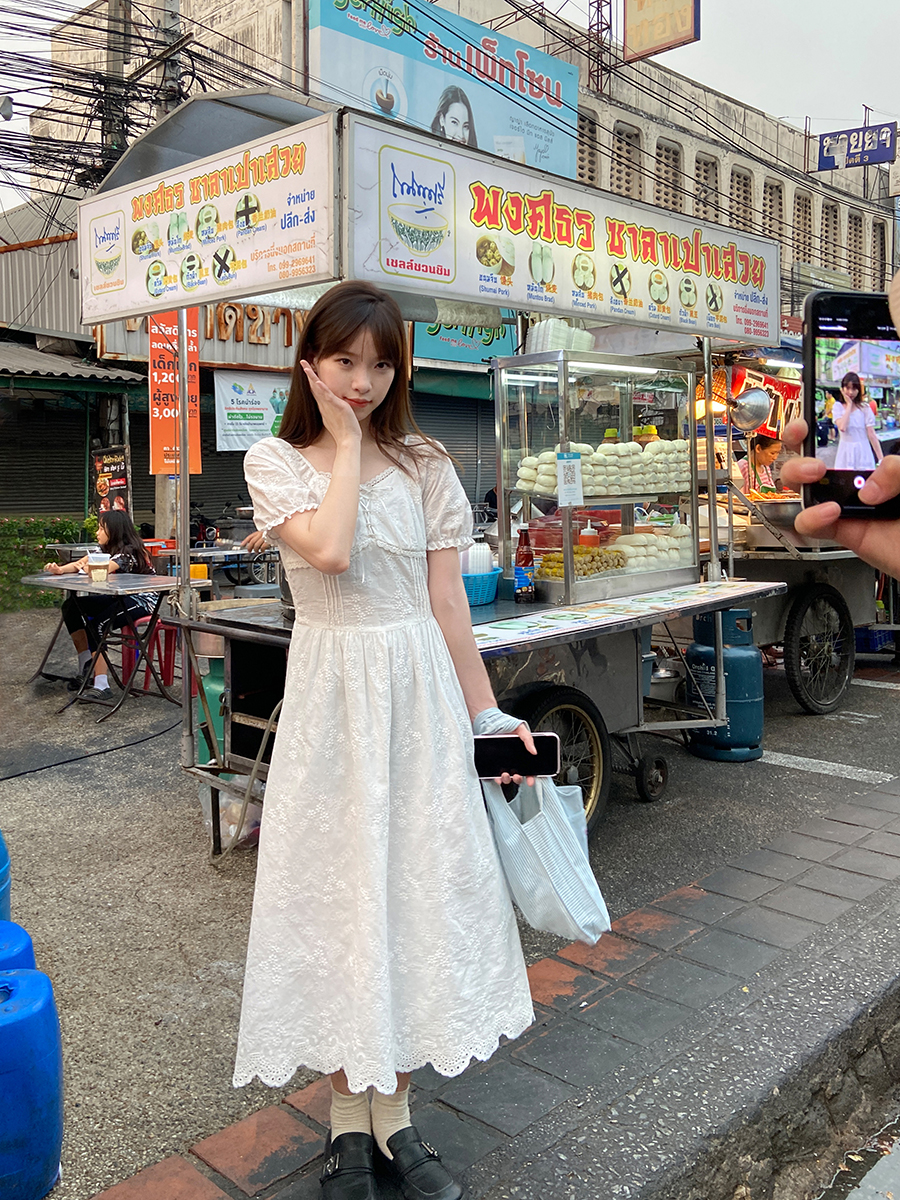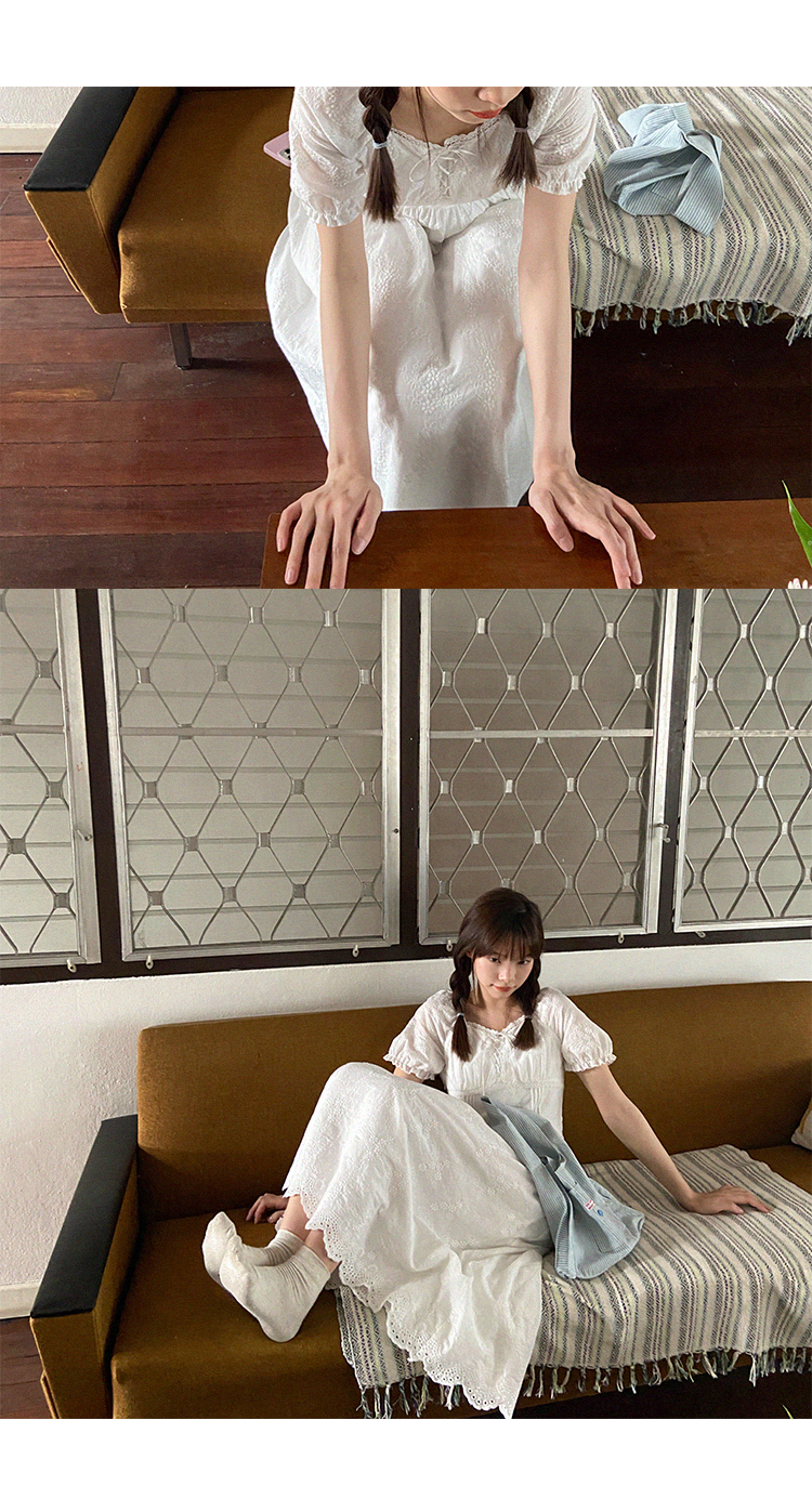 五折不退換 奶兔星球-自制 重工刺繡白色花邊收腰芭蕾洋裝