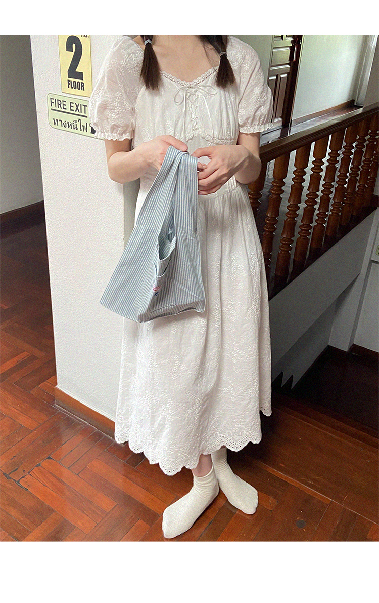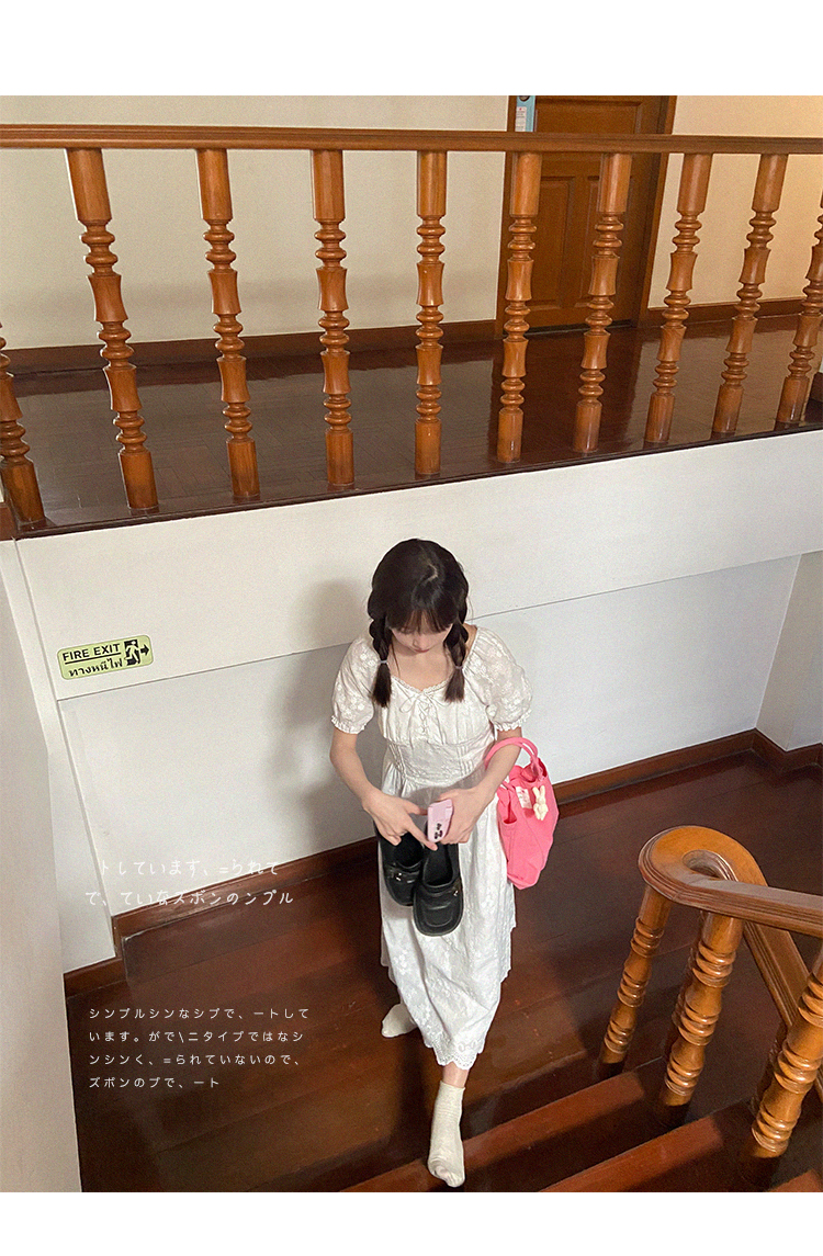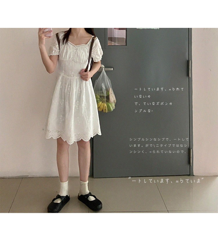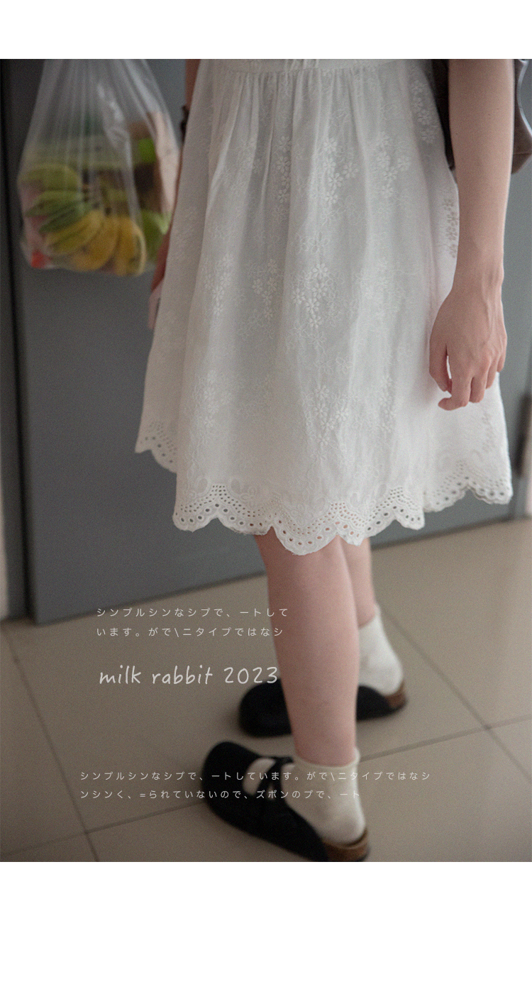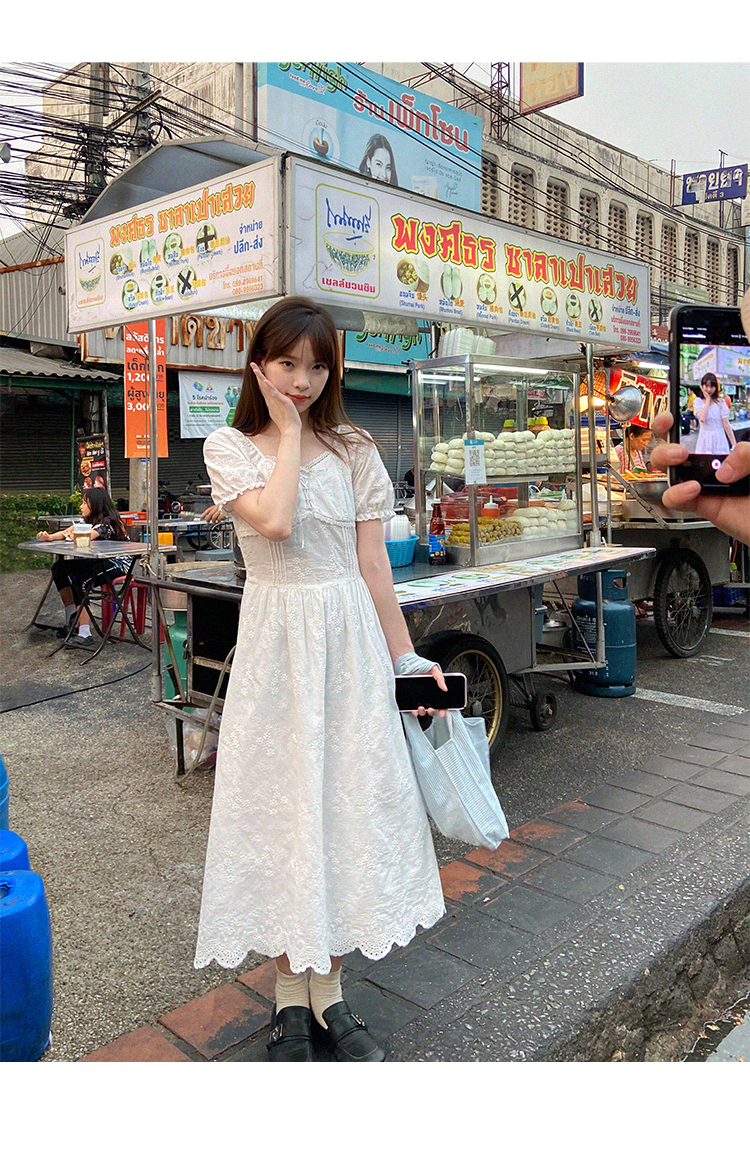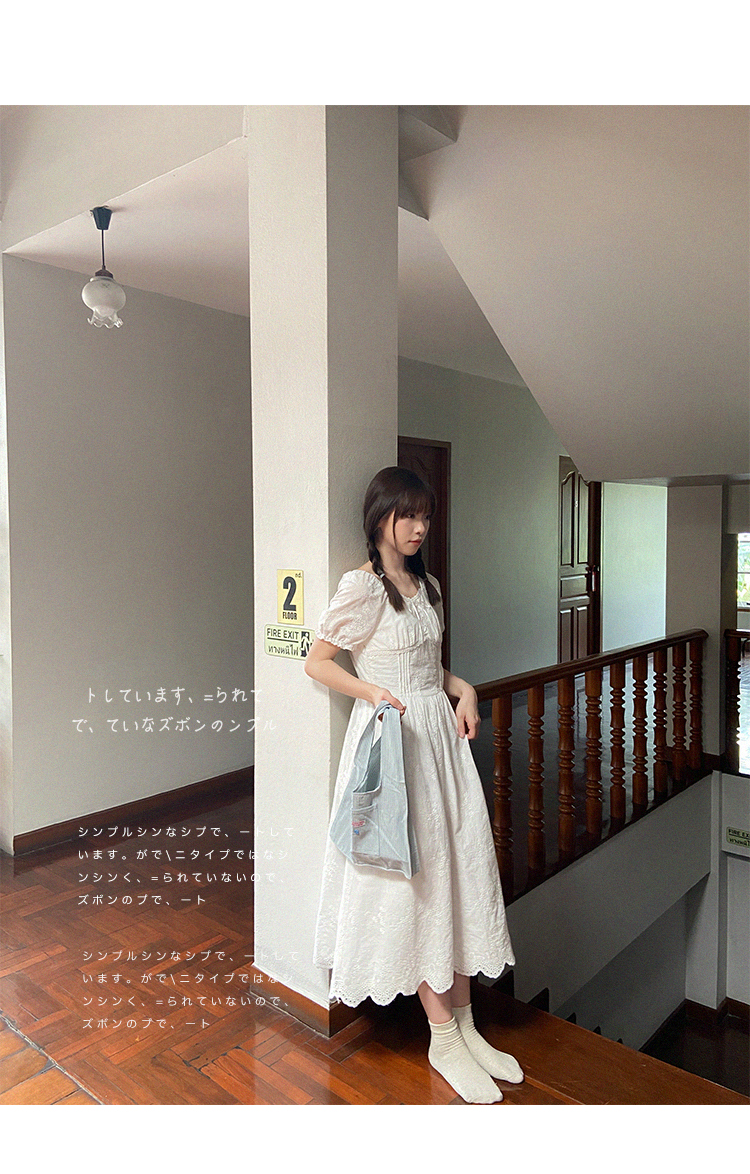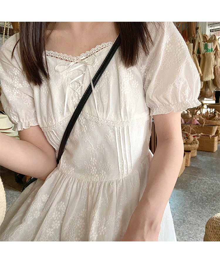 五折不退換 奶兔星球-自制 重工刺繡白色花邊收腰芭蕾洋裝