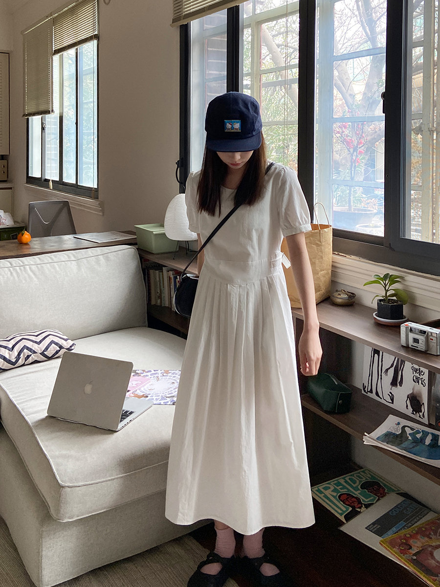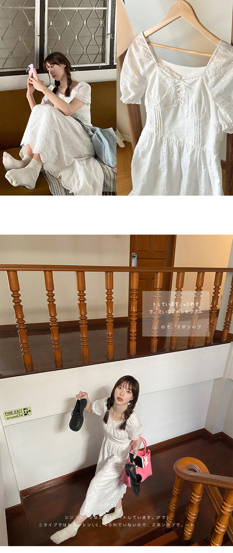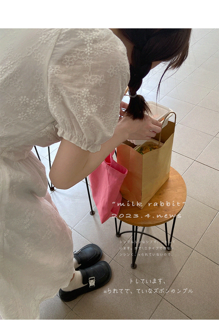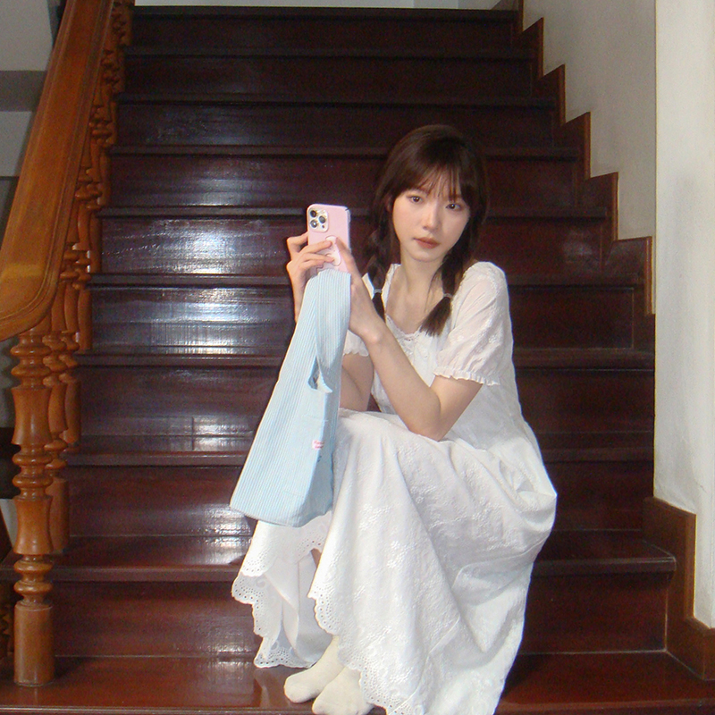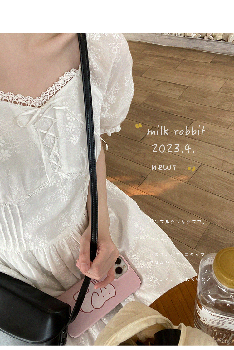 五折不退換 奶兔星球-自制 重工刺繡白色花邊收腰芭蕾洋裝