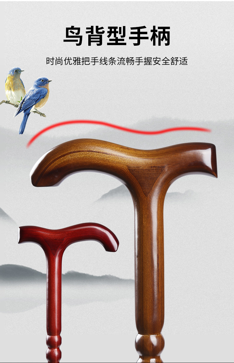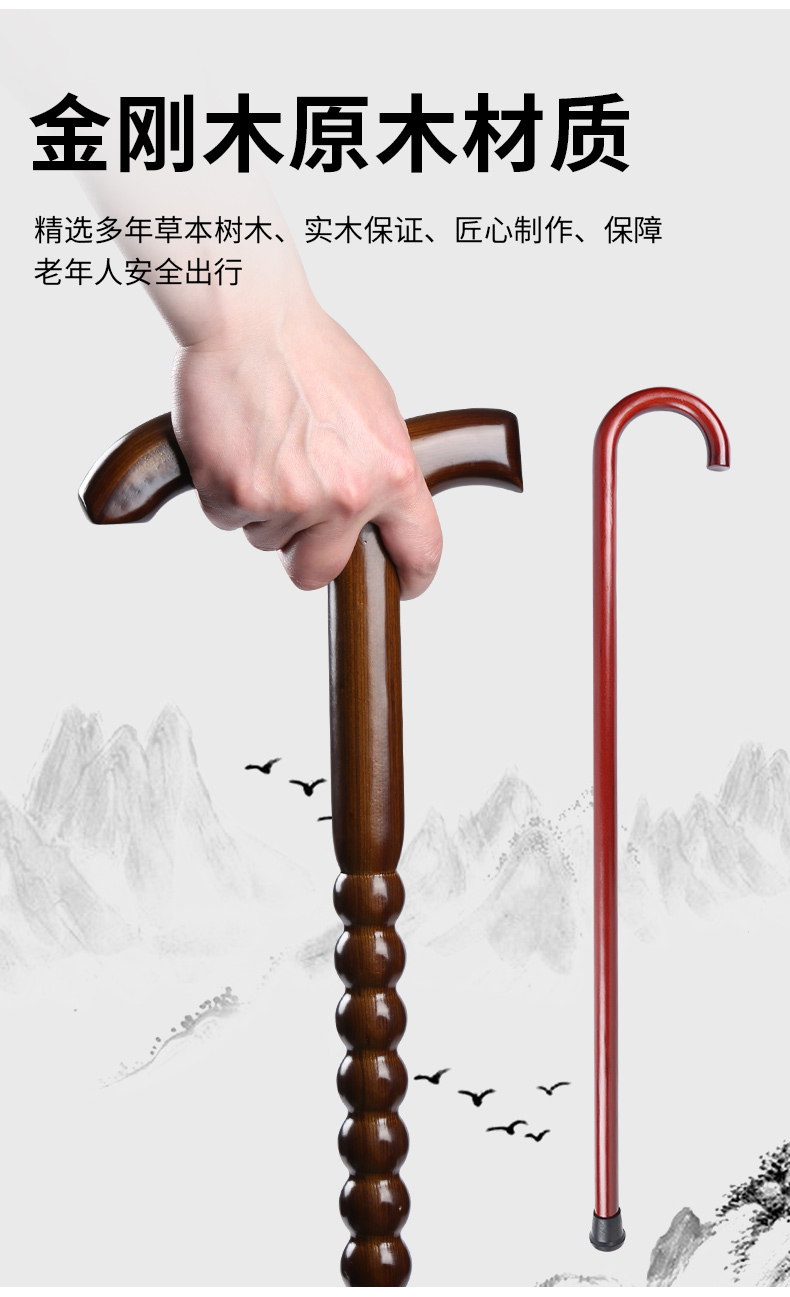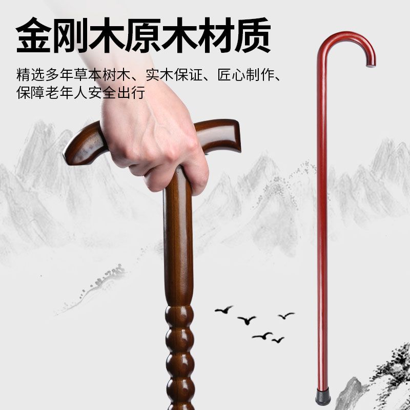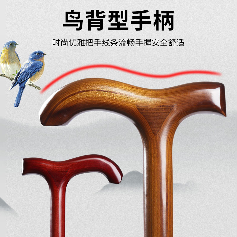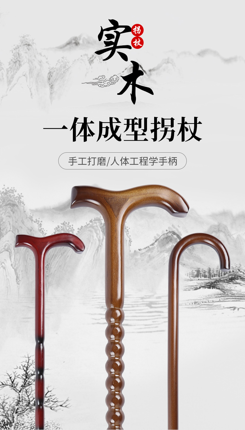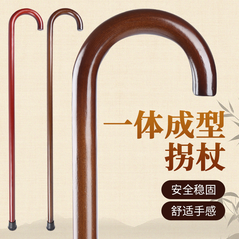 一體成型老人柺杖防滑柺棍老年人杖拐木頭彎大把拐扙手杖實木捌杖