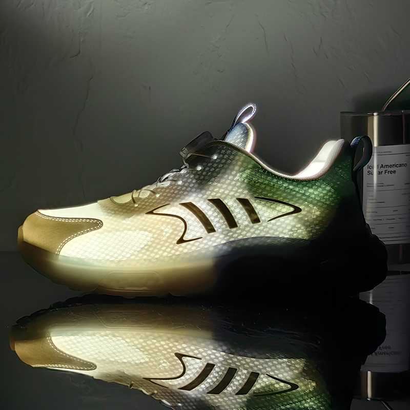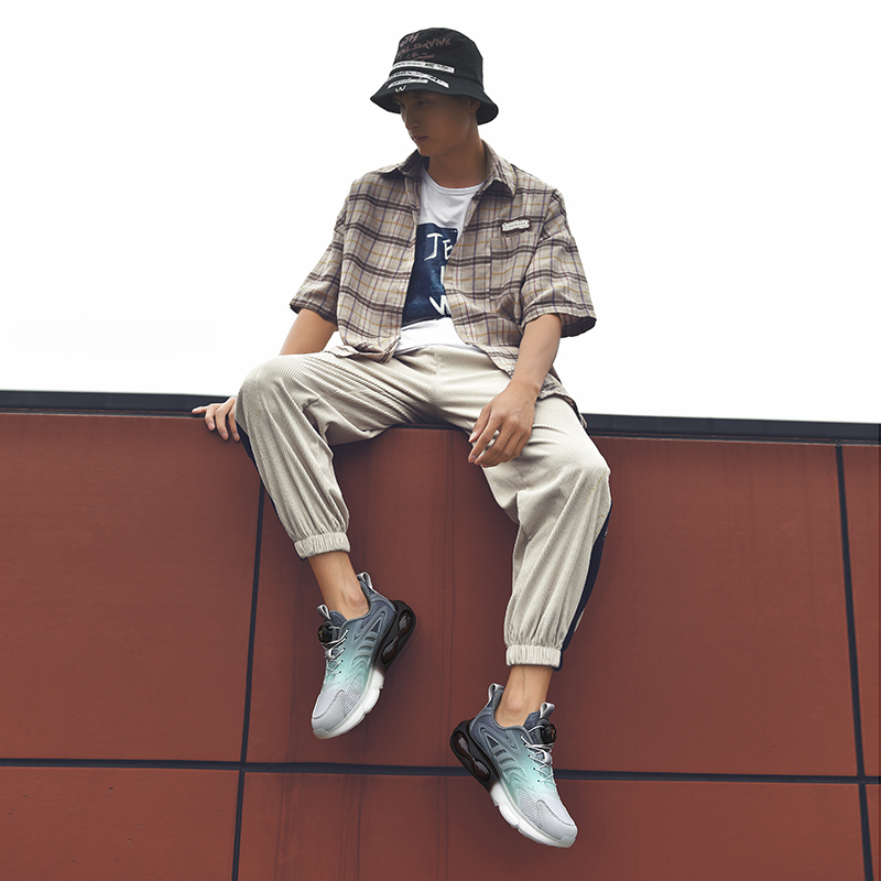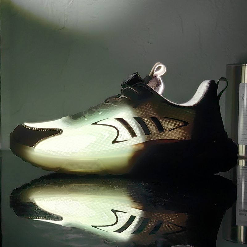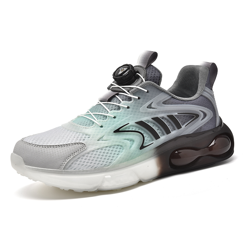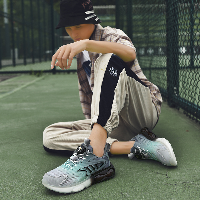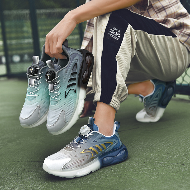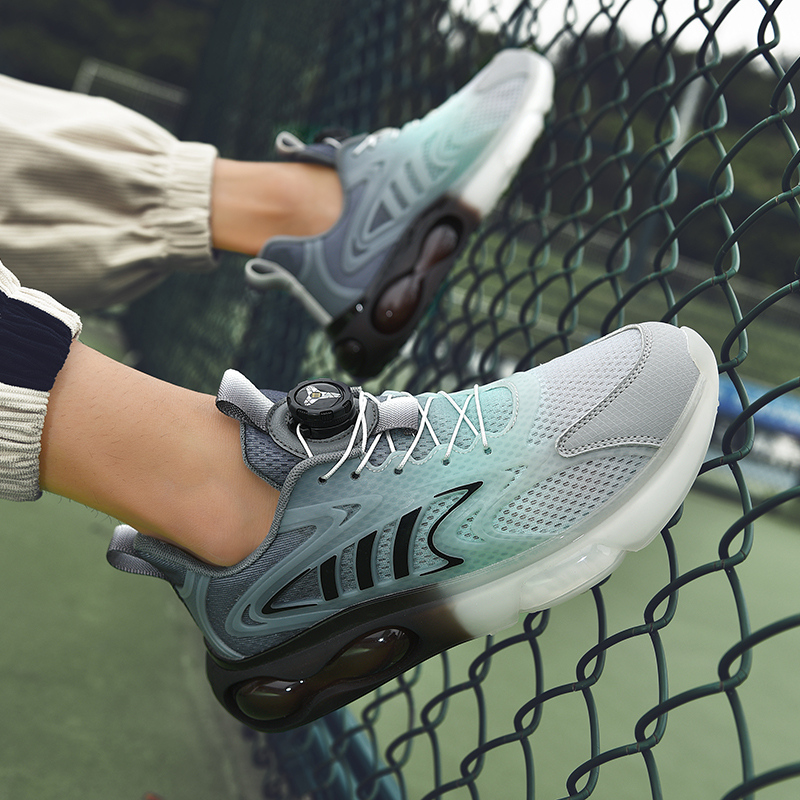 夏季樓空透氣冰絲網面運動鞋男旋轉鈕釦免系鞋帶軟底氣墊跑步鞋子
