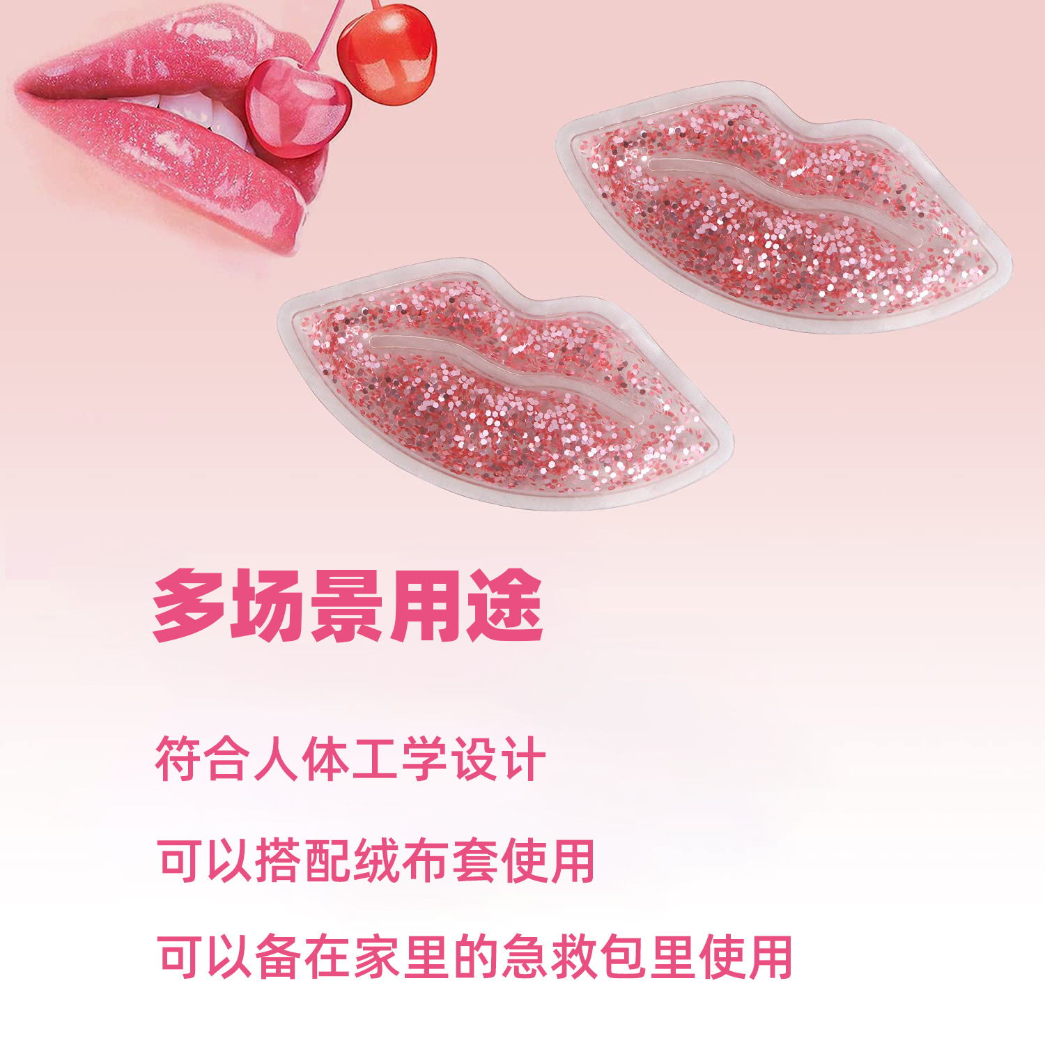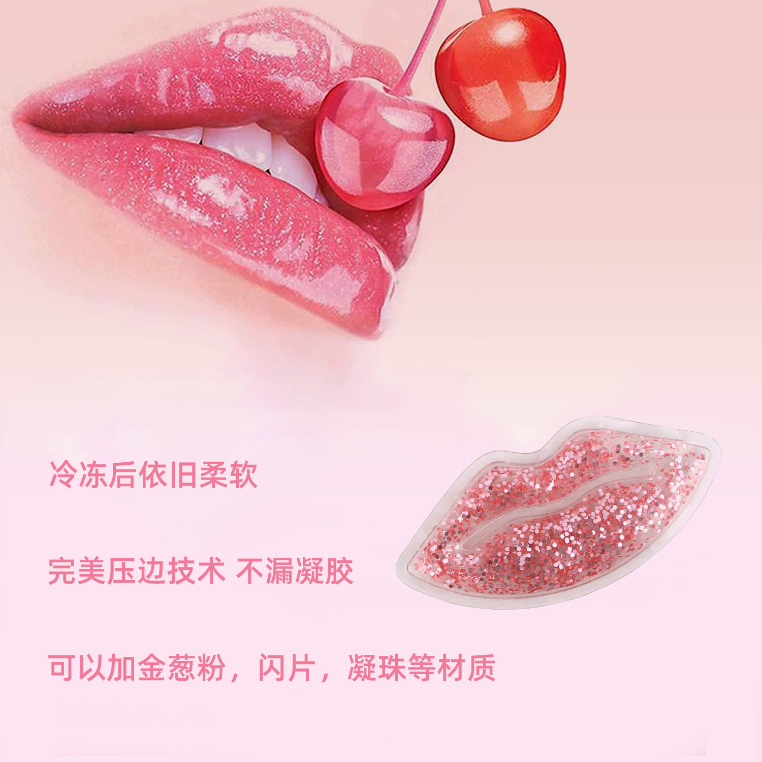 定制嘴唇冰袋 金葱粉冷热敷gel ice pack跨境pvc 外贸冷敷冰袋