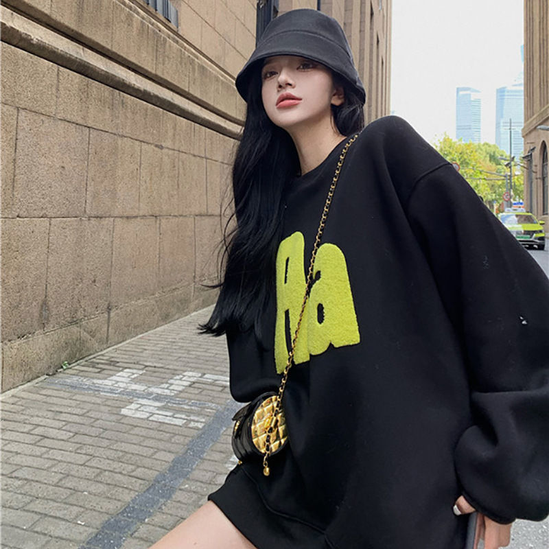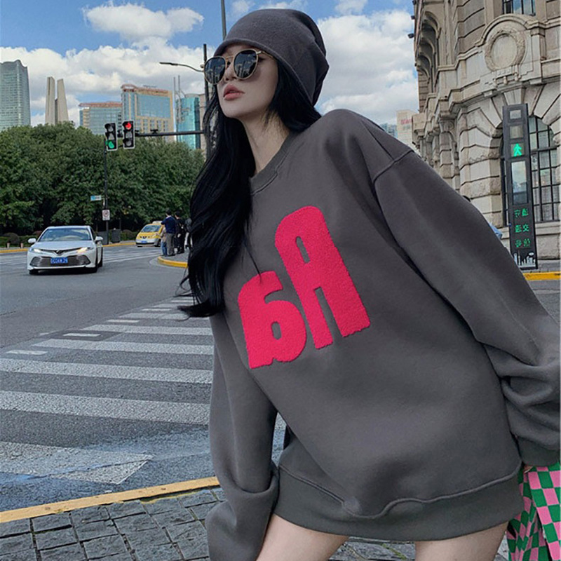 灰色厚棉T女春秋薄款2023新款爆款時尚洋派美式復古中長版圓領外套
