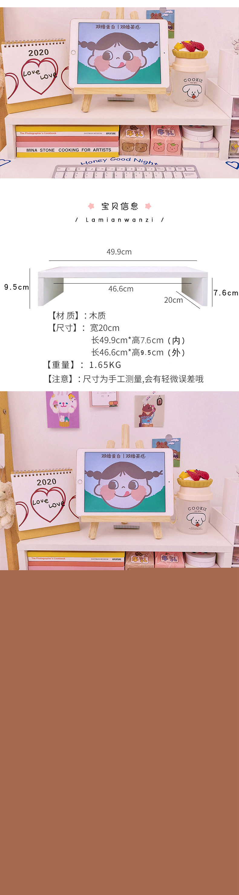 颜色 1#白色木质电脑增高架,2#实木色增高架