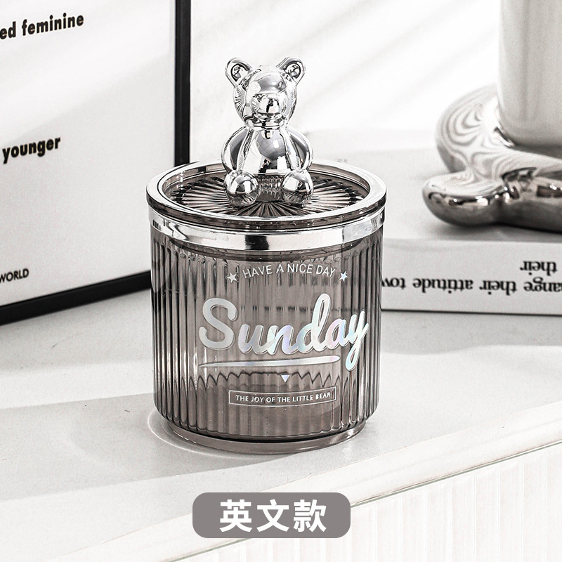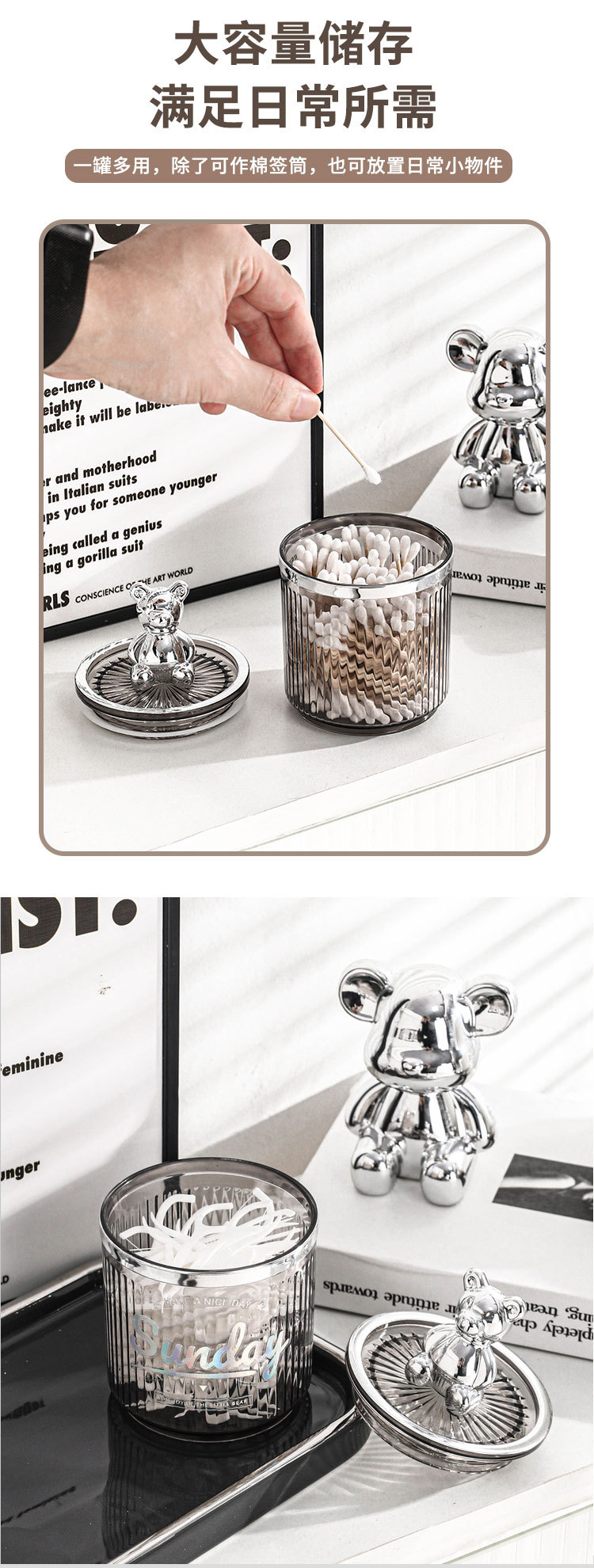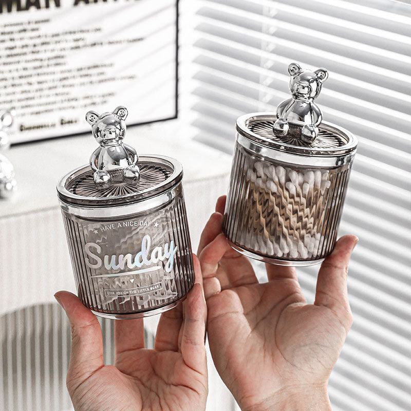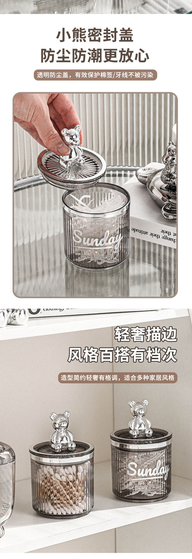 炫彩透明桌面收纳罐创意小熊棉签筒ins风家居用品有盖牙签盒批发