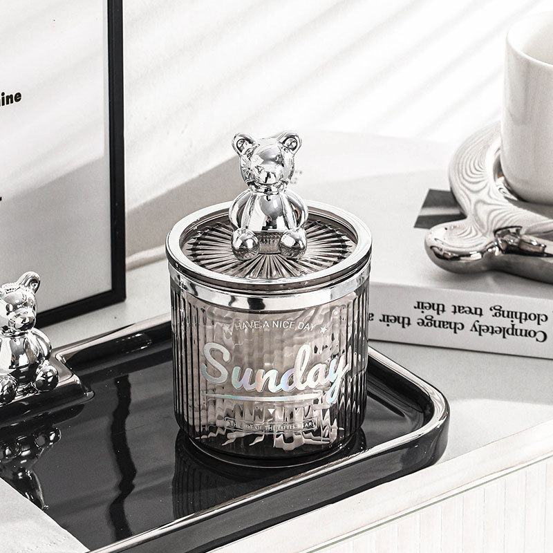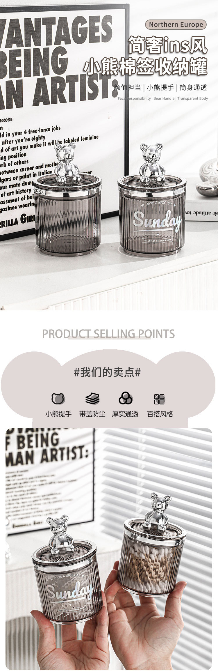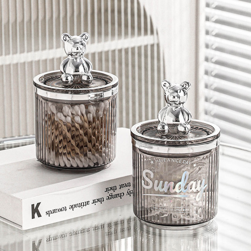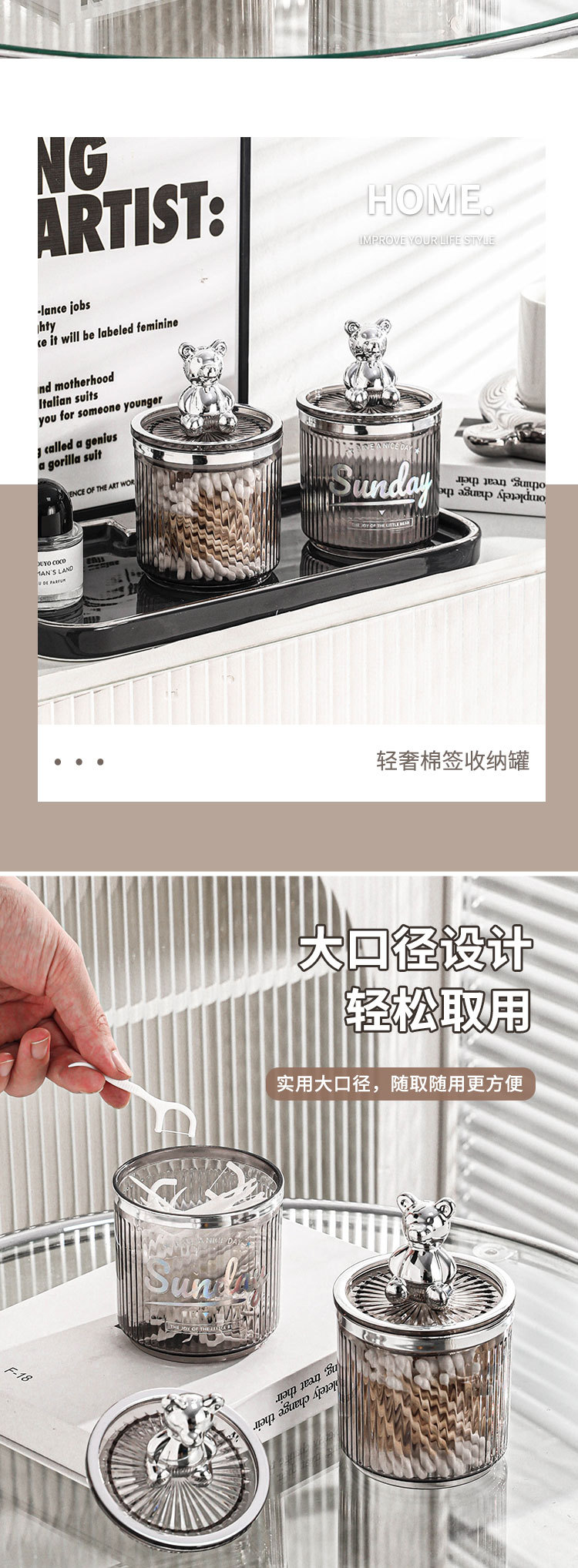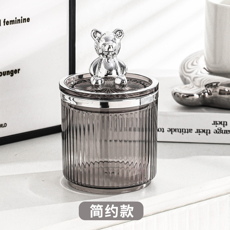 炫彩透明桌面收纳罐创意小熊棉签筒ins风家居用品有盖牙签盒批发